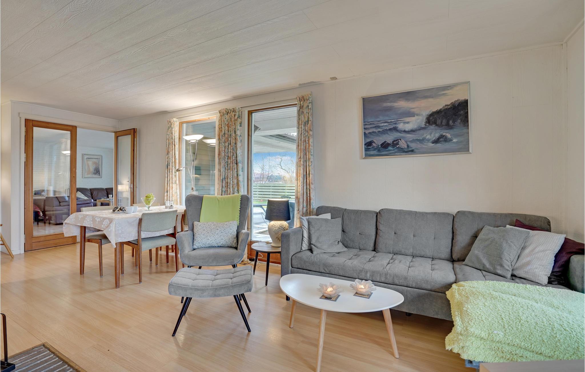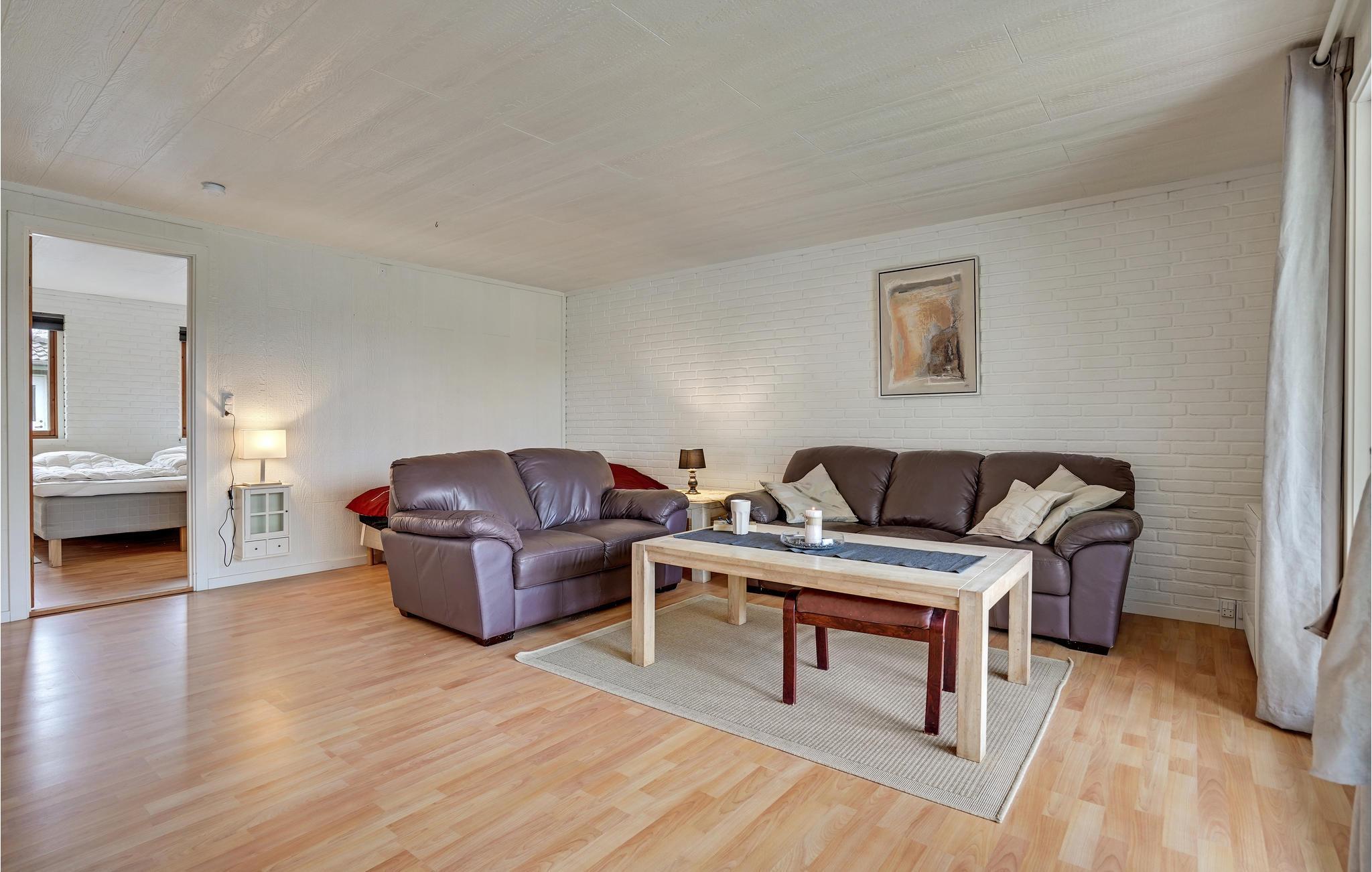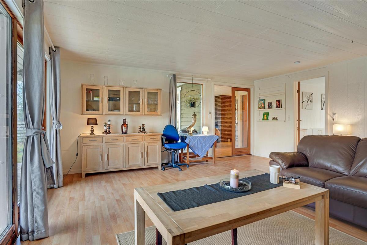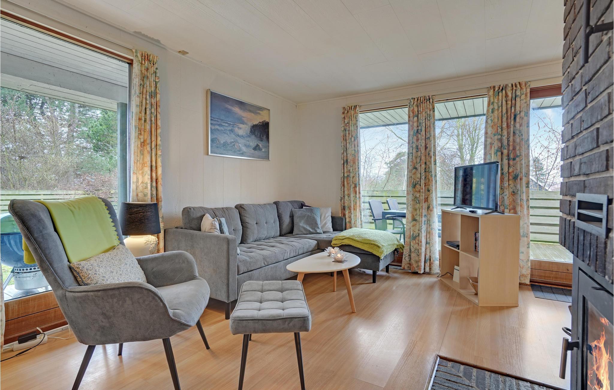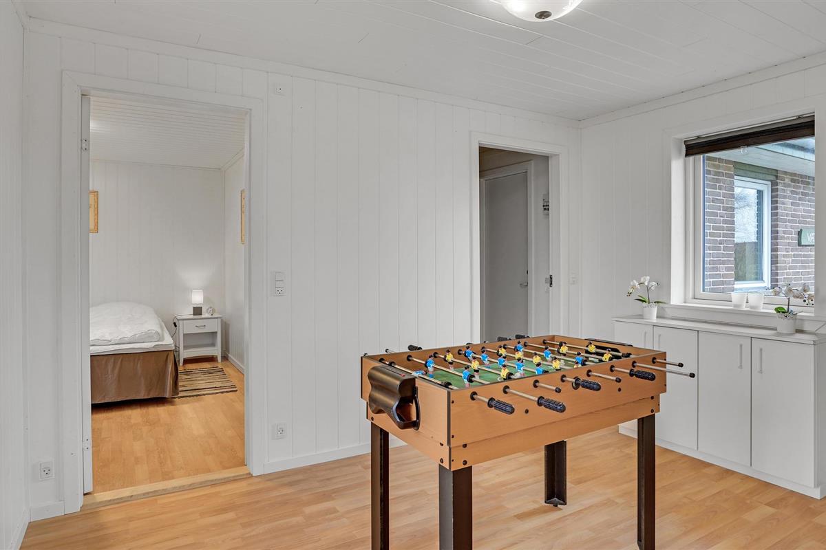 Het aantrekkelijke huis wacht op u op een aantrekkelijke locatie midden in de prachtige natuur en in het zicht van de fjord. Maak het u hier comfortabel met uw geliefden en trakteer uzelf op een welverdiende pauze van de drukte van alledag. Lichte kamers, ramen van vloer tot plafond die u optimaal laten genieten van het prachtige uitzicht en charmante details zoals de stenen open haard maken het vakantiehuis tot een oase voor perfecte vakantieontspanning. Laat uw blik dwalen over de schilderachtige natuur van de omgeving terwijl u samen dineert en breng daarna de bloedsomloop weer op gang met een familieduel.
