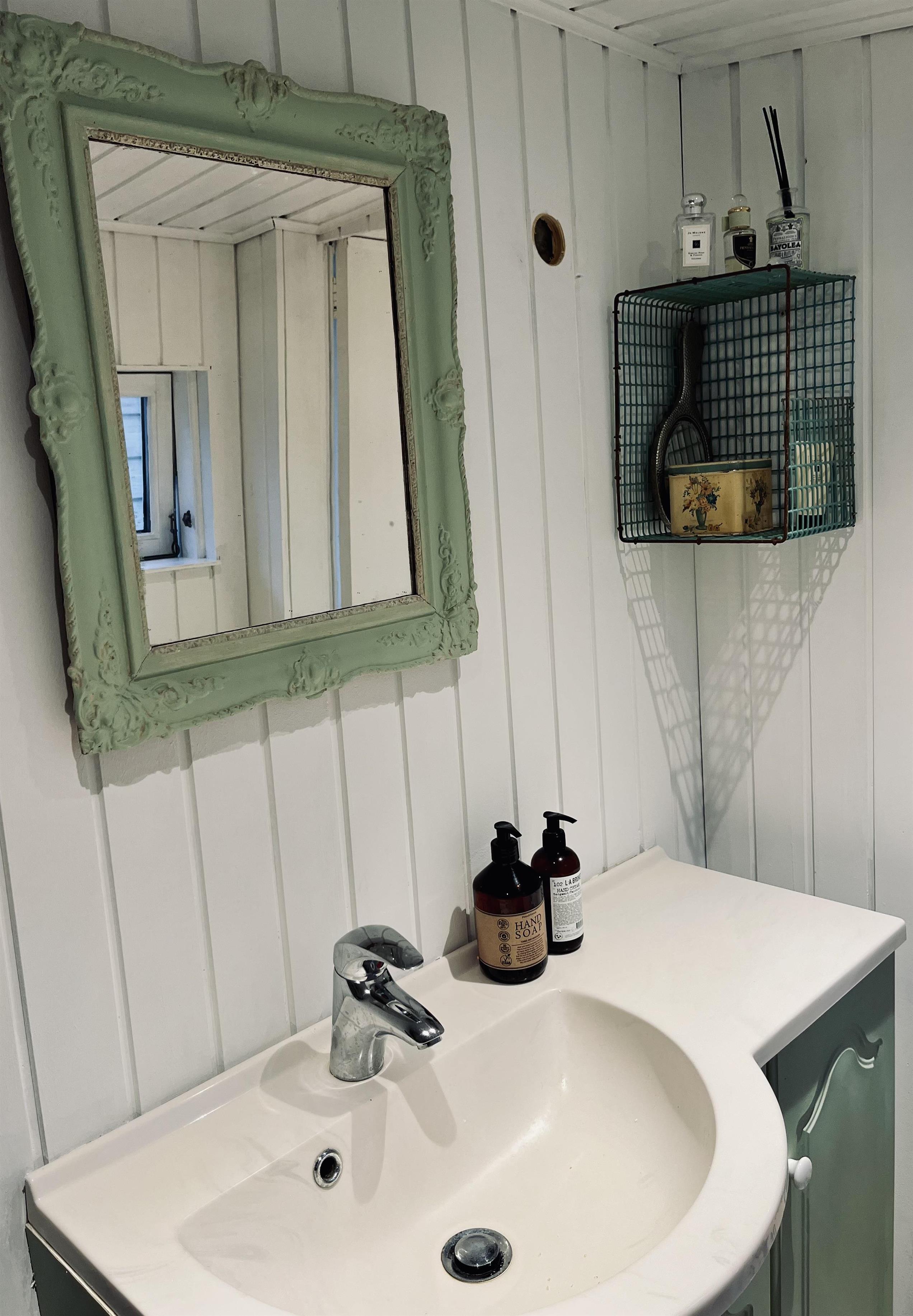 There are two bedrooms with comfortable double beds, and a crib for a small child. The bathroom has a shower.