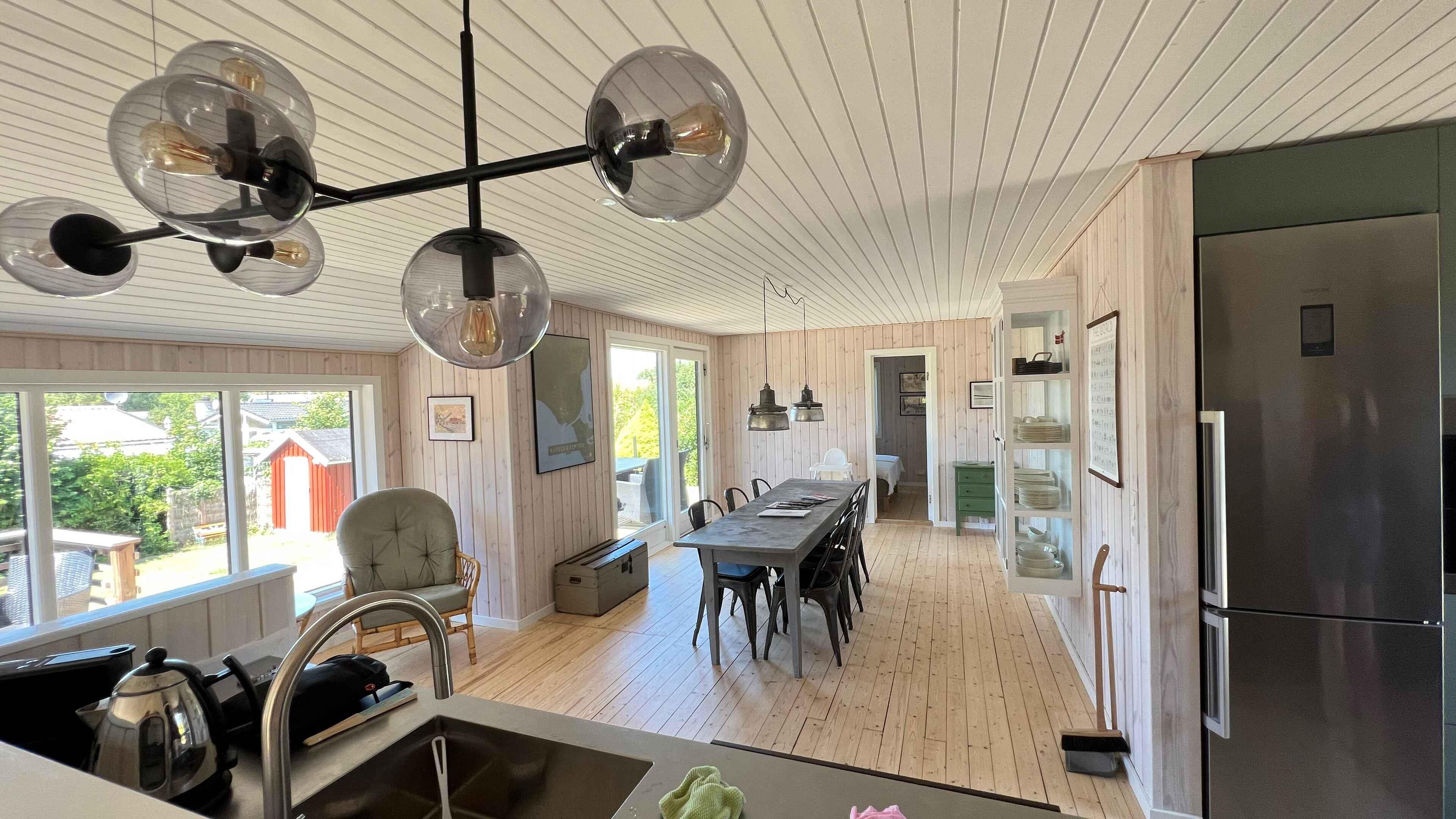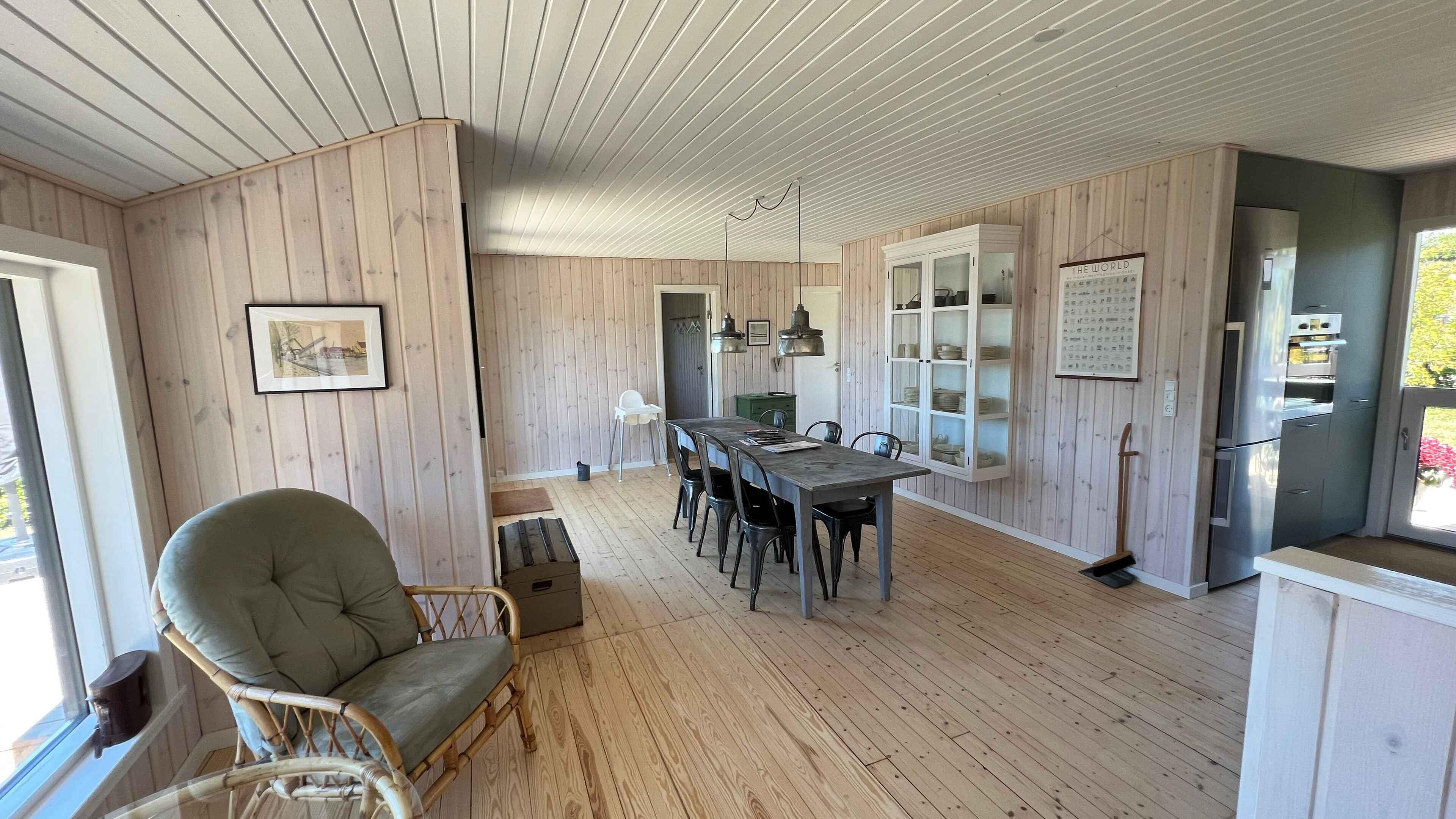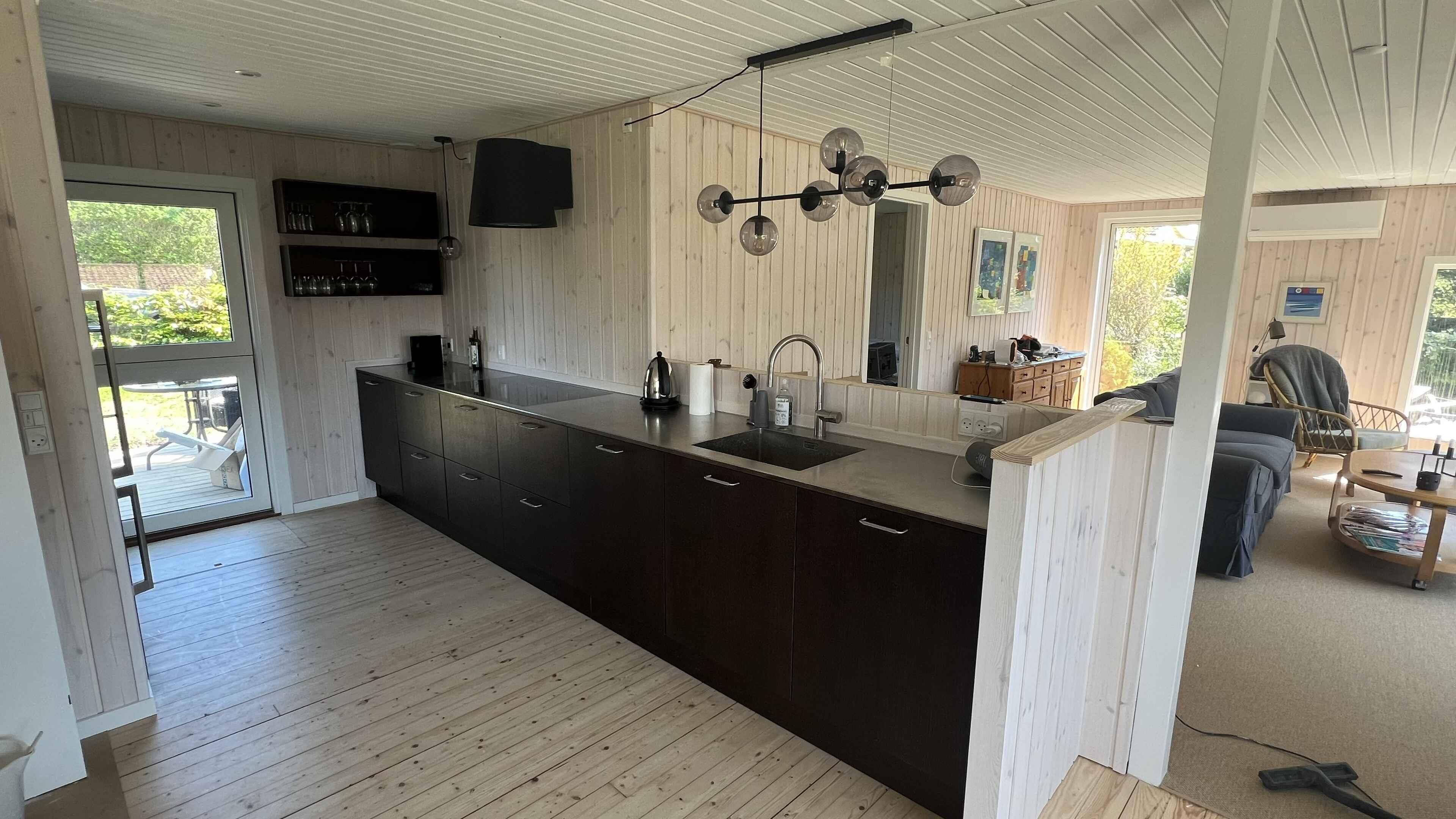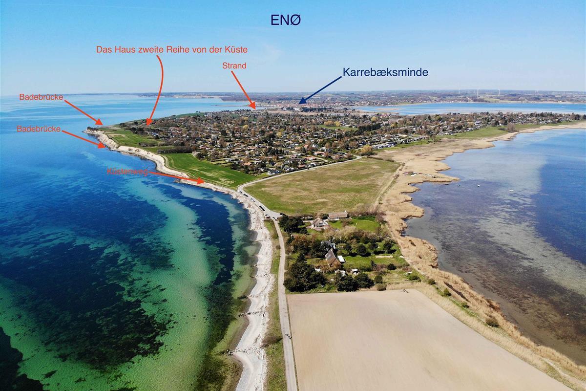 Zomerhuis, met ruimte voor het gezin (tot 6 personen) op het mooie Enø, waar de nadruk ligt op licht en zon op de buitenterrassen - waar u kunt genieten van de avondzon en zonsondergang voordat deze achter het bos verdwijnt, op het nieuw gebouwde terras. De woning bevat o.a. 3 slaapkamers, met een tweepersoonsbed of een tweepersoonsbed en een mooie woonkeuken met veel licht. De ruime keuken biedt ruimte om met het hele gezin te koken en is voorzien van een koelkast/vriezer, vaatwasser, inductiekookplaat, magnetron en conventionele oven. De verwarmingsbron is een warmtepomp en een houtkachel. In de woonkamer staat een bank, fauteuils en salontafel - daarnaast een Smart TV - draadloos internet Wifi. Hier is zeker ruimte om te ontspannen met een goed boek, een gezellig familiespel en lekker koken. Verder is er een goede badkamer met nieuw sanitair, verwarmd handdoekenrek, douche en douchegordijn. In aansluiting op de grote slaapkamer bevindt zich in het verlengde een bijkeuken, waar zich een toilet, wastafel en een wasmachine/droger bevinden. Buiten is er toegang tot een ontbijtterras en een avondterras, evenals andere leesplekken rondom het huis. Op het ontbijtterras is er een buitendouche met koud en warm water. Het huis ligt op de tweede rij van Enø Klint - waar er in beide richtingen 350 meter zijn naar zwembruggen waar u kunt zwemmen. Er is een speelhuisje voor de kleinsten en meerdere verblijfsplekken om te zonnen en te ontspannen. Er is ook de mogelijkheid om te grillen op een houtskoolgrill! Op de gevel van de woning bij de parkeerplaats aan de weg bevindt zich een CE-stekker voor het opladen van elektrische auto's indien er een "grootmoederlader" met naar keuze een 3-polige of 5-polige CE-stekker is aangesloten! Nog geen oplaadbox dus! Er is een brug tussen Karrebæksminde en Enø - de brug heet Græshoppebroen. Een routeboot "Friheden" tussen Næstved en Enø - is een prachtige tocht om door het Suså-kanaal te maken. Er is een heerlijk strand en diverse eetgelegenheden en jachthavens, waar het hele seizoen veel leven en activiteit is. GROEPEN, BEDRIJVEN, AMBACHTSMENSEN EN JEUGDGROEPEN ZIJN NIET TOEGESTAAN Let op: Niet te huur voor commercieel gebruik.