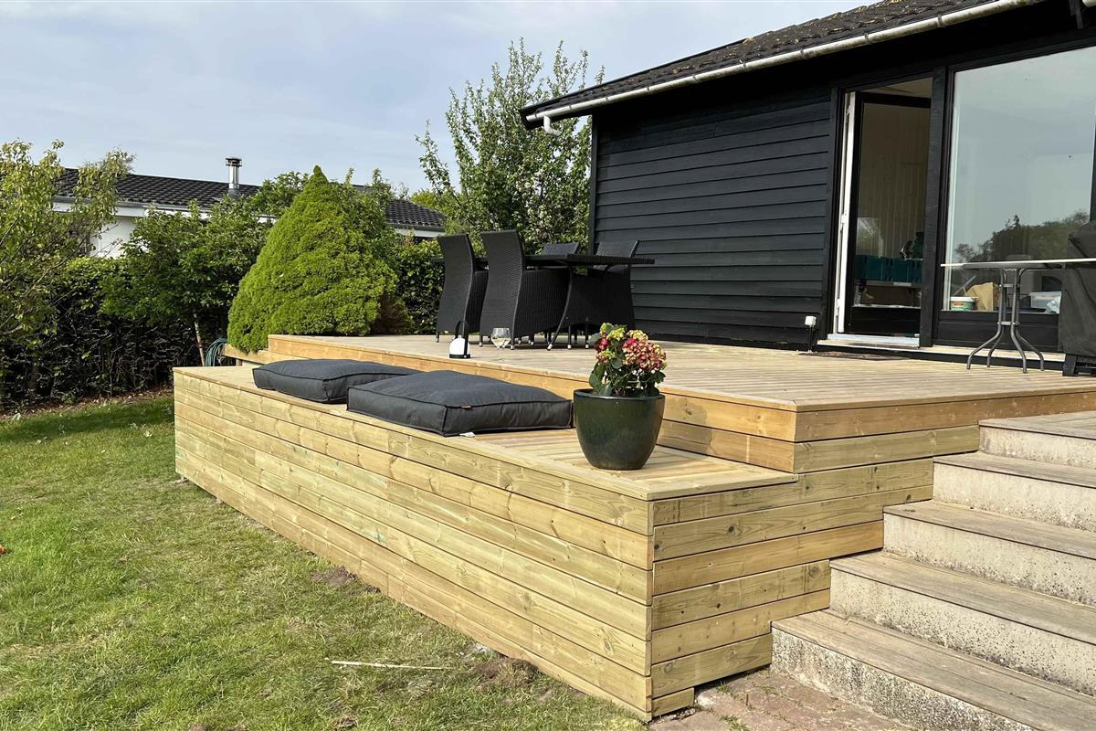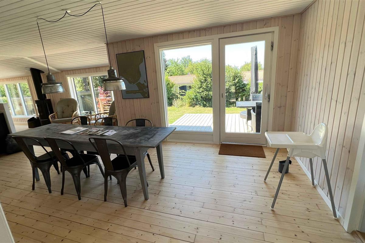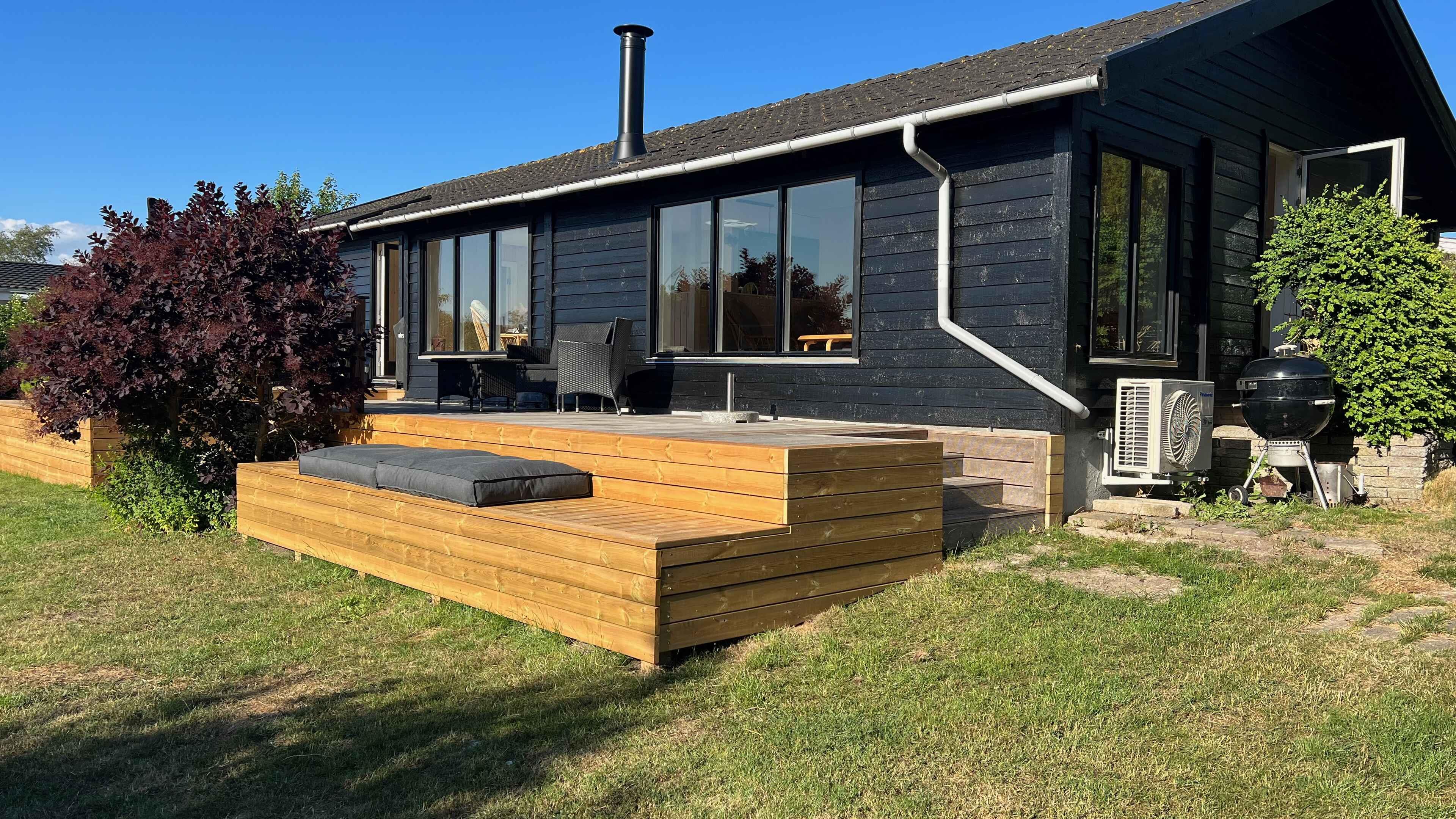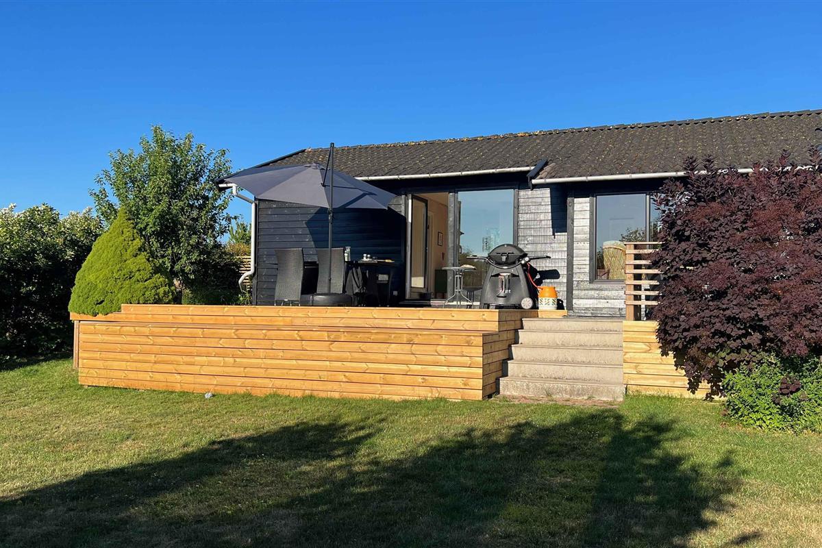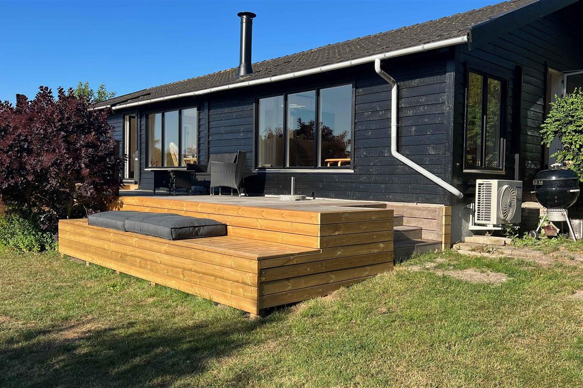 Gezellig zomerhuis op Enø met licht, zonneterrassen en vlakbij zwemsteigers voor een ontspannen vakantie.