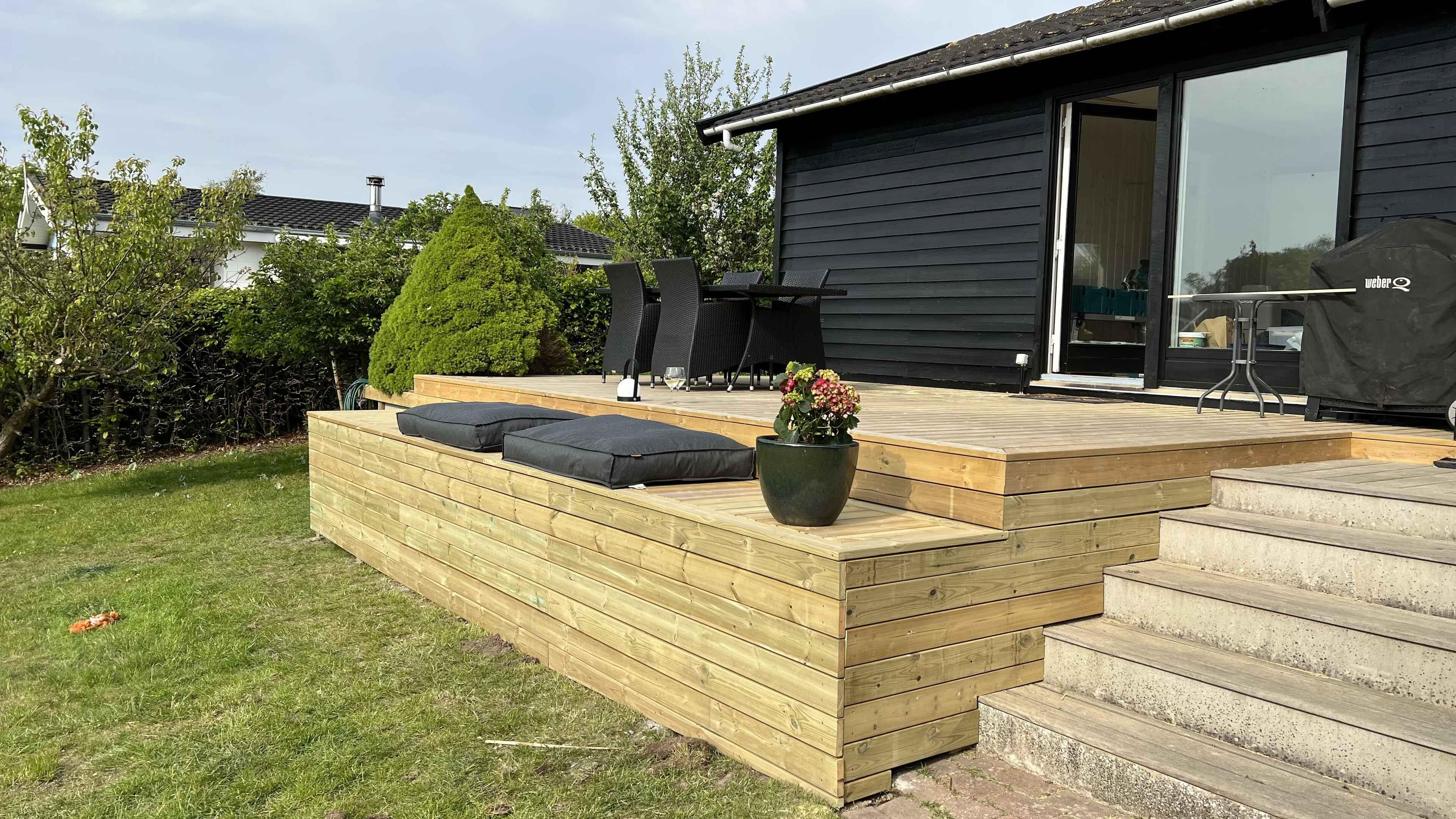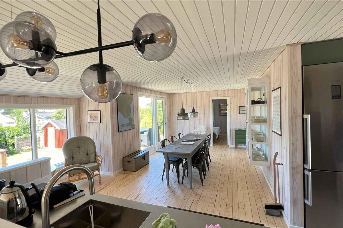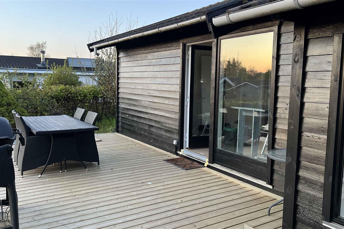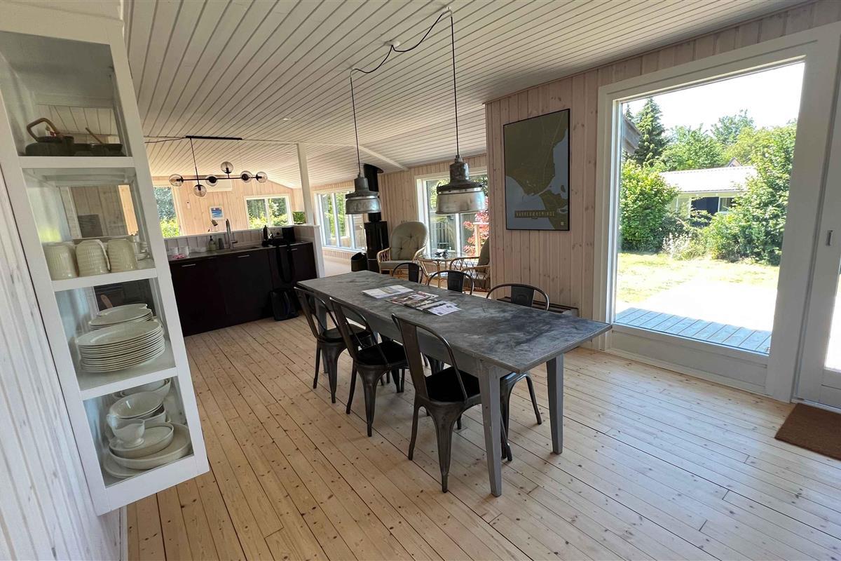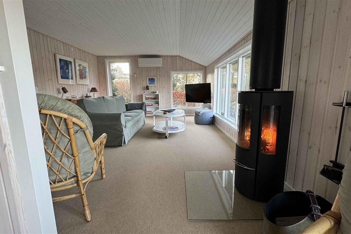 Gezellig zomerhuis op Enø met licht, zonneterrassen en vlakbij zwemsteigers voor een ontspannen vakantie.