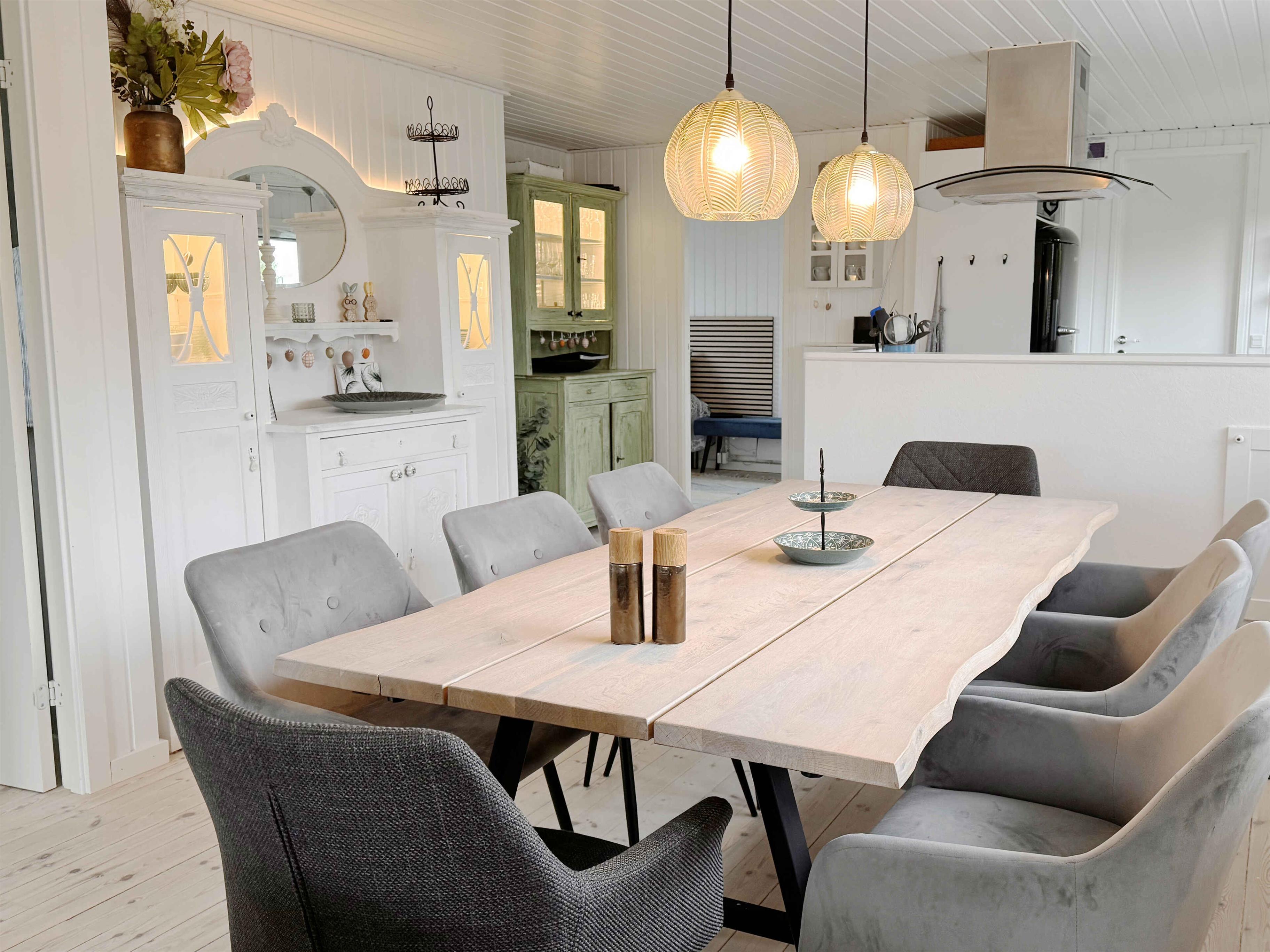 Dit charmante zomerhuis is ingericht in een lichte en vriendelijke badhotelstijl en bevindt zich in een rustige omgeving met weinig buren en directe toegang tot grote groene gebieden. Het huis biedt plaats aan 8 personen met vier slaapplaatsen: een tweepersoonsbed van 180x200 cm en drie tweepersoonsbedden van 160x200 cm verdeeld over drie kamers in het hoofdgebouw en een kamer in het bijgebouw, dat ook een eigen toilet heeft. Het zomerhuis is uitgerust met een praktische waskolom met warmtepompdroger en een badkamer met toilet en douche. In het bijgebouw is een extra apart toilet. De moderne keuken-eetkamer heeft alle nodige faciliteiten, waaronder een inductiekookplaat, oven, afzuigkap, koel-vriescombinatie, magnetron en vaatwasser. De woonkamer is voorzien van een televisie, een open haard en een warmtepomp, terwijl de andere kamers nieuwe elektrische radiatoren hebben. Voor gezinnen met jonge kinderen zijn er zowel een kinderbedje als een kinderstoel beschikbaar. Daarnaast zijn er een strijkijzer en strijkplank aanwezig, waardoor het gemakkelijk is om de kleding netjes te houden tijdens het verblijf. Het zomerhuis heeft twee mooie terrassen met plaats voor 8-10 personen en een kas, die in de zomer wordt ingericht als een gezellige oranjerie. Er is ook een extra grote koel-vriescombinatie in het tuinhuisje. Voor degenen die moeten werken, is er een werkplek ingericht met een groot extern scherm en glasvezel, wat zorgt voor een snelle internetverbinding. Het zomerhuis is ook handig met een oplaadpunt voor de auto op de oprit, die plaats biedt aan maximaal 3 auto's binnen het hek. Het hele terrein is omheind en het is toegestaan om maximaal twee honden mee te nemen. Let op: er mag niet binnen worden gerookt en schoonmaak is verplicht. Het zomerhuis wordt niet verhuurd aan groepen jongeren onder de 25 jaar. Let op: Niet te huur voor commercieel gebruik.