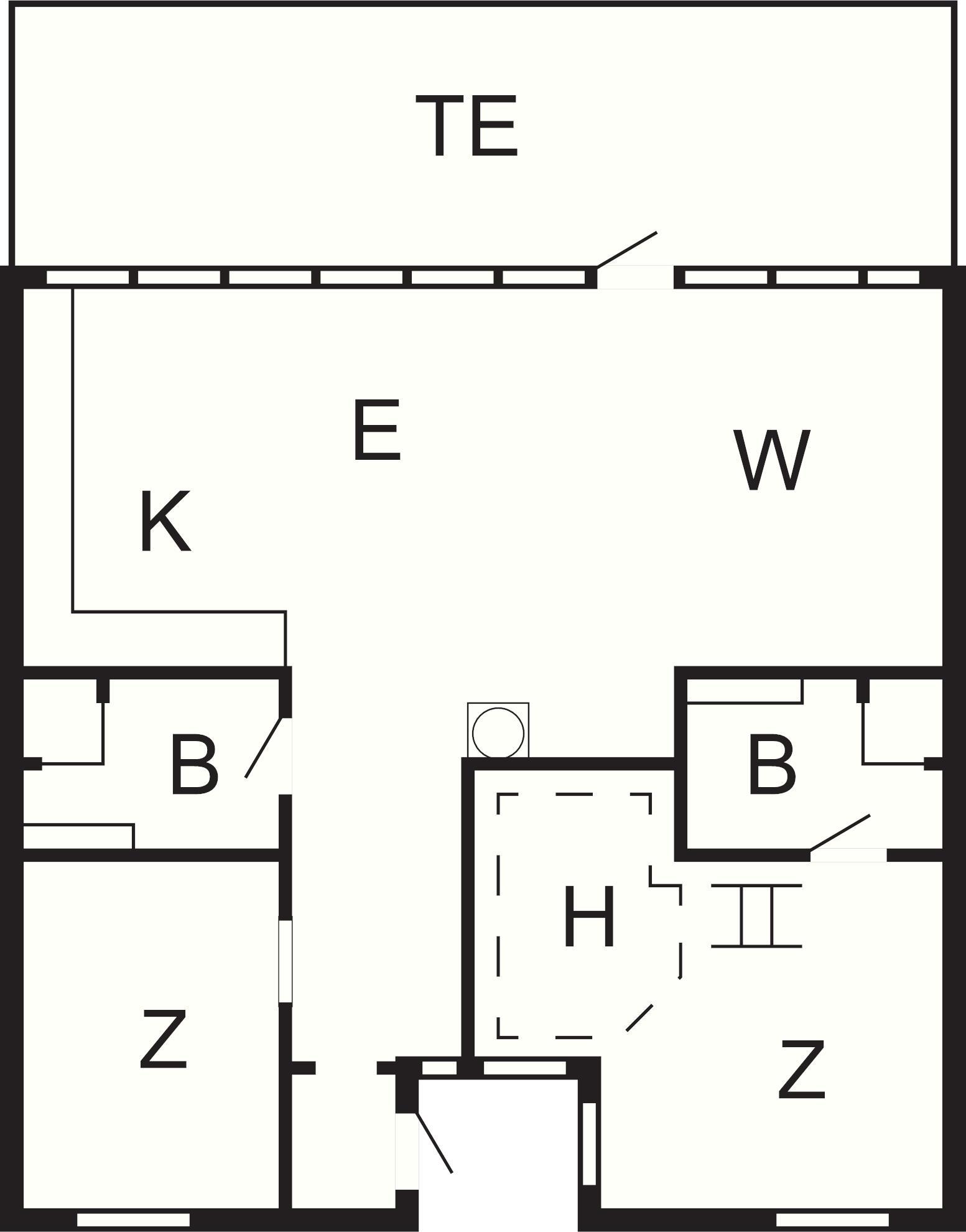 - Haustyp A (Typ 1 - 3): 65 m² mit Platz für 5 Personen (Rauchverbot in