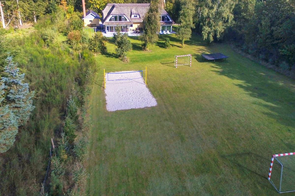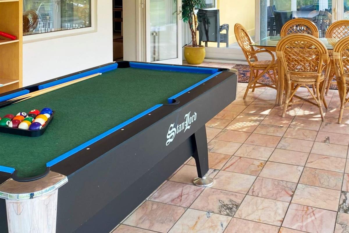 Im Außenbereich findet man einen Grill und Gartenmöbel sowie Schaukel, Sandkasten und Kletterturm für die Kinder, dazu gibt es einen schönen Volleyballplatz für Groß und Klein. Im Wintergarten des Hauses gibt es Billard und Tischtennis.