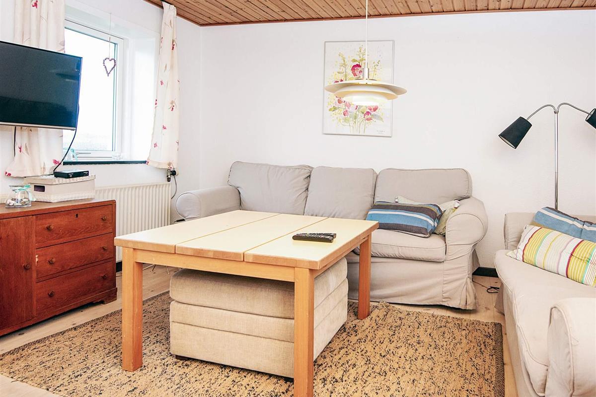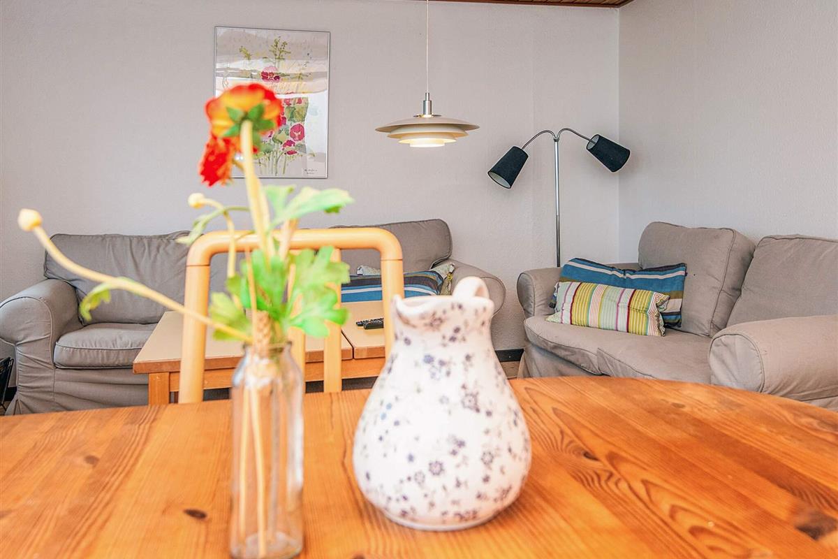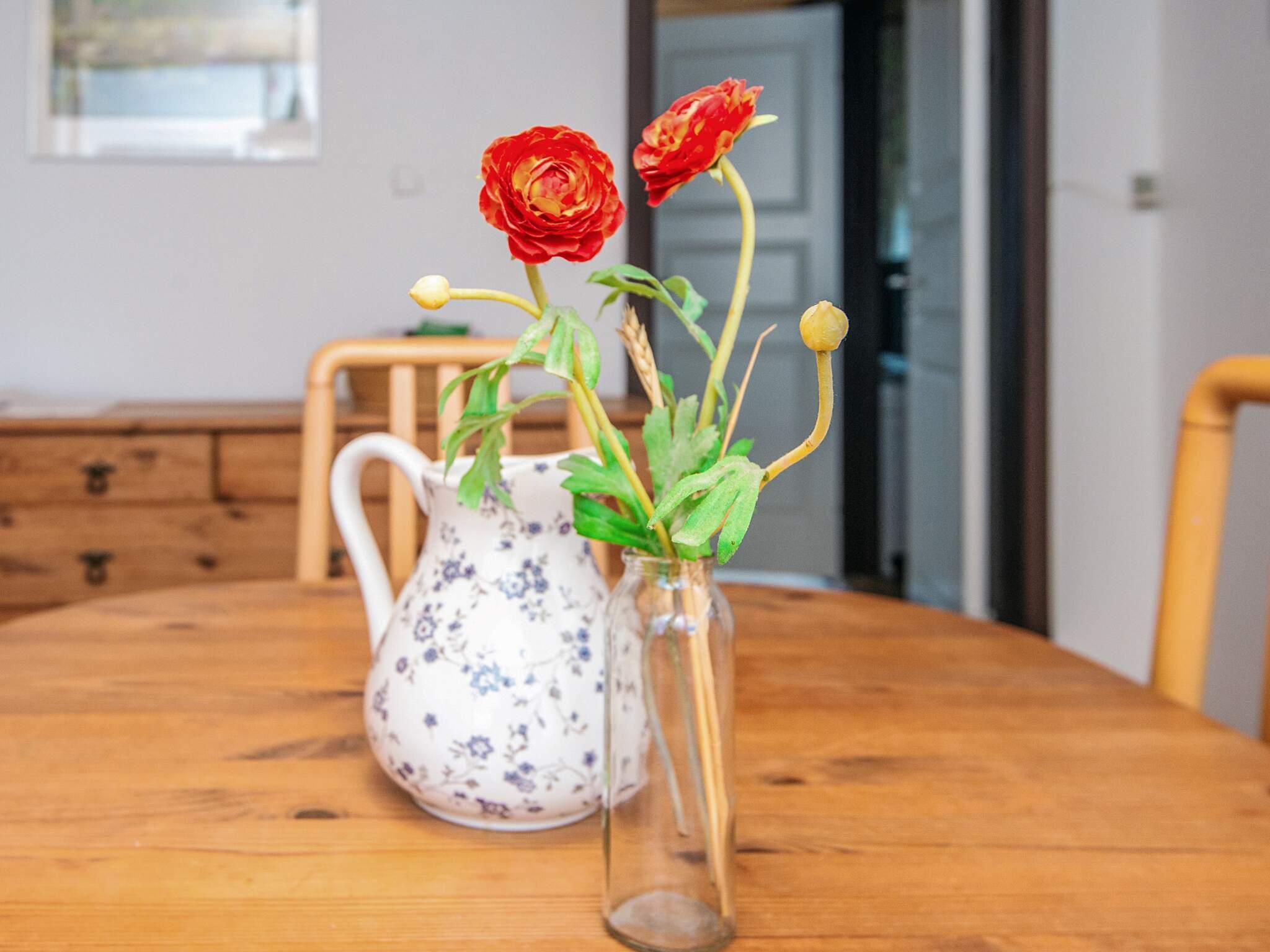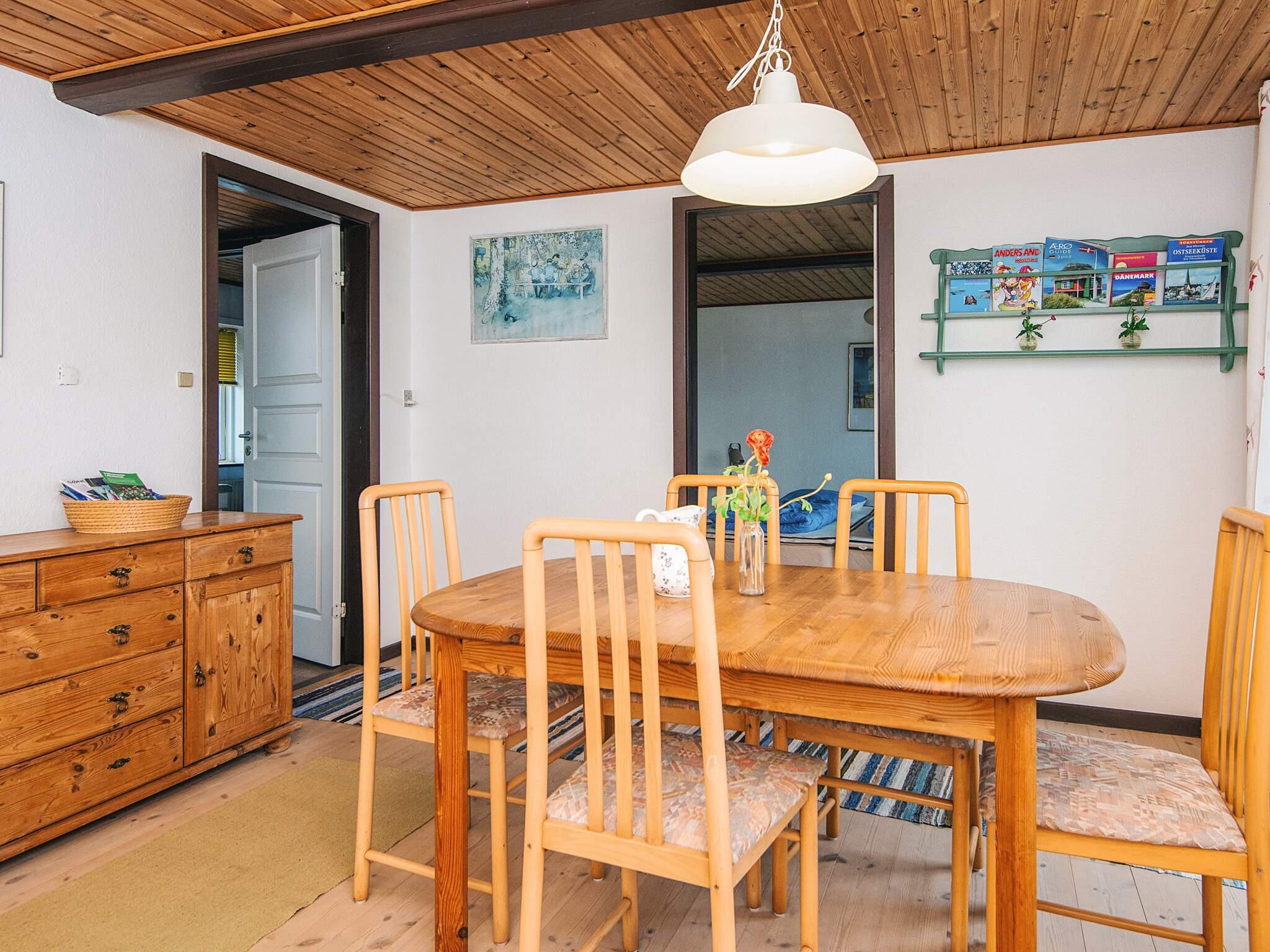 Im Inneren des Ferienhauses erwarten Sie eine Küche mit u.a. Geschirrspüler und Essbereich sowie ein Wohnzimmer mit bequemen Möbeln und Zugang zu einem schönen, nach Süden ausgerichteten Grundstück, auf dem die Kinder spielen können. Im Haus zudem ein Schlafzimmer mit Doppelbett sowie ein zweites Schlafzimmer mit zwei Einzelbetten und einer ausziehbaren Liege als Zustellbett. Das Badezimmer ist ansprechend renoviert und mit Dusche sowie angenehmer Fußbodenheizung ausgestattet.