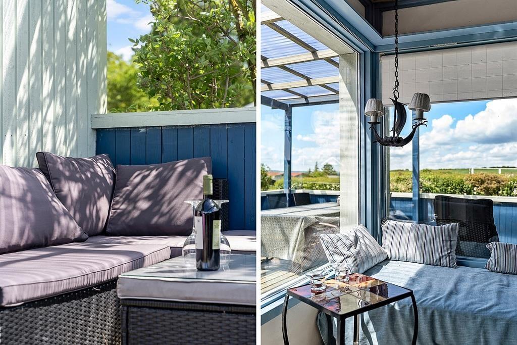 Draußen entfaltet dieses Ferienhaus seinen ganz besonderen Charme. Der gepflegte Garten umgibt das Haus wie eine grüne Oase, und auf mehreren Terrassen findest du zu jeder Tageszeit ein schönes Plätzchen in der Sonne oder im Schatten. Stell dir vor, du trinkst deinen Morgenkaffee mit Blick auf das glitzernde Wasser und genießt die Ruhe. Auch das Abendessen vom Grill wird hier zum Erlebnis. Ob auf einer Sonnenliege mit einem kühlen Getränk oder beim Lauschen der Vögel – der Garten schenkt dir echte Urlaubsqualität. Für Kinder bietet er außerdem viel Platz zum Spielen, und der geschützte Innenhof sorgt für zusätzliche Privatsphäre.