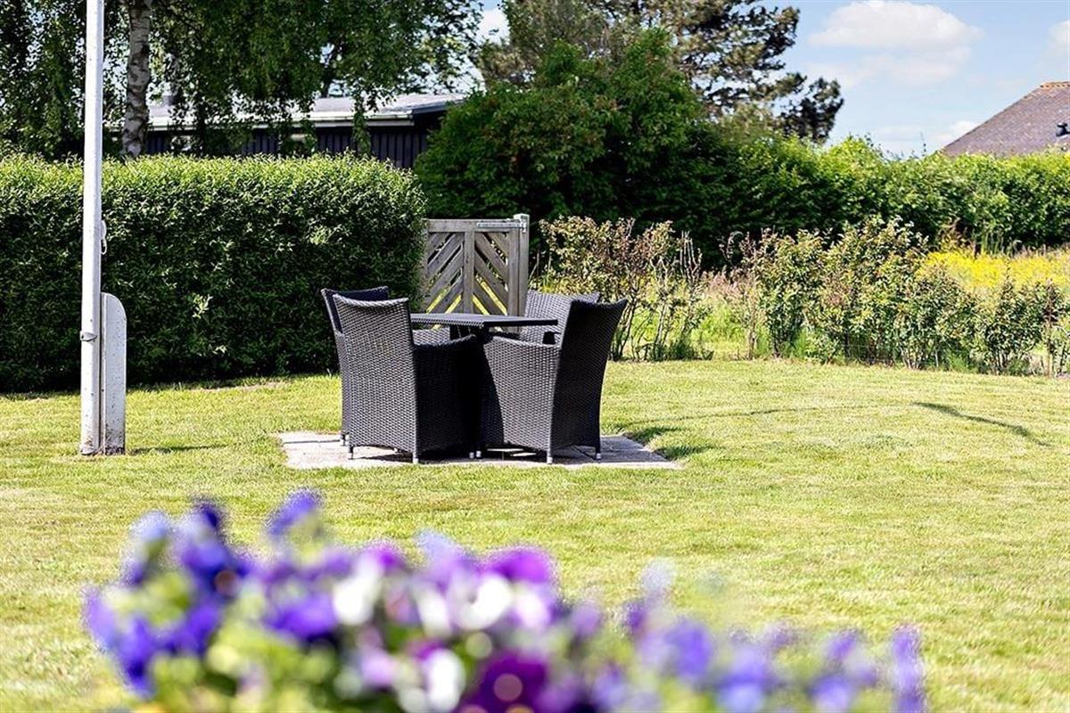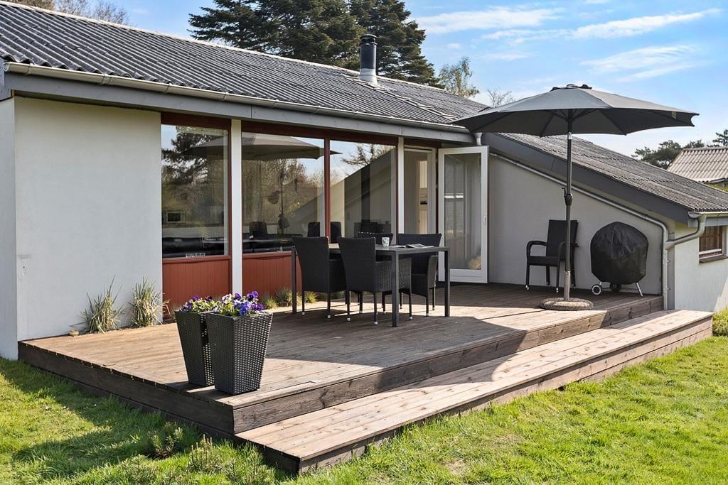 Draußen findest du einen großen, gepflegten Garten mit viel Platz zum Spielen und Entspannen. Die gemütliche Holzterrasse lädt zu morgendlichem Kaffee in der Sonne oder Grillabenden ein. Vom Terrasse aus hast du einen Blick auf das Meer und kannst das Rauschen der Wellen in der Ferne hören.