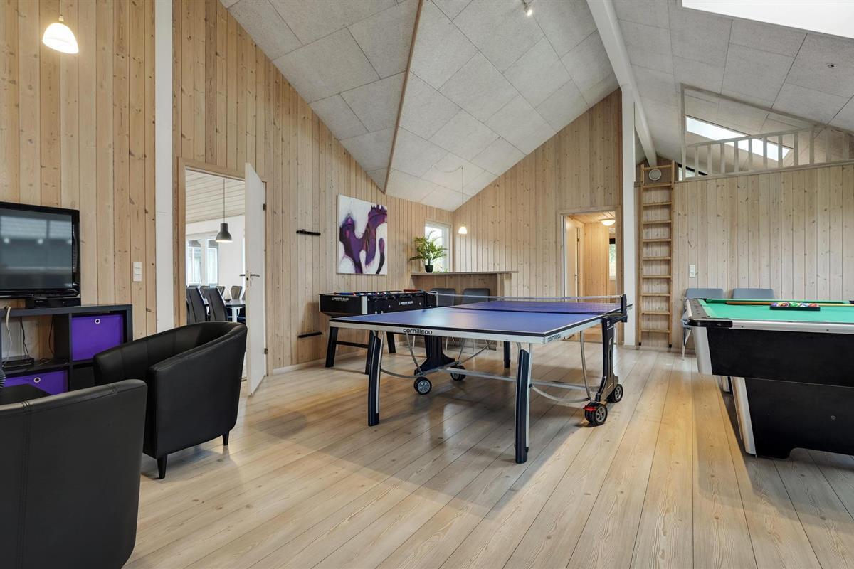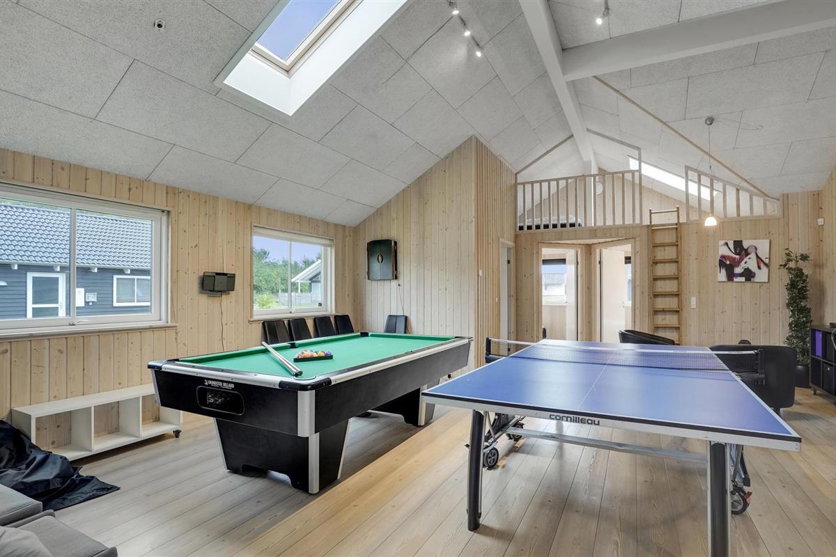 In de activiteitenruimte kunt u elkaar uitdagen bij tafeltennis, biljart en darts, het is net naast de grote woonkamer en keuken. In de poolkamer kunt u naar believen actief zijn in de 6 persoons jacuzzi, sauna of het zwembad. Het interieur is ingericht met moderne meubels en de inrichting zorgt ervoor dat u zich meteen thuis voelt.