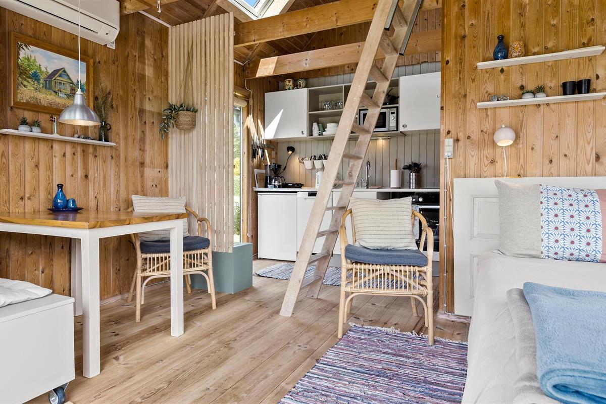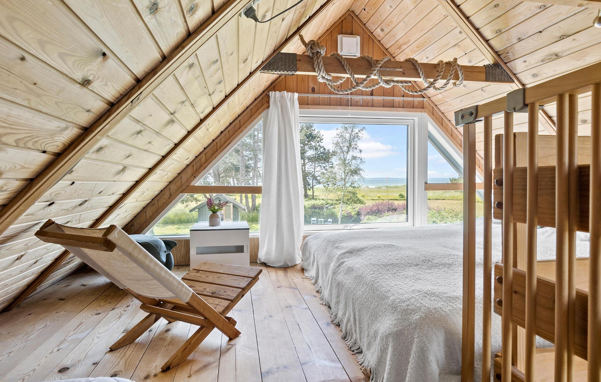 Dit charmante vakantiehuis ligt op een toplocatie, direct in de eerste rij naar het gezinsvriendelijke Kegnæs strand. Het huis is comfortabel ingericht en biedt jullie als stel alles wat je nodig hebt voor een ontspannen vakantie. De slaapzolder is bereikbaar via een trapje, het bovenste gedeelte is open en van beneden kun je de mooie houten balken zien.