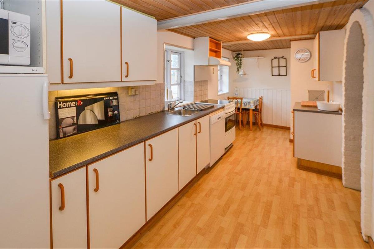 Dit gezellige vakantiehuis ligt op het schiereiland Kegnæs. De goed uitgeruste keuken van het huis is verbonden met het eetgedeelte en de woonkamer. Hier vindt u ook de houtkachel, waar u op koele dagen en avonden een gezellig vuurtje kunt stoken. Er is ook een energievriendelijke warmtepomp die zowel kan verwarmen als koelen.