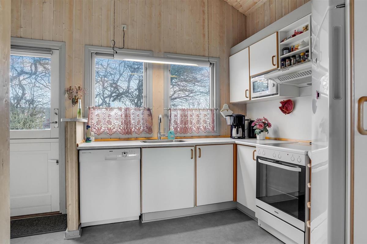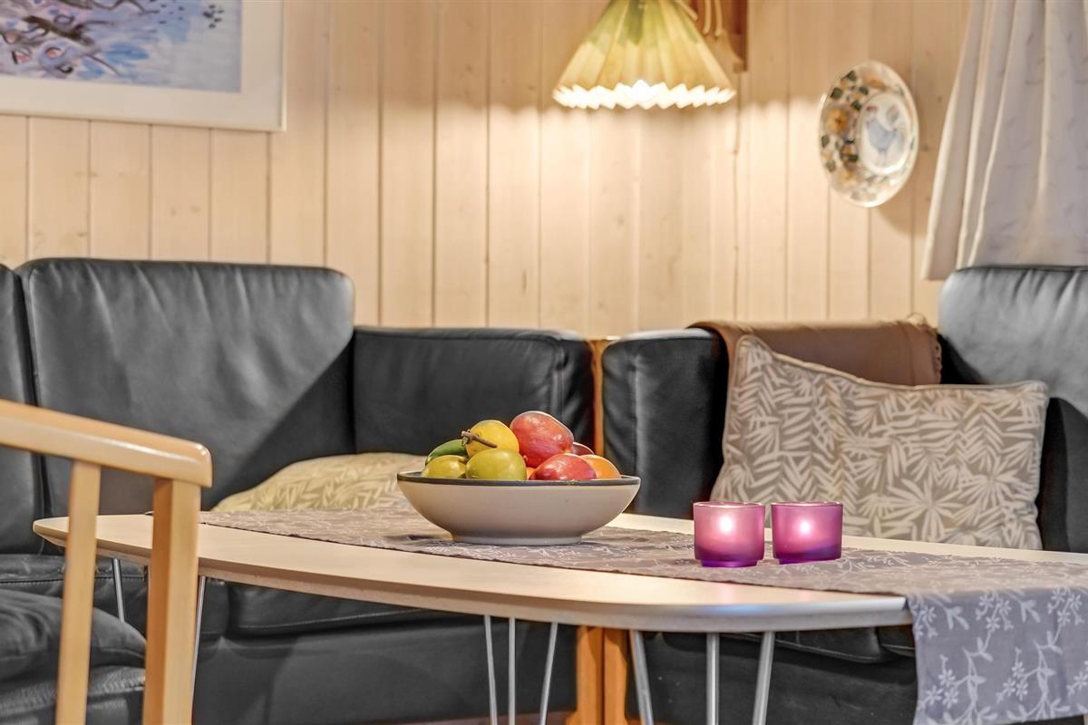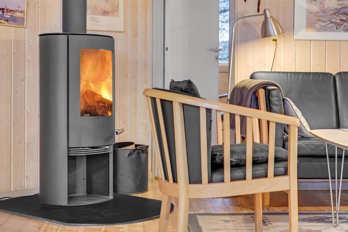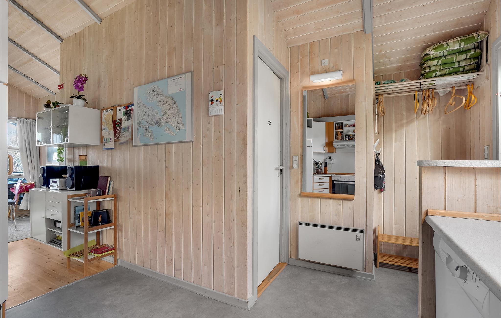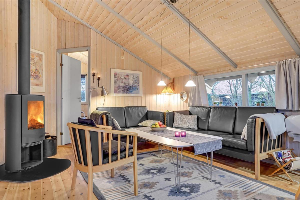 Ruim blauw houten vakantiehuis vlakbij Kegnæs strand met sauna, tuin en volledig uitgeruste keuken voor een ontspannen verblijf.