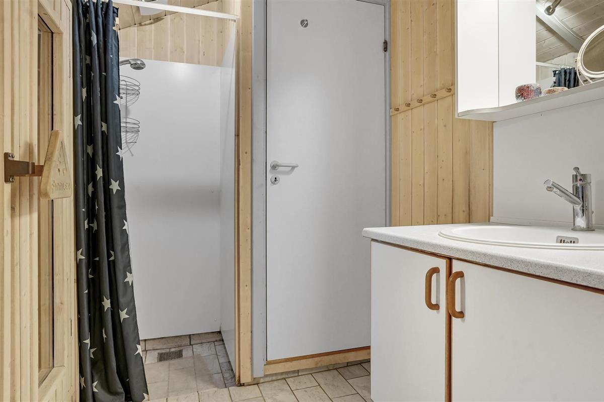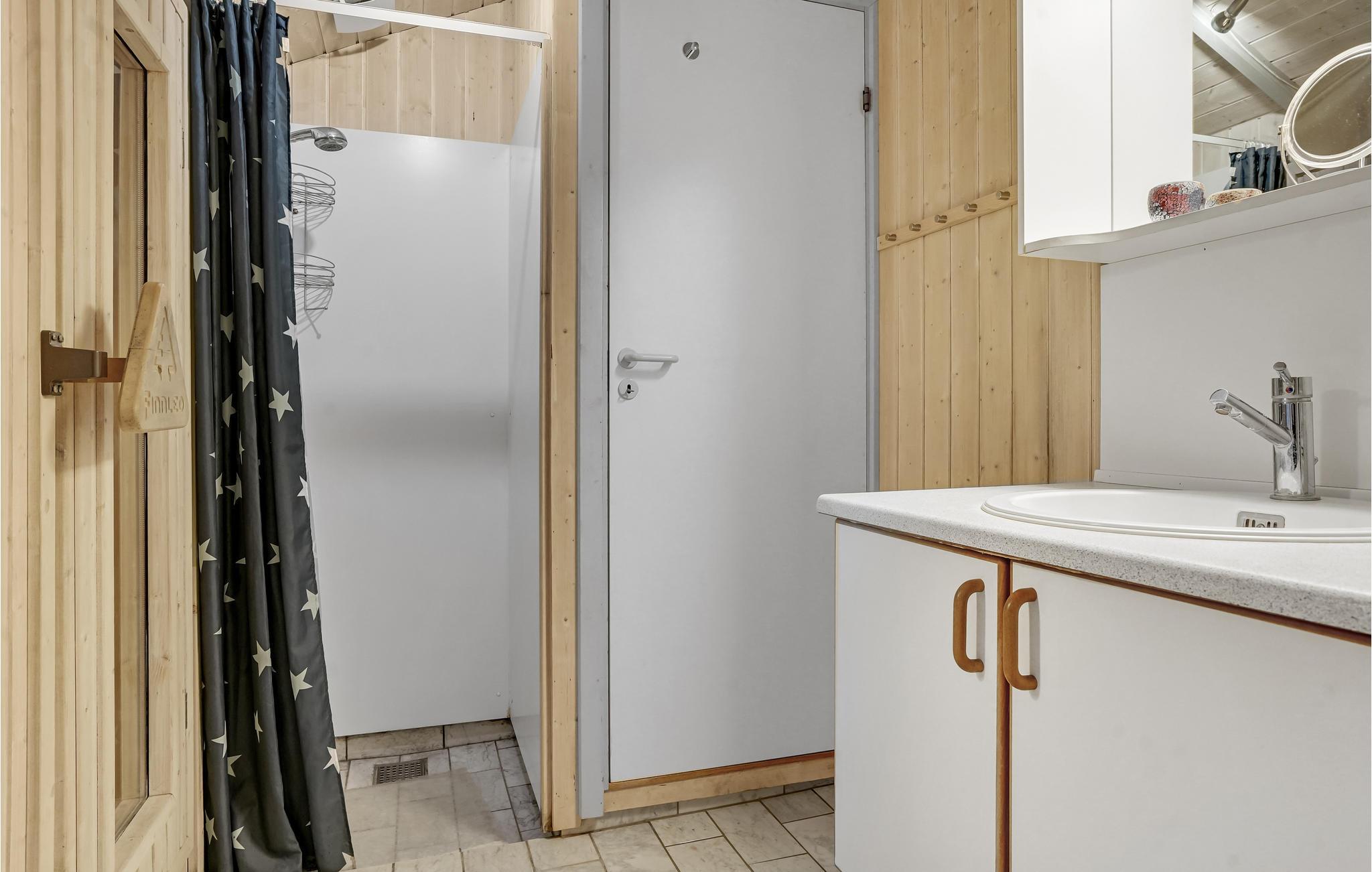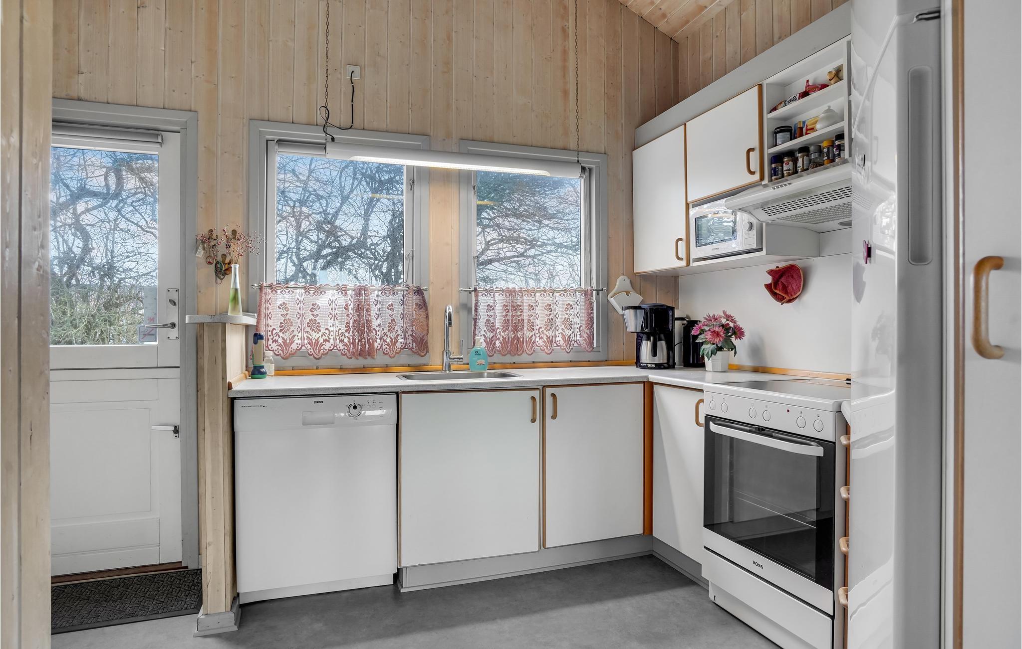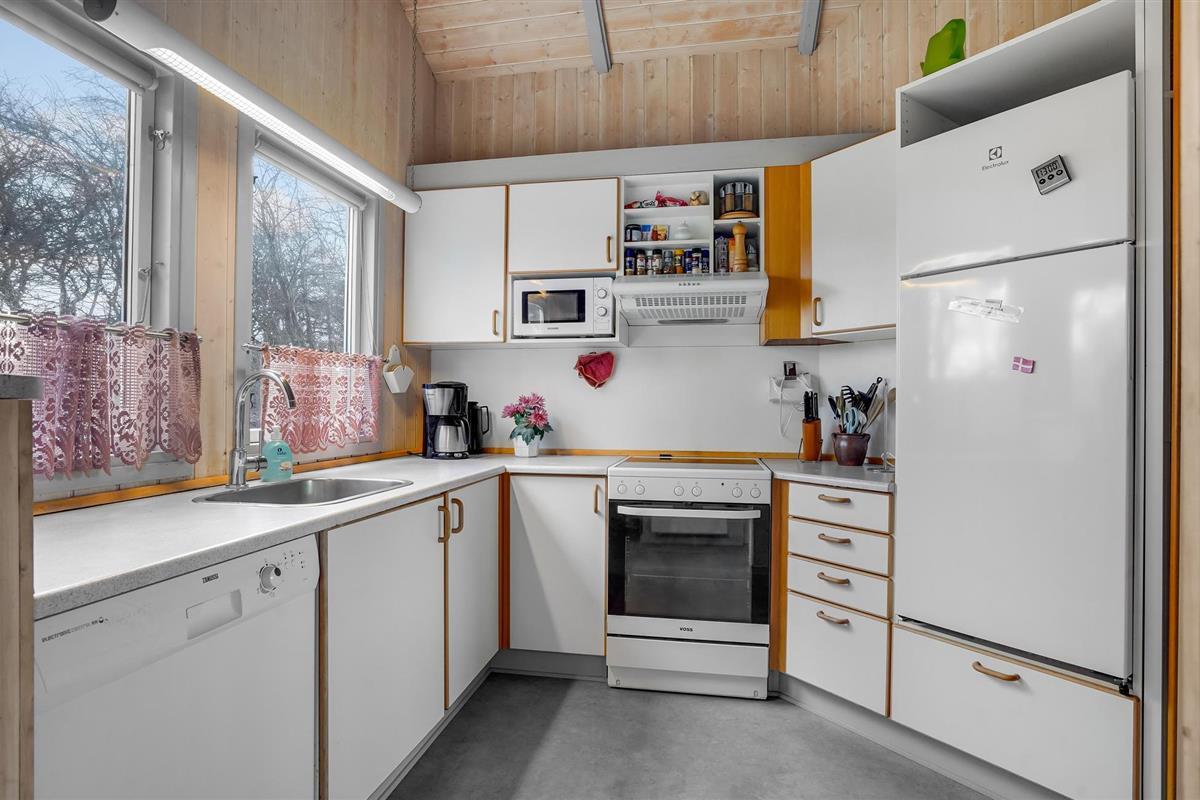 Ruim blauw houten vakantiehuis vlakbij Kegnæs strand met sauna, tuin en volledig uitgeruste keuken voor een ontspannen verblijf.