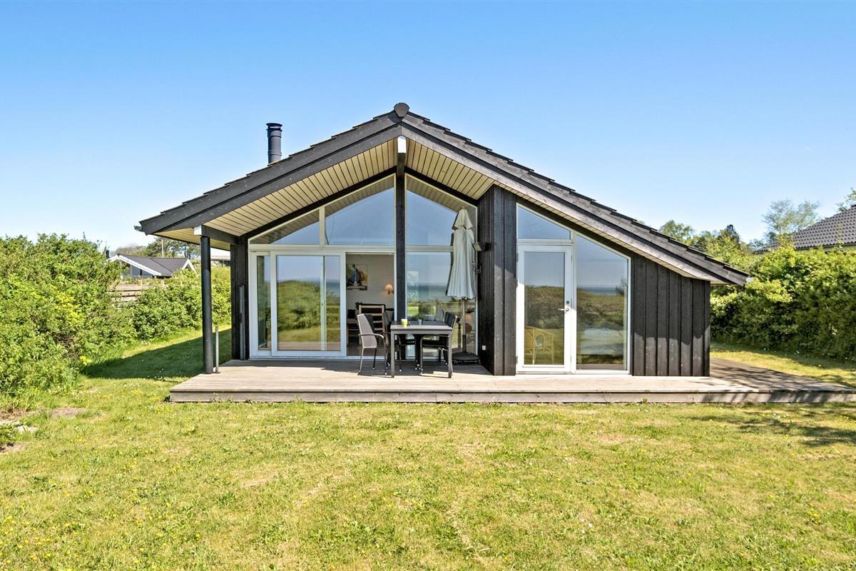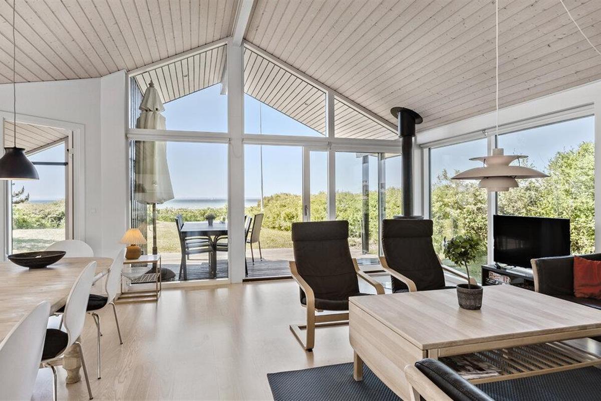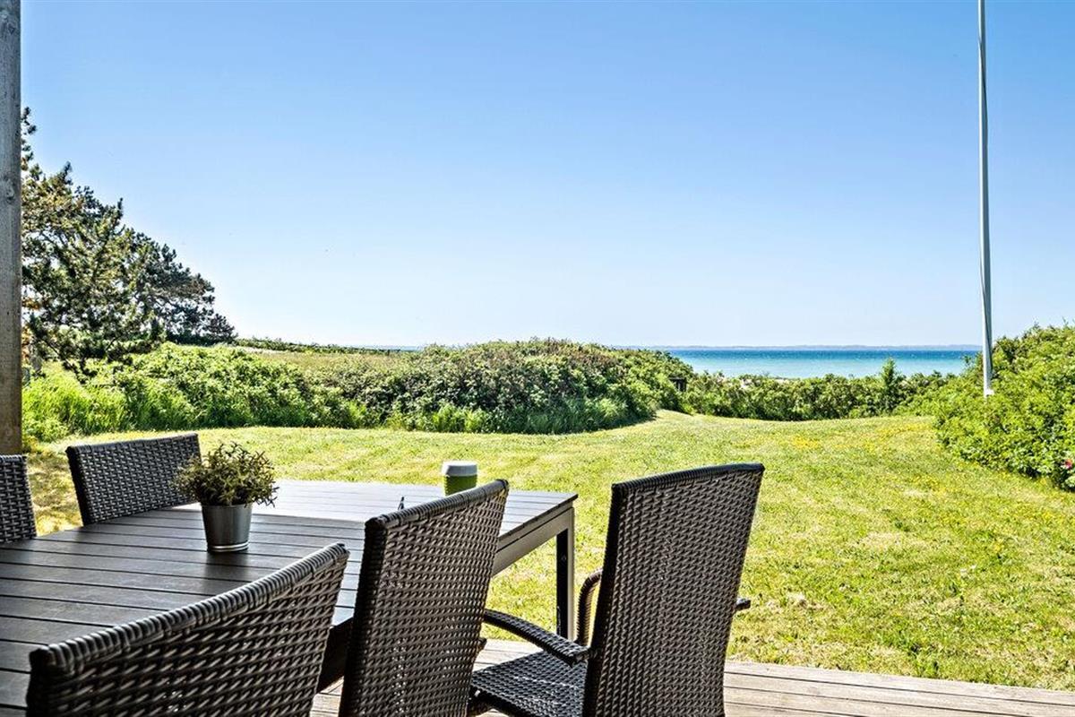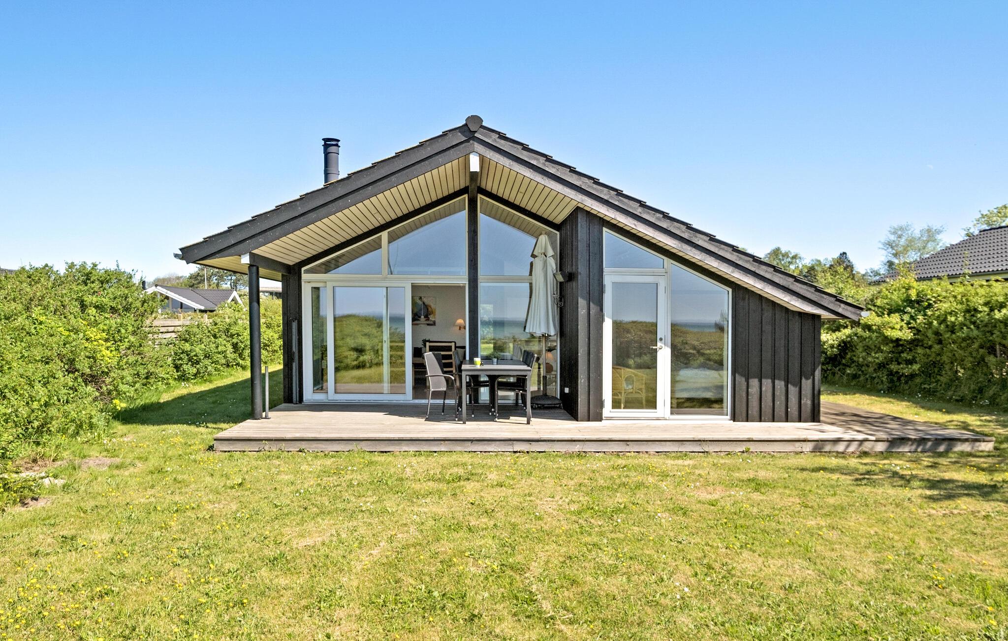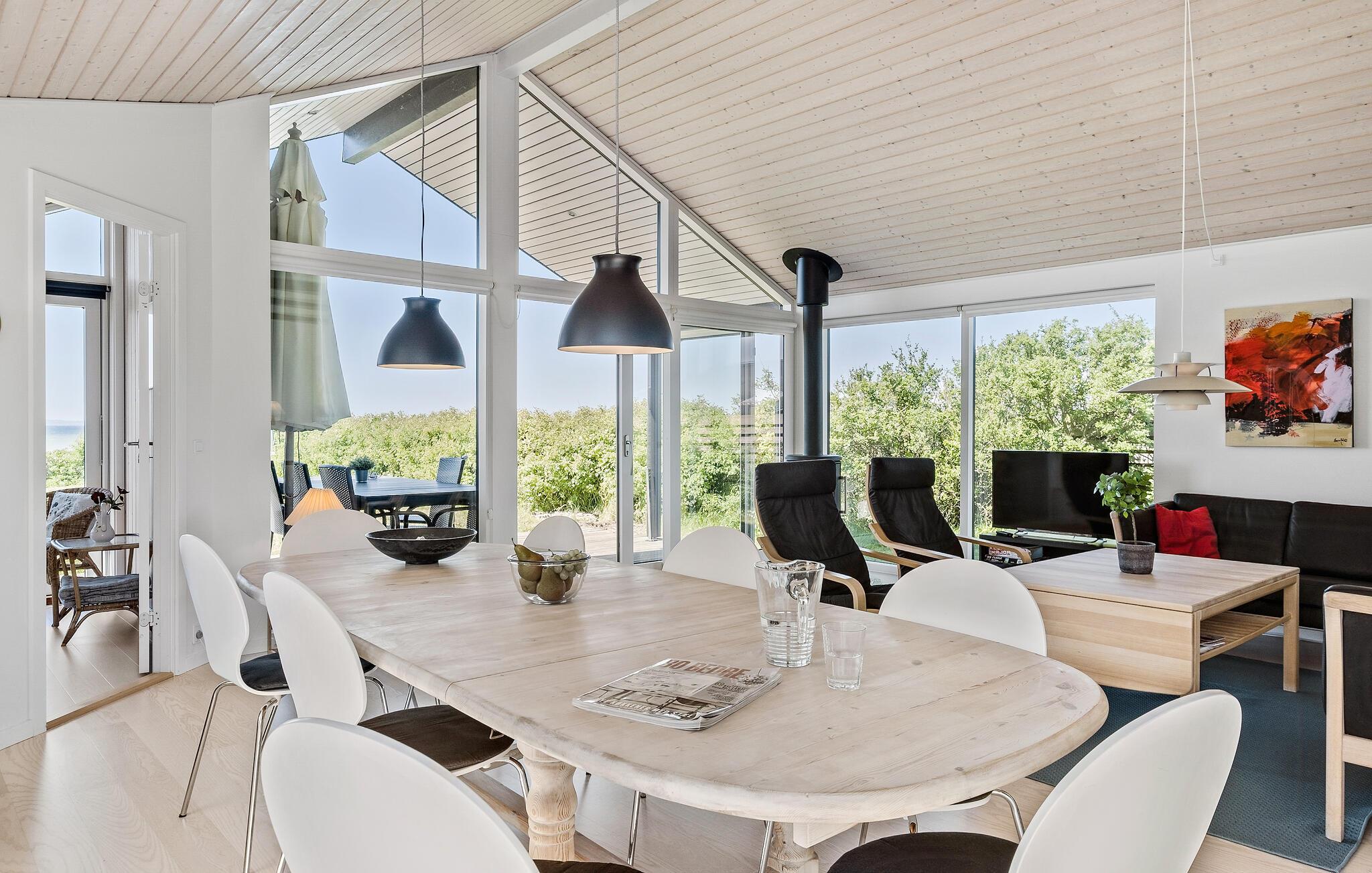 Ontspan in dit modern ingericht vakantiehuis aan Kegnæs Strand met panoramisch zeezicht en directe toegang tot het strand.