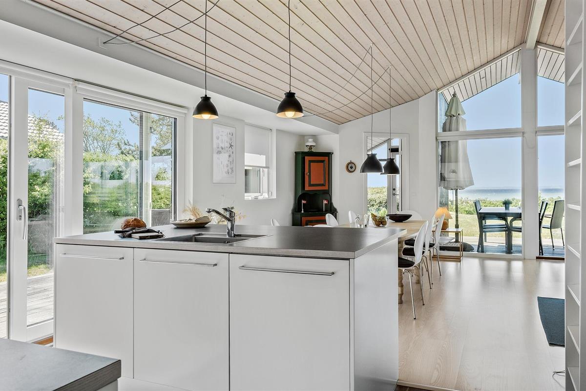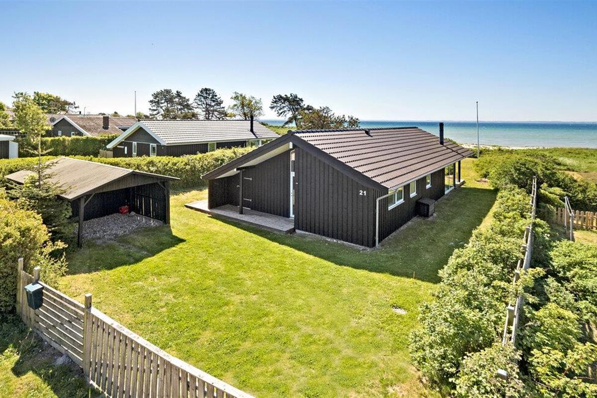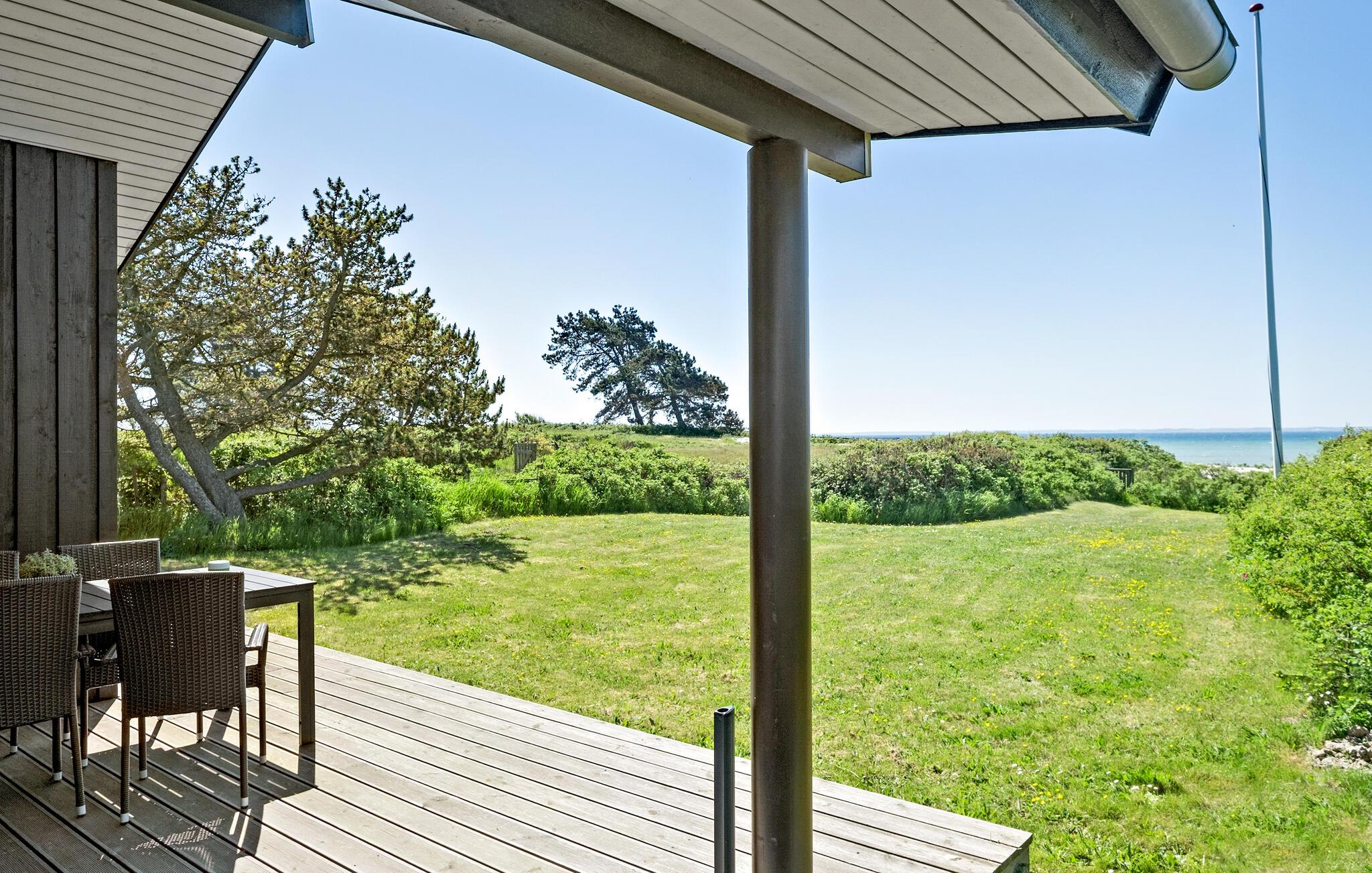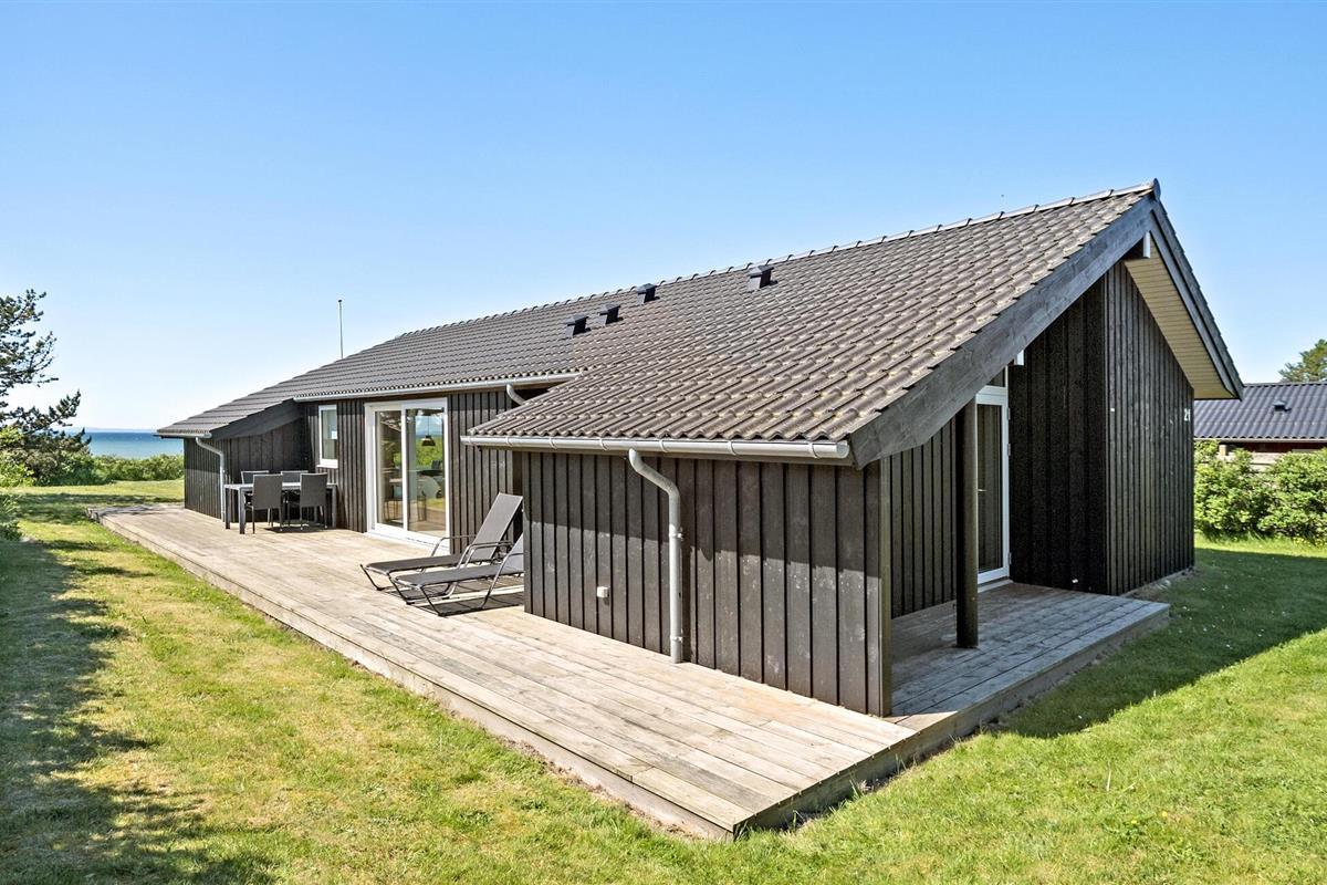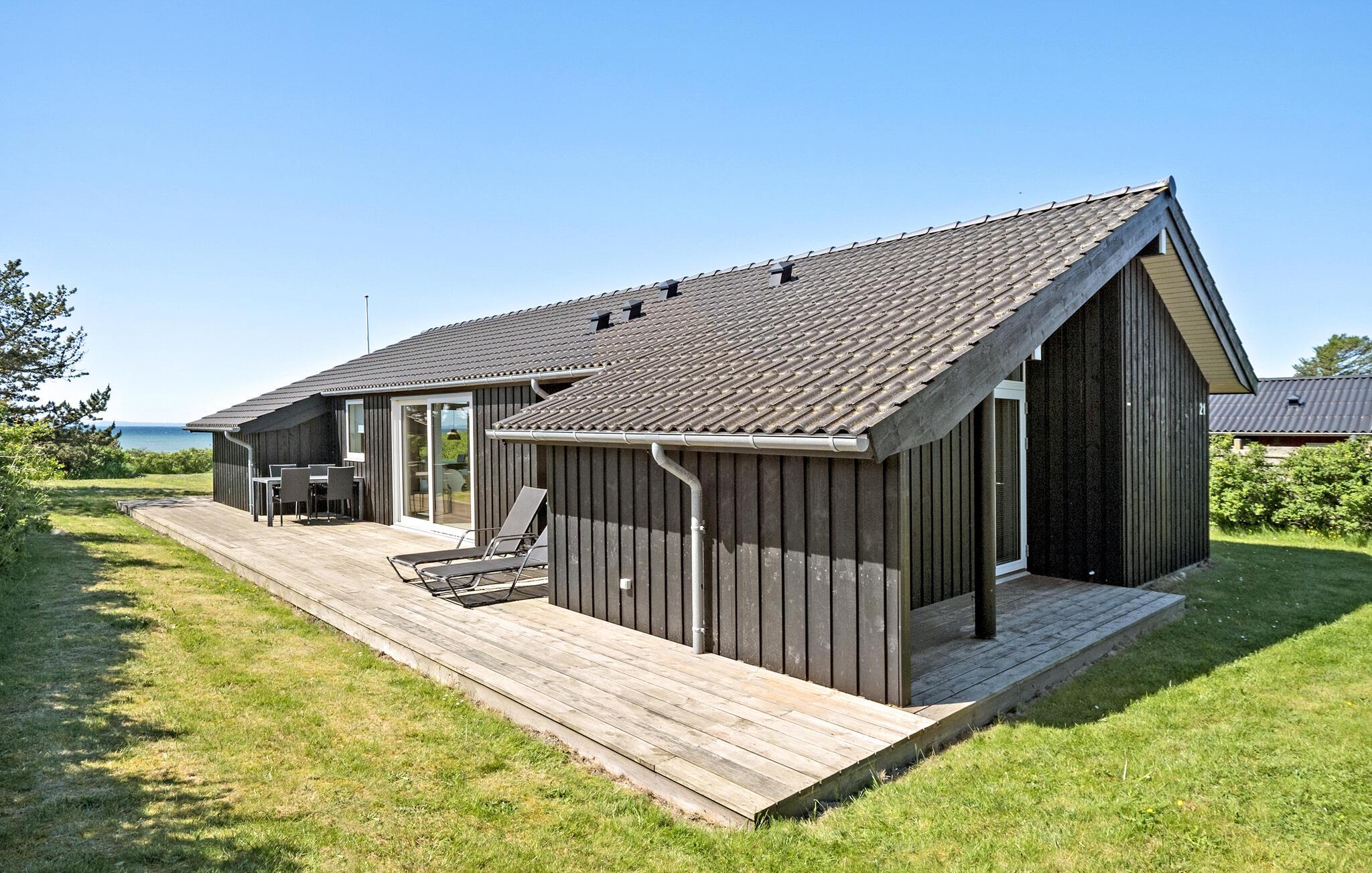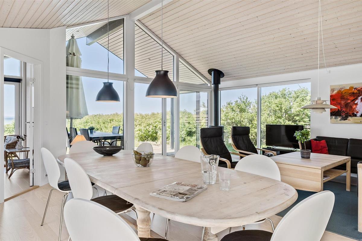 Ontspan in dit modern ingericht vakantiehuis aan Kegnæs Strand met panoramisch zeezicht en directe toegang tot het strand.
