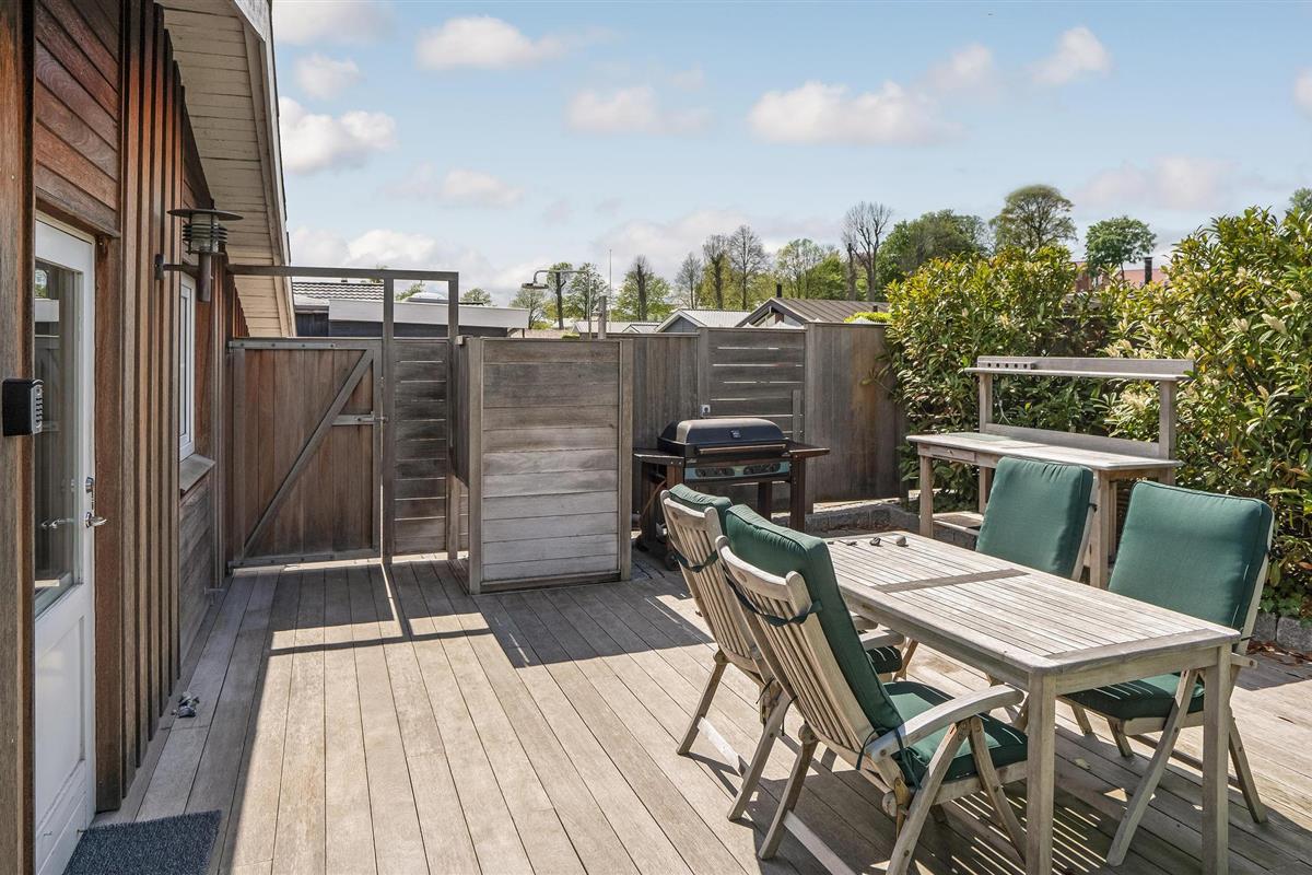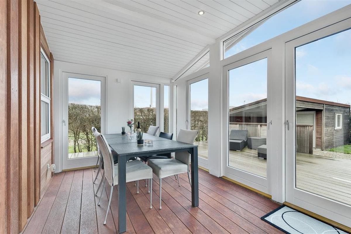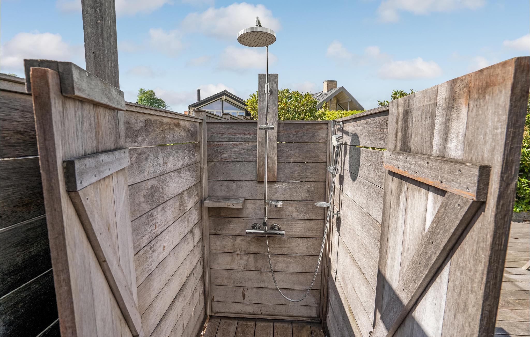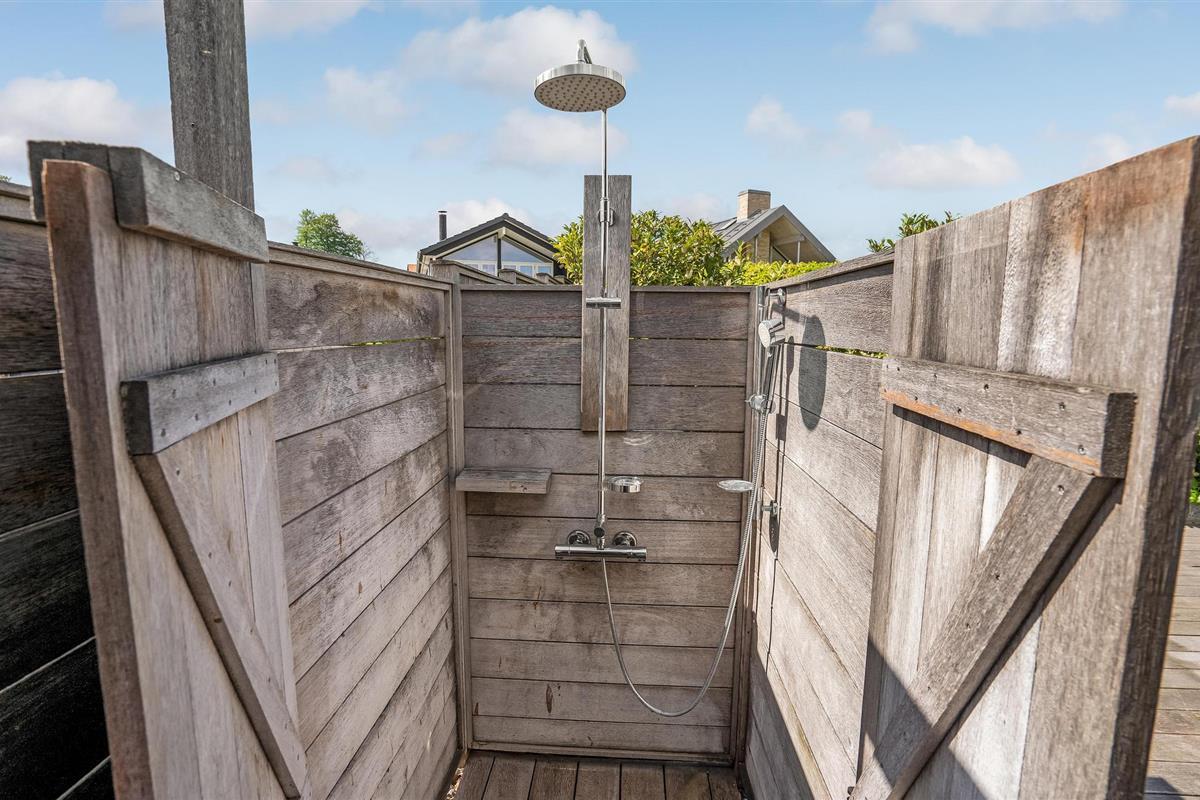 Het grote terras met tuinmeubilair is de perfecte plek om te ontspannen in de zon met een goed boek of om met het gezin in de frisse lucht te eten. Na een bezoek aan het strand is de buitendouche handig om het zand af te spoelen of om op warme dagen op het terras af te koelen na het zonnebaden.