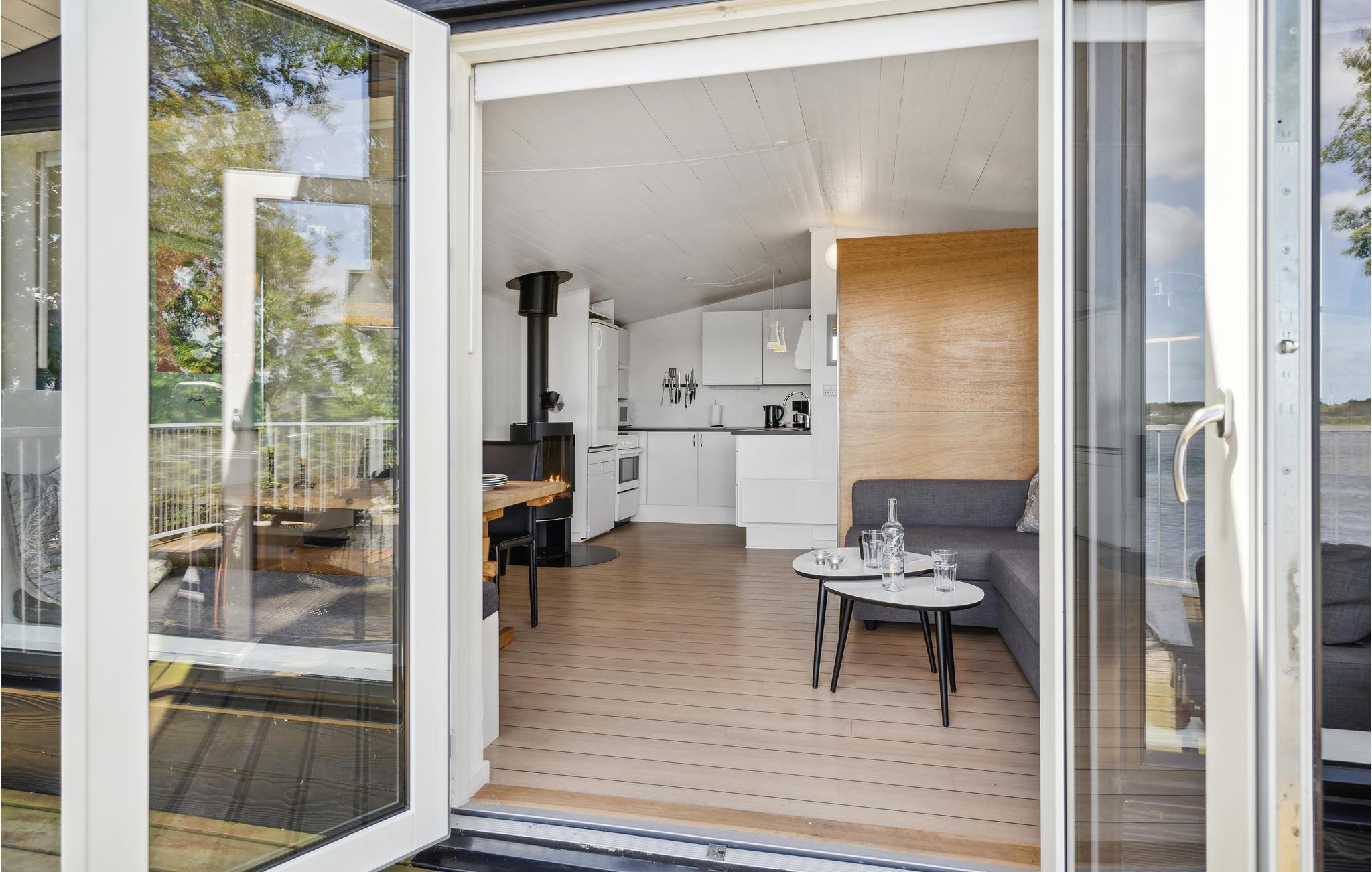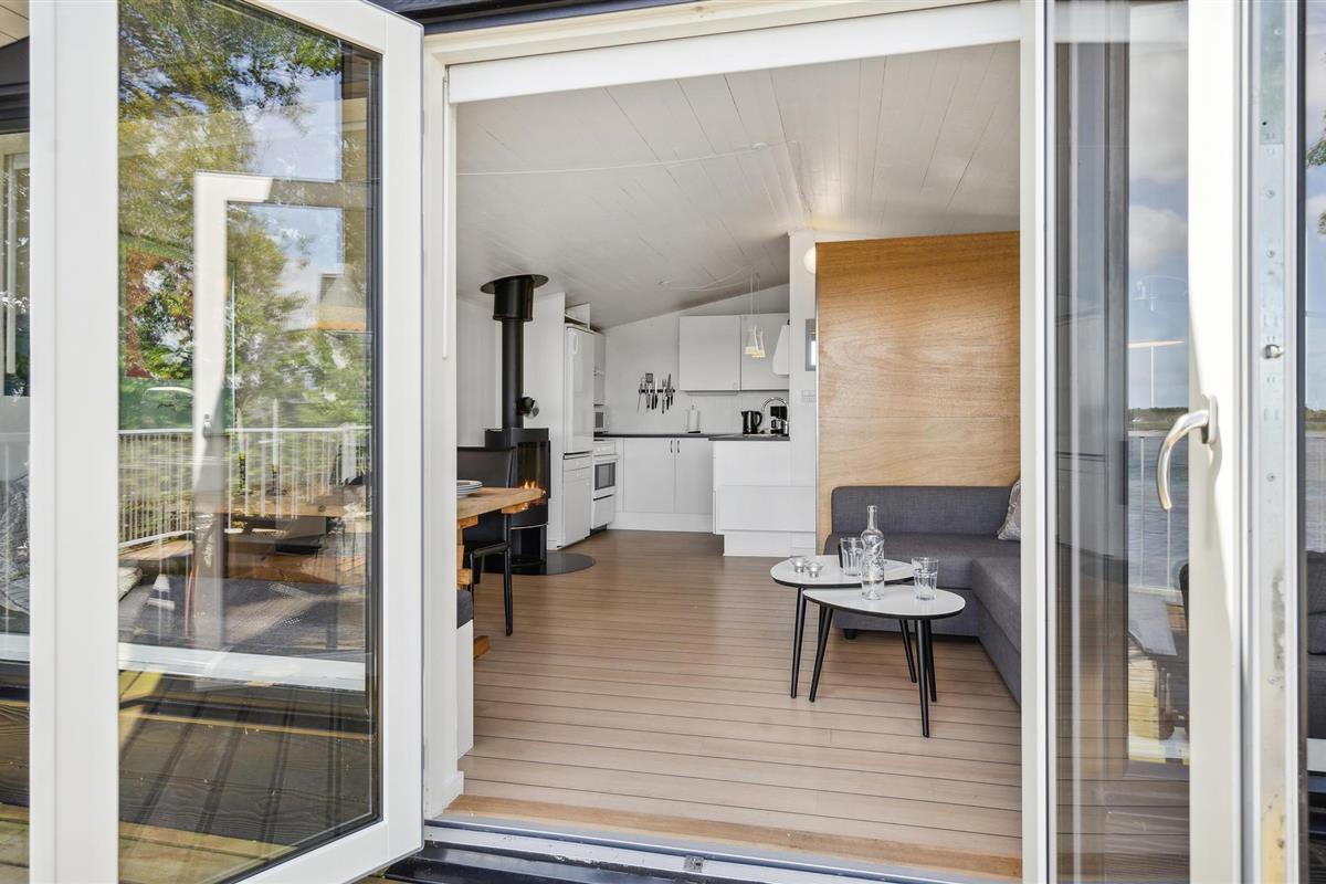 Prachtig vakantiehuis met fjordenpanorama en open haard, perfect voor ontspanning aan het water.