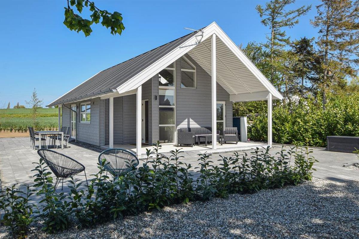 Modern en gezellig vakantiehuis vlak bij het strand van Kerteminde Fjord, met terras en vloerverwarming.