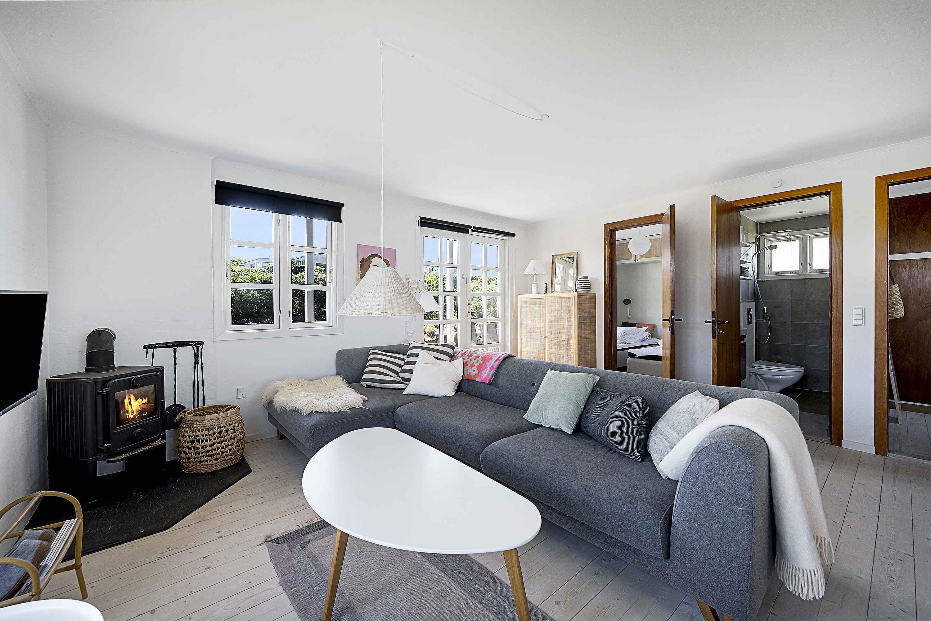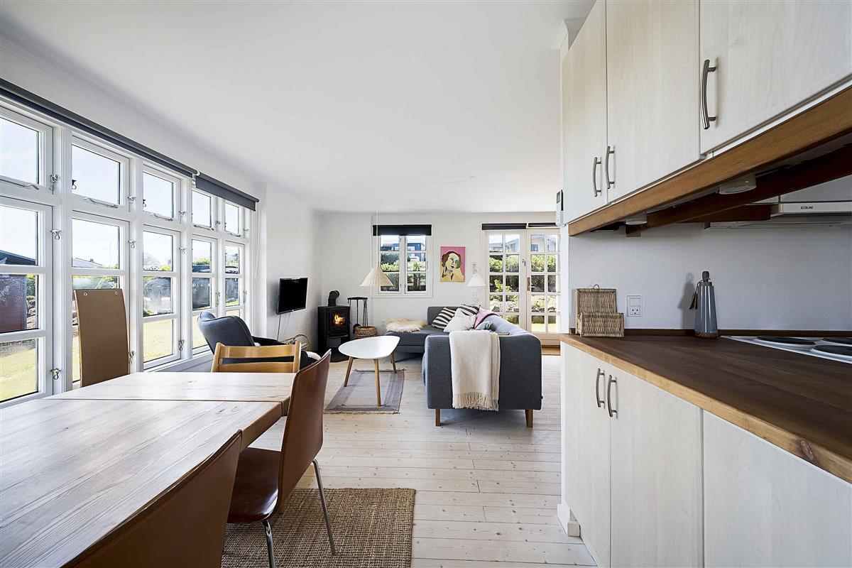 Welkom in dit charmante huisje dat een liefdevolle renovatie heeft ondergaan. Gelegen in het prachtige Kerteminde, rust het huis op een verhoogd perceel van 500 m2, waar u kunt genieten van een adembenemend uitzicht op de zee en de eindeloze velden. Binnen een korte wandeling van slechts 500 meter wacht Kertemindes Nordstrand, een schatkamer van een strand, erkend als een van de mooiste van Funen. Stranddagen en zonsondergangen worden onderdeel van uw dagelijkse routine. En wanneer de drang naar het stadsleven toeslaat, is het slechts 1,5 km wandelen naar het levendige centrum van Kerteminde. Dit vakantiehuis biedt een goed doordacht interieur met twee knusse slaapkamers. De eerste kamer biedt een stapelbed en een eenpersoonsbed, terwijl de tweede verleidt met twee eenpersoonsbedden. Een nieuwe en lichte badkamer met douche en vloerverwarming nodigt u uit om te ontspannen. De woonkamer creëert een sfeer van samenhang en comfort, waar de keuken en woonkamer verenigd zijn in een organisch geheel. De lichte woonkamer heeft niet alleen een houtkachel die uitnodigt tot gezellige avonden, maar ook een lucht/lucht-warmtepomp en een tv voor entertainment. De keuken, het hart van het huis, is voorzien van moderne gemakken zoals koel-vriescombinatie en vaatwasser. Vanaf hier leidt een deur direct naar het overdekte terras, uitnodigend om buiten te eten en te ontspannen bij alle weersomstandigheden. Tuinmeubelen en een barbecue staan ??tot uw beschikking, en in de tuin vindt u ook een beschutte plek waar u onder de blote hemel kunt genieten van natuurbelevenissen. Om een ??rustige en vredige sfeer te behouden, wordt het huisje niet verhuurd aan jeugdgroepen. Hier is een toevluchtsoord dat uitnodigt tot ontspanning en contemplatie, terwijl de omgeving vol spannende ervaringen en mogelijkheden is om Kerteminde en zijn schilderachtige omgeving te verkennen.