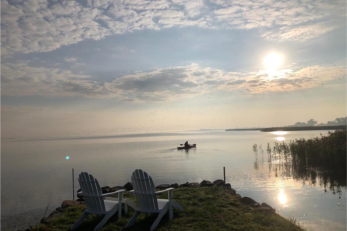 De twee terrassen met comfortabel tuinmeubilair en met 4 comfortabele ligstoelen nodigen u uit om talrijke aangename uren buiten door te brengen. Geniet hier buiten van de rust en de zon. Zowel vanaf het terras als vanuit de woonkamer kunt u genieten van een 180 graden panorama op de baai van Stege.