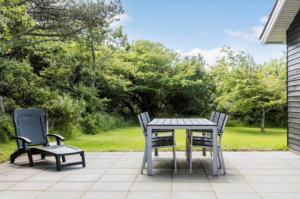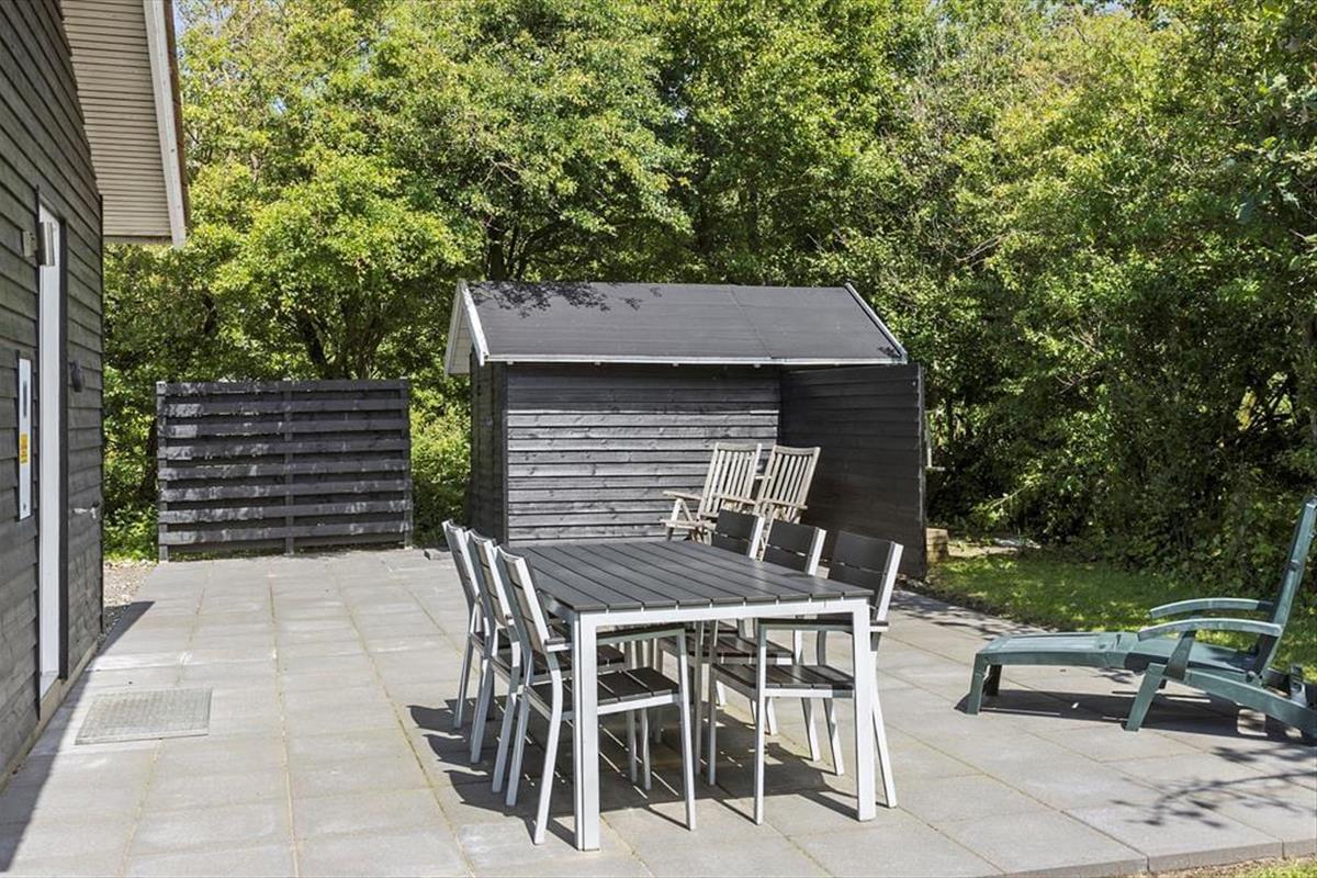 Auf dem 1.200 m² großen Naturgrundstück genießt du das entspannte Urlaubsleben in vollen Zügen. Dank mehrerer Aufenthaltsplätze kannst du frei entscheiden, ob du dich auf der erhöhten Holzterrasse in Verlängerung des Wohnraums oder auf dem großen gepflasterten Terrassenareal hinter dem Haus niederlassen möchtest. Nachdem du ausgiebig an der frischen Luft gewesen bist oder dich den gesamten Nachmittag über in ein gutes Buch vertieft hast, kannst du den hauseigenen Grill anheizen und ein köstliches Abendessen für deine Familie zubereiten. Die Randbepflanzung des Grundstücks ist dicht und grün und bietet guten Windschutz. Nach dem Abendessen wirst du mit deinen Kindern sicher gern auf der weitläufigen Grasfläche Fußball und andere Gartenspiele spielen.