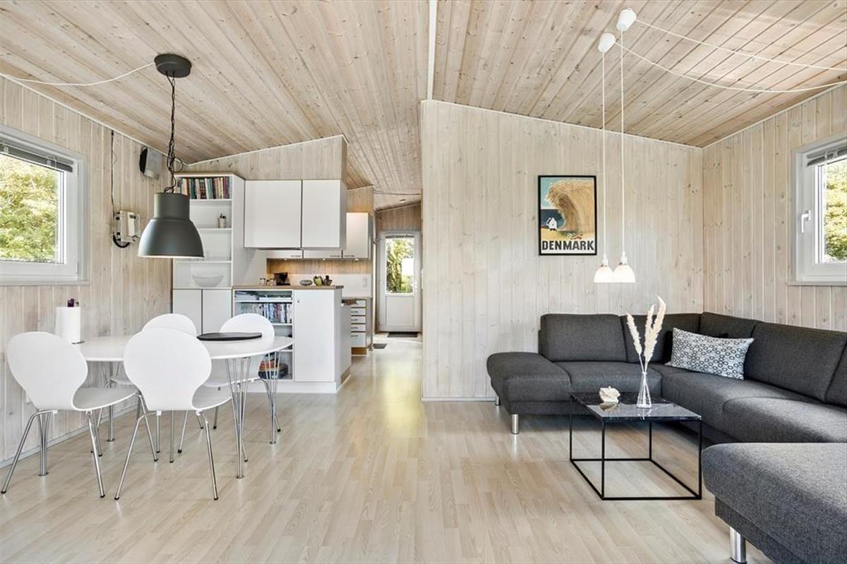 Bei deinem Ferienhaus handelt es sich um ein hübsches, gepflegtes Exemplar, das mit einer hellen, einladenden Wohnatmosphäre zu punkten weiß. Während du dich im Wohnraum auf dem Sofa nah am Kaminofen niederlässt, blickst du durch die großen Wohnraumfenster in den üppig grünen Garten. Nur wenige Schritte trennen das Sofa im Wohn- und Essbereich von der gut ausgestatteten offenen Küche. In den beiden Schlafräumen kann sich deine Familie so lange sie will ausschlafen. Gut ausgeruht startet ihr morgens mit einem Duschbad im Badezimmer in den neuen Urlaubstag.