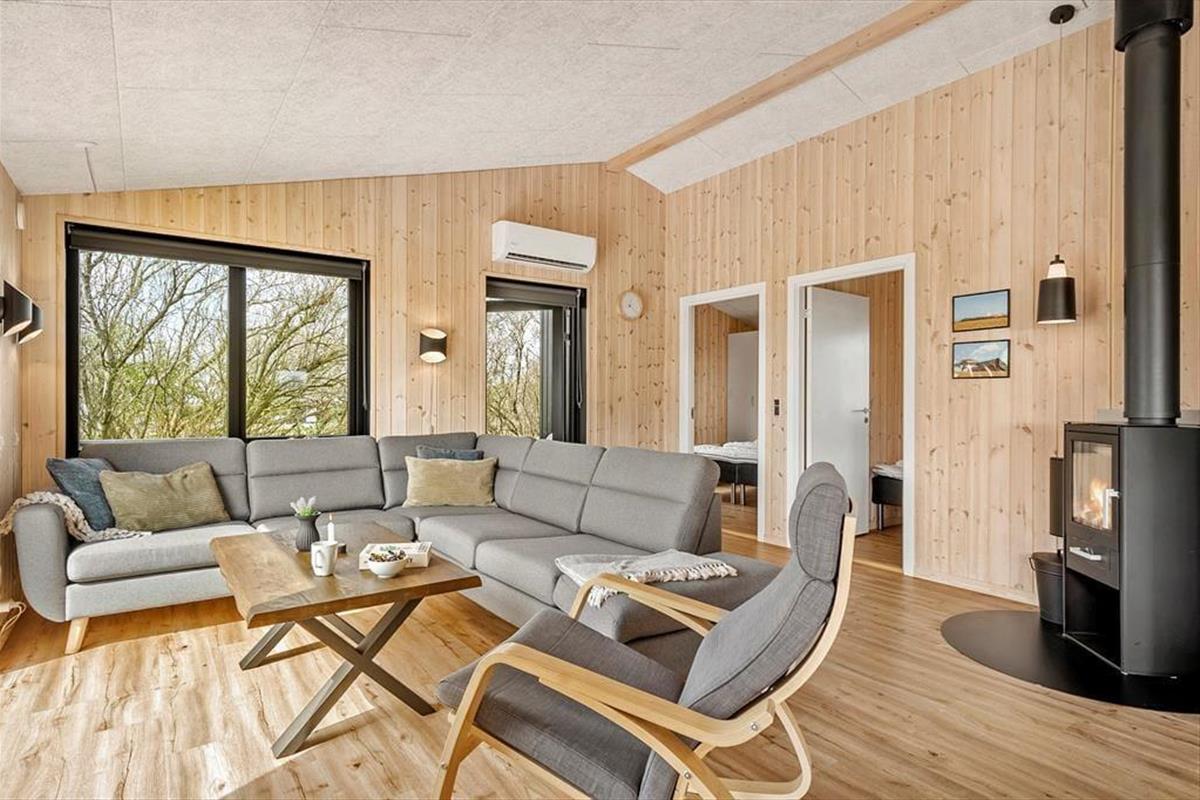 Innerhalb des Ferienhauses ist die Atmosphäre hell und einladend, und alle Räume sind minimalistisch und stillvoll eingerichtet mit modernem Mobiliar. Das 99 m2 große Ferienhaus bietet unter anderem einen herrlichen Aufenthaltsraum mit integrierter Küche, Kaminofen und TV mit sowohl Parabolantenne wie auch Chromecast. Drei gute Schlafzimmer sind auch ein Teil des Bauplans, wovon zwei mit Doppelbett ausgestattet sind und das Dritte mit 2 Einzelbetten. Hier erwartet Sie ein guter Nachtschlaf, und wenn Sie aufstehen, können Sie sich mit einem herrlichen Duschbad in dem schönen Badezimmer erfrischen.