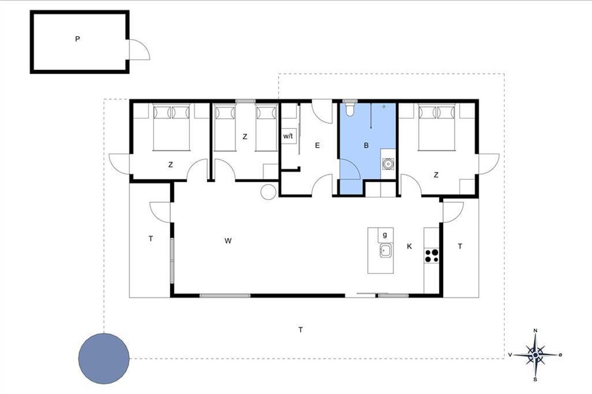 Auch draußen im Freien gibt eine Möglichkeit ein Bad zu nehmen: hier auf dem 930 m2 großen Grundstück befindet sich nämlich ein herrliches Wildnisbad, welches zu einer stillen Stunde, wenn die Dunkelheit einsetzt und der Ferienfrieden über Kjærgaarden einkehrt, einlädt. Sie können auch das Leben genießen auf der großen teilweise überdachten Holzterrasse, welche mit guten Qualitätsmöbeln ausgestattet ist. Auf dem Rasen des Gartens ist viel Platz für Spiel und Spaß, und darüber hinaus können Sie den Spielplatz des Ferienhausgebietes frei benutzen, wo es eine Petanque Bahn sowie eine Minigolfbahn – bitte bringen Sie selbst Bälle und Schläger mit, wenn Sie die Minigolfbahn benutzen möchten.