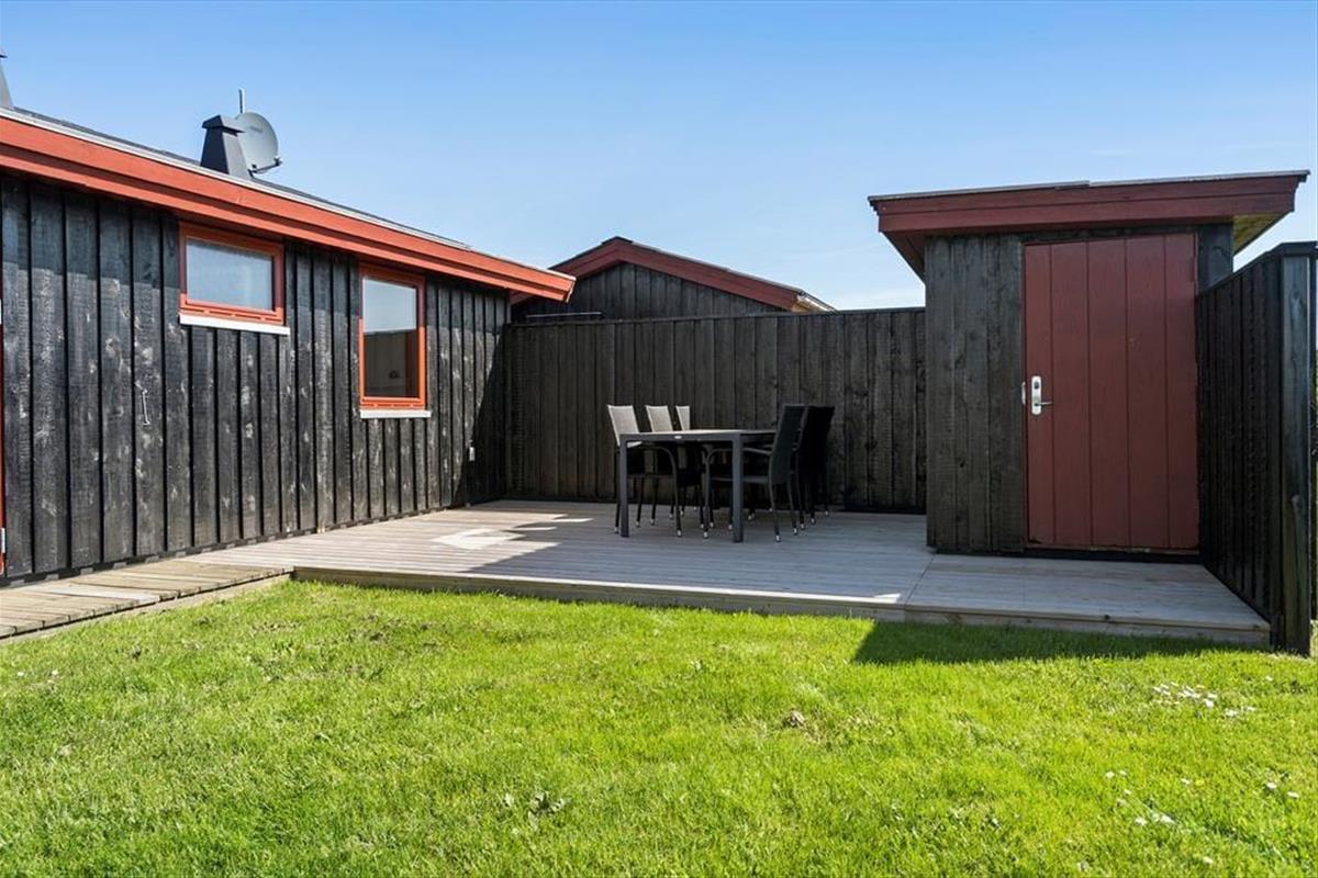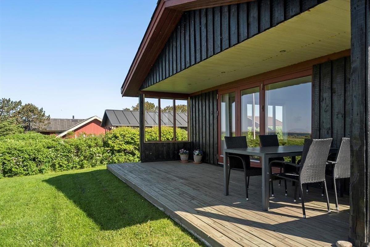 Das Ferienhaus liegt in naturnaher Umgebung auf einem wunderbaren Grundstück mit großen Büschen und Platz zum Spielen und Herumtoben auf der Wiese. Eine Terrasse verläuft größtenteils um das Haus, somit kann tagsüber der Sonne hinterher “gewandert” werden. Am Hauseingang befindet sich eine sehr gemütliche Ecke mit einer Sitzgruppe. Vom Wohnzimmer wird der große überdachte Bereich betreten.