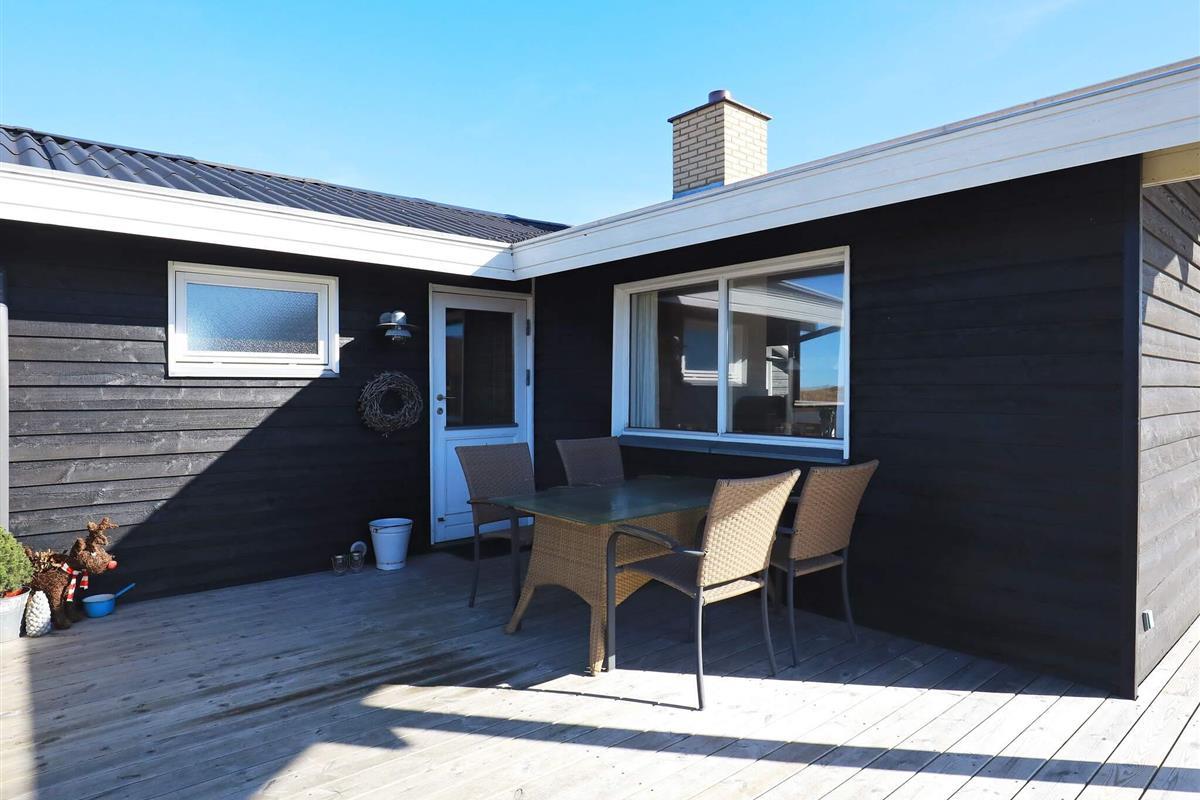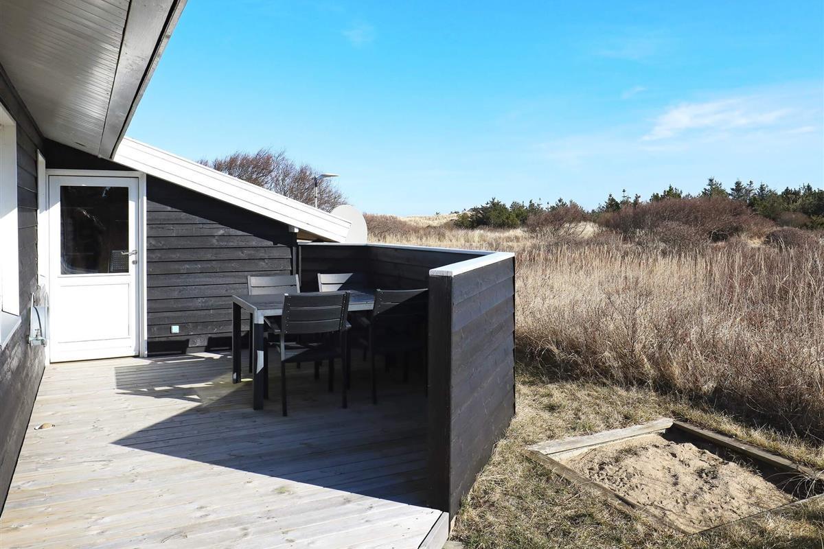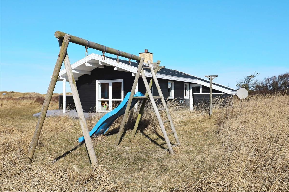 Das Ferienhaus hat einen offenen Küchen-/Wohnbereich sowie drei Schlafzimmer und ein Badezimmer mit Waschmaschine. Im Außenbereich findet man eine große Terrassenfläche mit Sonne oder Schatten je nach Vorliebe. Nur wenige Meter von dem Dünengrundstück entfernt findet man eien Spielplatz für die Kinder.
