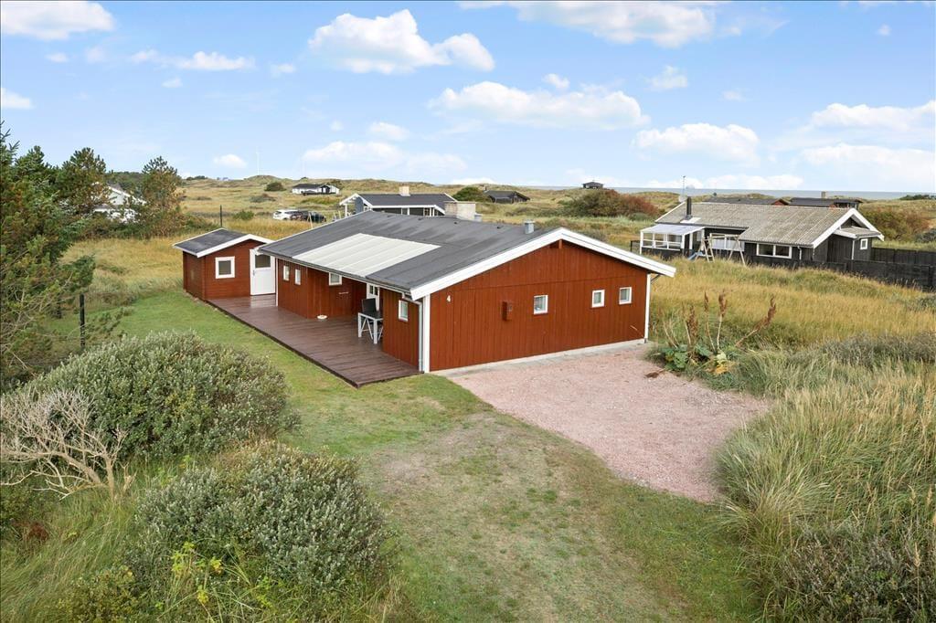 Die Außenbereiche des Ferienhauses sind ebenso einladend wie das Innere. Die große Terrasse lädt zu langen Tagen unter freiem Himmel ein, wo du deinen Morgenkaffee genießen, das Abendessen grillen oder einfach in einem Liegestuhl die Sonne auf deinem Gesicht spüren kannst. Das Haus liegt auf einem naturschönen Grundstück mit viel Platz für freie Spiele und Aktivitäten, während die umliegenden Bäume eine friedliche und private Atmosphäre schaffen. Die Natur ist immer in der Nähe, und ein kurzer Spaziergang führt dich direkt zu den schönen Dünen und dem breiten Sandstrand an der Nordsee.
