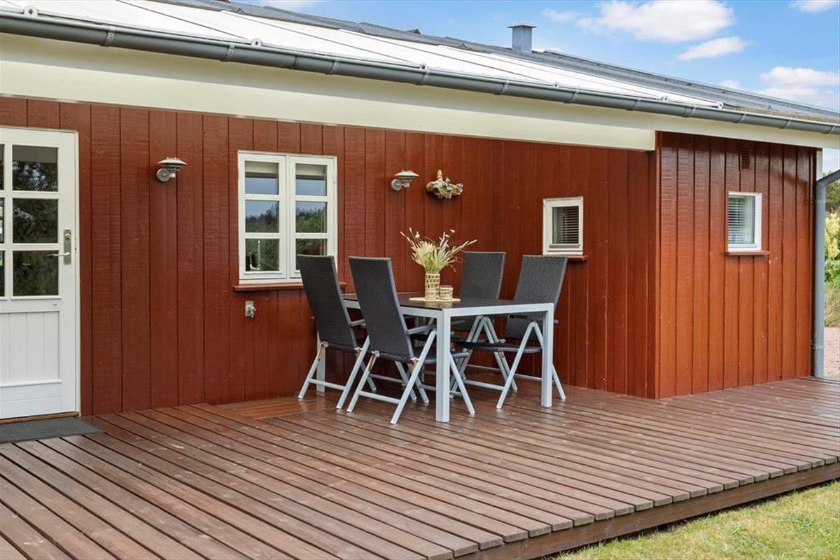 Innen wirst du von einem hellen und luftigen Ferienhaus empfangen, dessen Räume mit Fokus auf Gemütlichkeit und Funktionalität gestaltet sind. Das geräumige Wohnzimmer verfügt über große Fensterpartien, die die Natur näher bringen und eine fantastische Verbindung zwischen Innen- und Außenleben schaffen. Der Kaminofen in der Ecke sorgt für Wärme und Stimmung an Abenden, an denen du und deine Lieben gute Gespräche oder einen Film genießen könnt. Die offene Küche ist praktisch und modern, sodass es einfach ist, eine leckere Mahlzeit zuzubereiten, während Familie und Freunde sich im Wohnzimmer entspannen. Die Schlafzimmer laden zu Entspannung und Ruhe ein, und mit einem schönen Badezimmer habt ihr alles, was ihr für einen komfortablen Urlaub braucht.