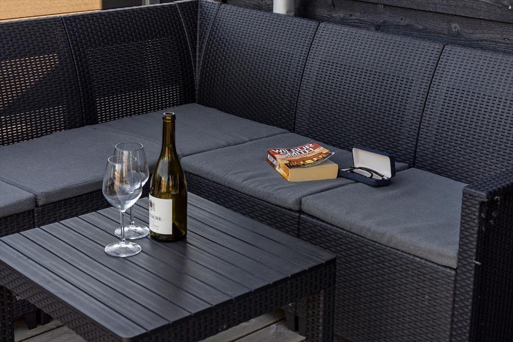 Draußen breitet sich der grüne Rasen aus und bildet ein natürliches Spielgelände, auf dem die Kinder frei herumlaufen, Ball spielen oder einfach zwischen Gras und Büschen auf Entdeckungsreise gehen können. Das große Naturgrundstück ist reich an Tierleben, und es ist keine Seltenheit, ein Reh zu erspähen oder den morgendlichen Vogelgesang zu hören, während ihr den Kaffee auf der Terrasse genießt. Hier draußen können die Tage mit Grillabenden, Sonnenbaden oder gemütlichen Nachmittagen im Schatten mit einem guten Buch vergehen. Vielleicht wechseln die Kinder ständig zwischen Gartenspielen und dem Aktivitätsraum hin und her. Es ist Urlaub in ganz eigenem Tempo, mit Raum für Nähe und Genuss gleichermaßen.