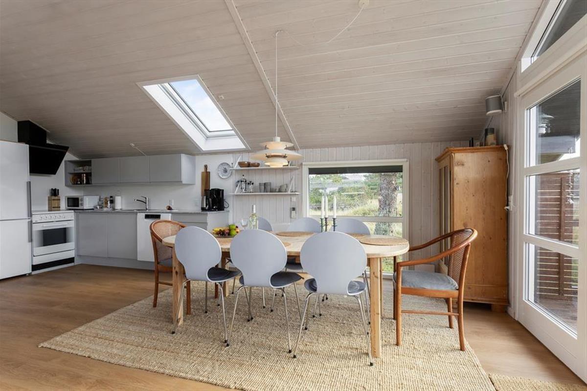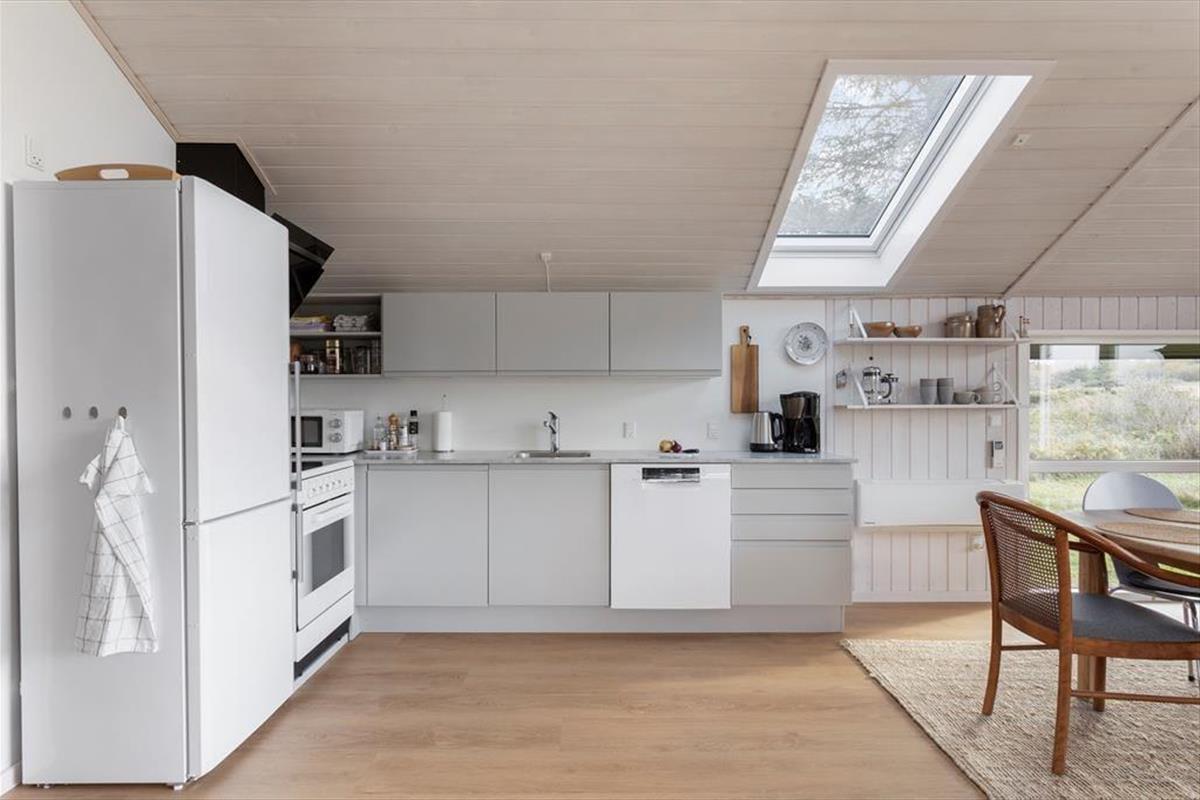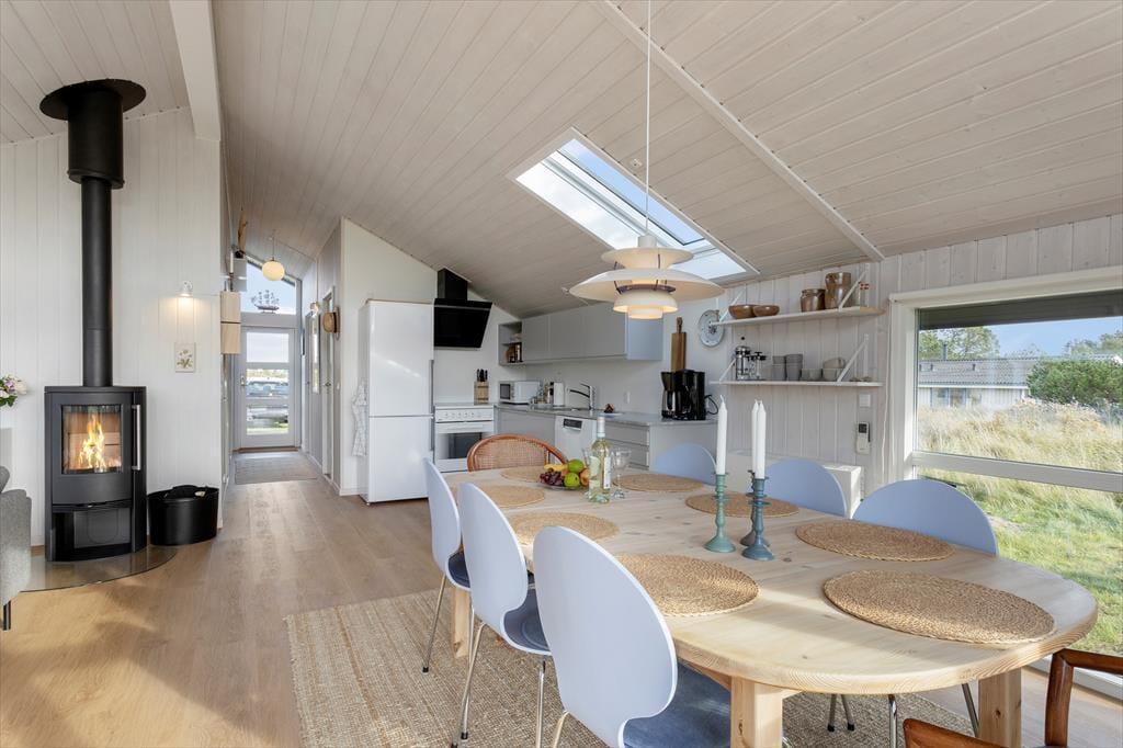 Dit sfeervolle vakantiehuis in Kjul Strand, Noord-Jutland, biedt een comfortabele verblijfplaats voor maximaal vier personen. Het huis beschikt over een gezellige houtkachel, elektrische verwarming en een warmtepomp met koeling, waardoor het zowel in de winter als zomer aangenaam is.