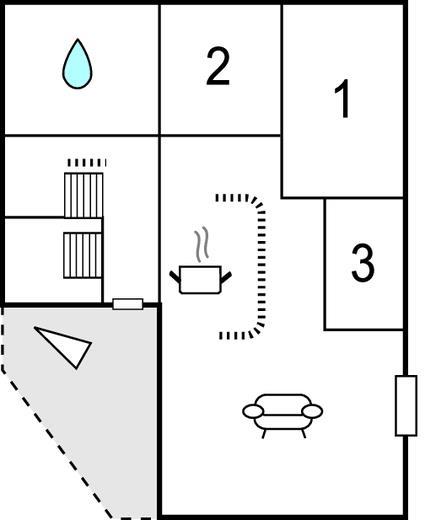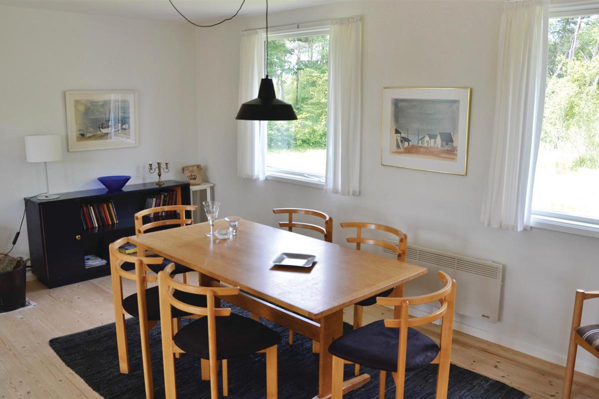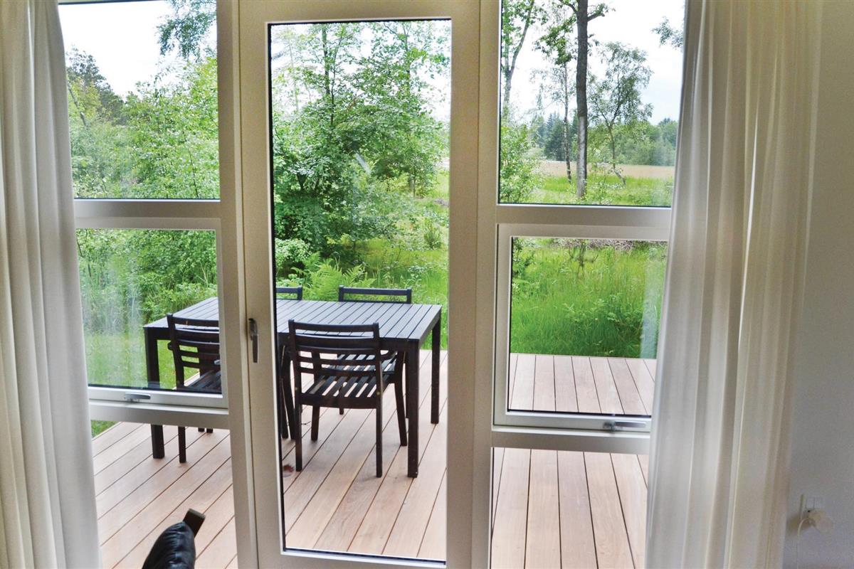 In Kjul vindt u dit mooie vakantiehuis op een groot, mooi, ongestoord natuurperceel. Vanaf de ingang van het huis gaat u enkele treden af naar de ruime badkamer. Als u naar de andere kant gaat, komt u in de grote keuken-woonkamer met toegang tot de drie slaapkamers. De keuken-woonkamerruimte is licht en nodigt uit tot gezellige momenten in goed gezelschap. Vanuit de woonkamer heeft u toegang tot het goede terras.