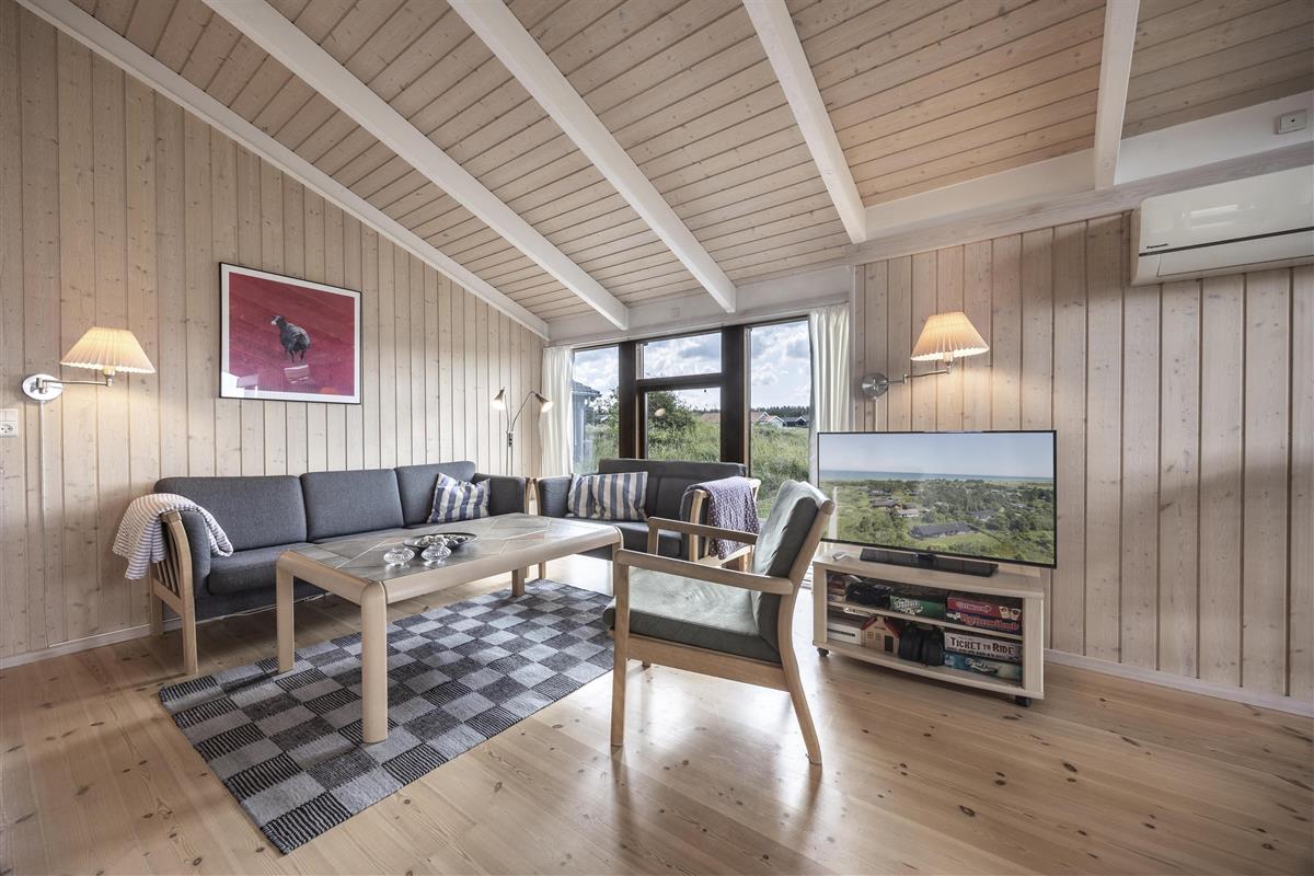 Welcome to an inviting and well-maintained holiday home on the west coast of Denmark, ideal for families or groups of friends seeking peace and quality time close to nature. The house accommodates up to 8 guests and is thoughtfully furnished with a focus on comfort and functionality. In the living room, a wood-burning stove creates a warm and relaxing atmosphere – perfect for cooler evenings. The open-plan living area features comfortable seating and is connected to a fully equipped kitchen with everything you need for a convenient and enjoyable stay. Large windows let in the beautiful North Jutland light and enhance the sense of being close to nature – all year round.