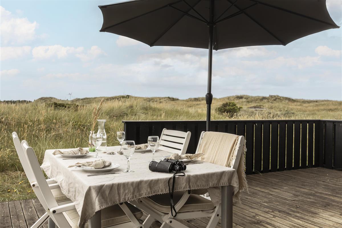 The outdoor facilities are just as appealing as the interior. The holiday home features lovely terraces on both sides of the house, ensuring you can always find either sunshine or shelter – or simply enjoy a quiet moment with a coffee and a good book. The covered terrace offers extra comfort regardless of the weather, and here you can sit in privacy with a view of the surrounding dunes. With only 125 metres to the beach, you can hear the sound of the waves and take evening walks to the top of the dunes to witness the sun setting over the North Sea.