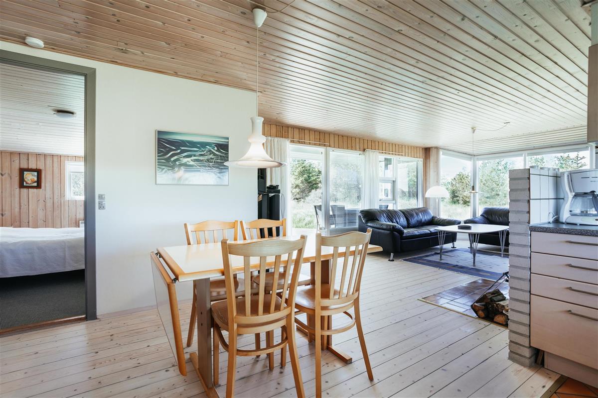 The holiday home is set on a beautiful natural plot with a direct path leading to the child-friendly sandy beach – ideal for walks and dips in the North Sea. Enjoy the fresh sea air and stunning dune landscapes. The property features several cozy corners on partially covered terraces facing east and south. Take your morning coffee outside and enjoy the sunrise, or relax on the terrace during the day in the Danish summer. The garden also has a swing set for children.