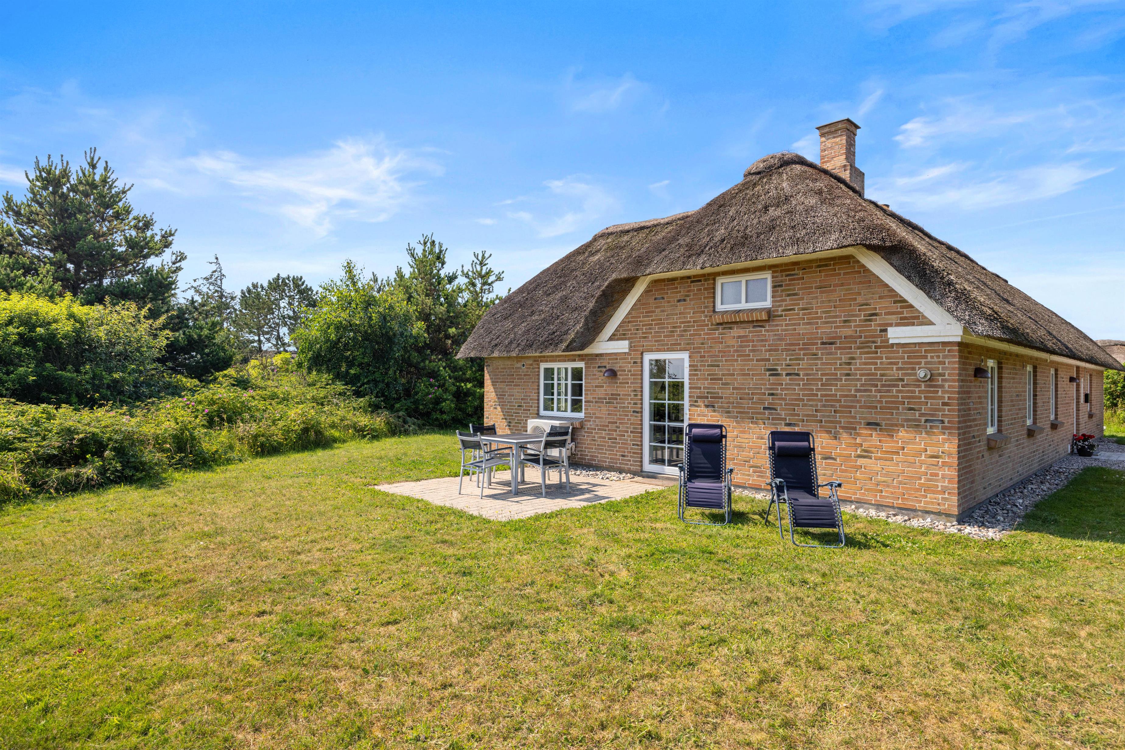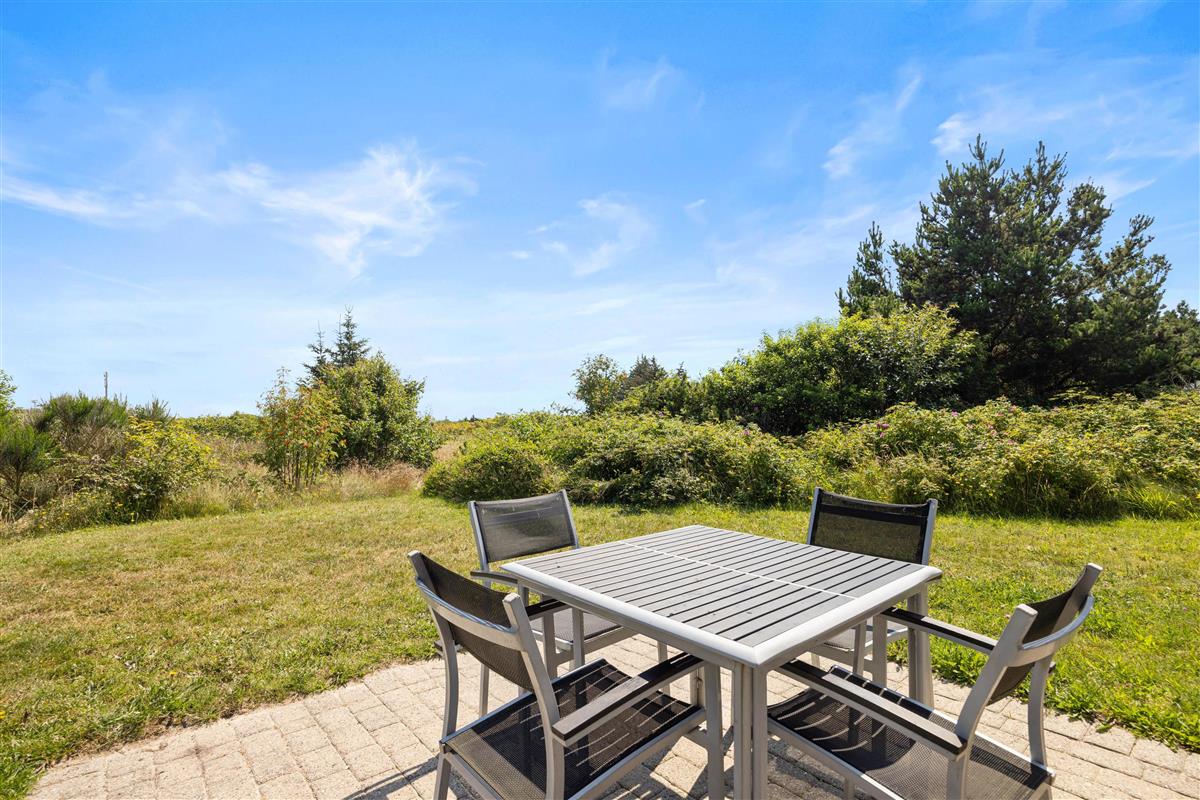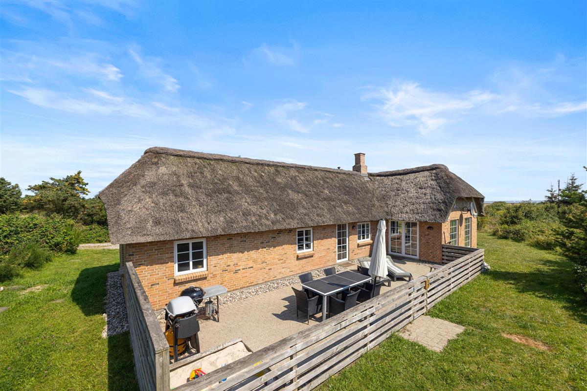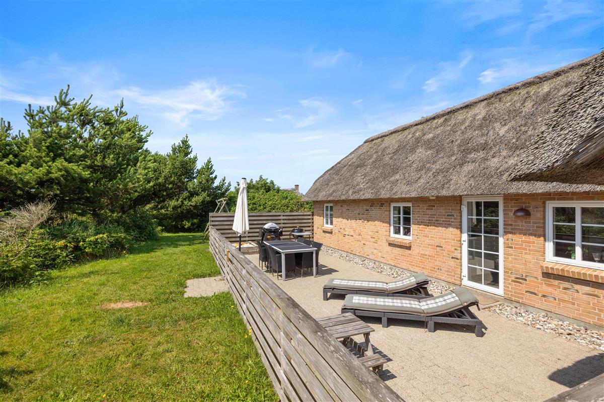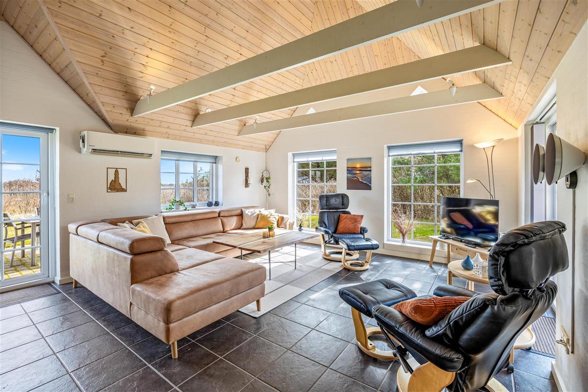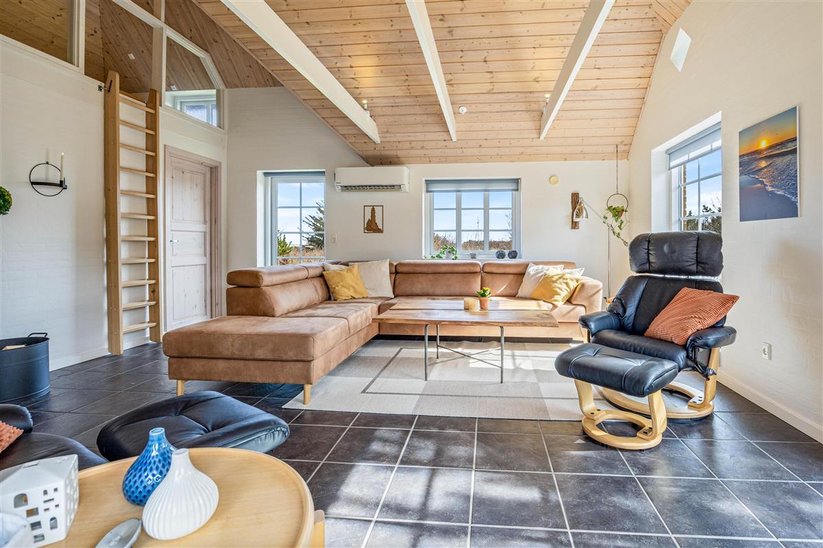 The holiday home sits on a partially sheltered natural plot in Klegod. The large, enclosed south-facing terrace is well-suited for young children. To the east, there's a smaller terrace offering spectacular views over Ringkøbing Fjord. The beach is just a 15-minute walk away - here you'll find high dunes, rolling waves and, if you're lucky, you might even discover some amber.