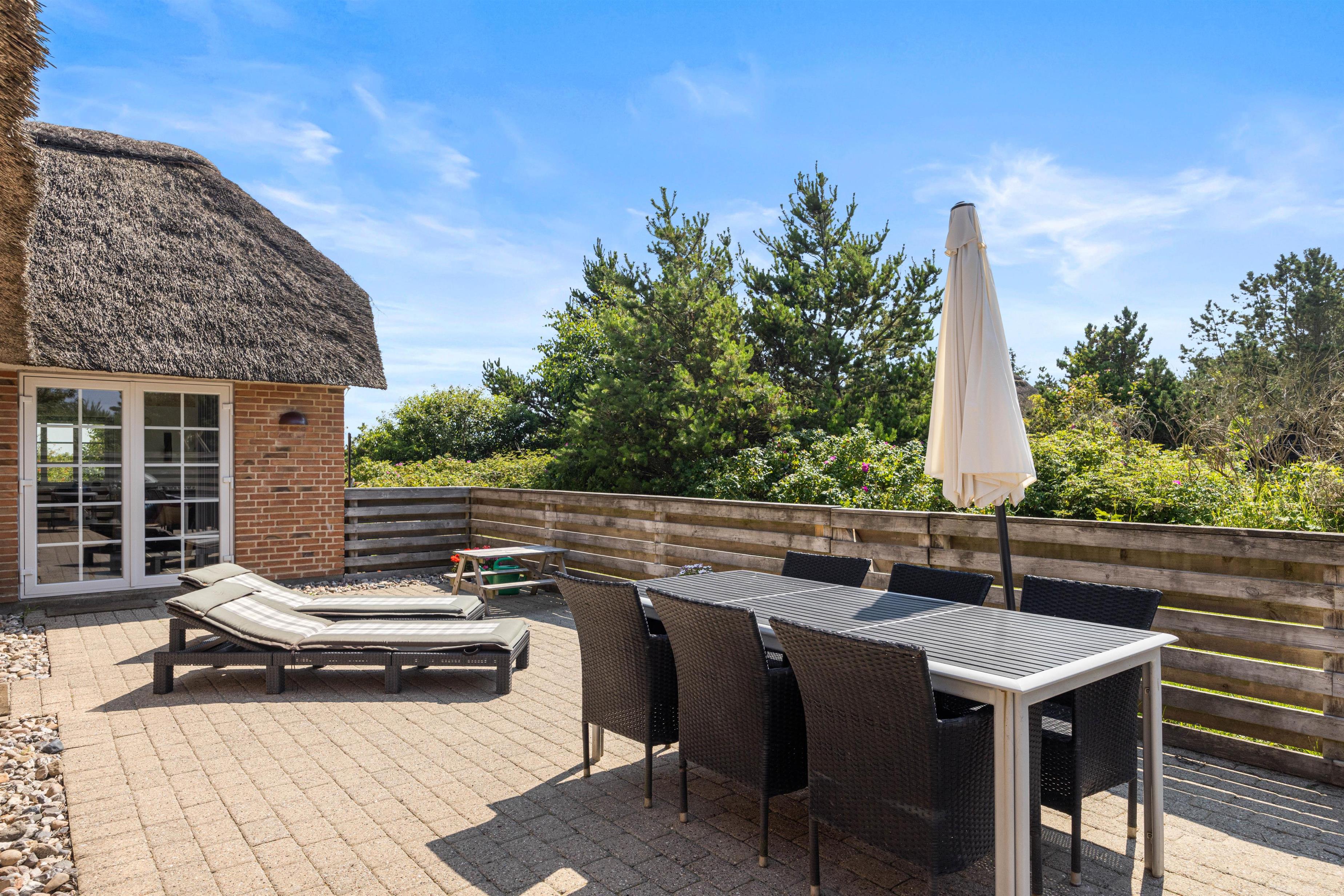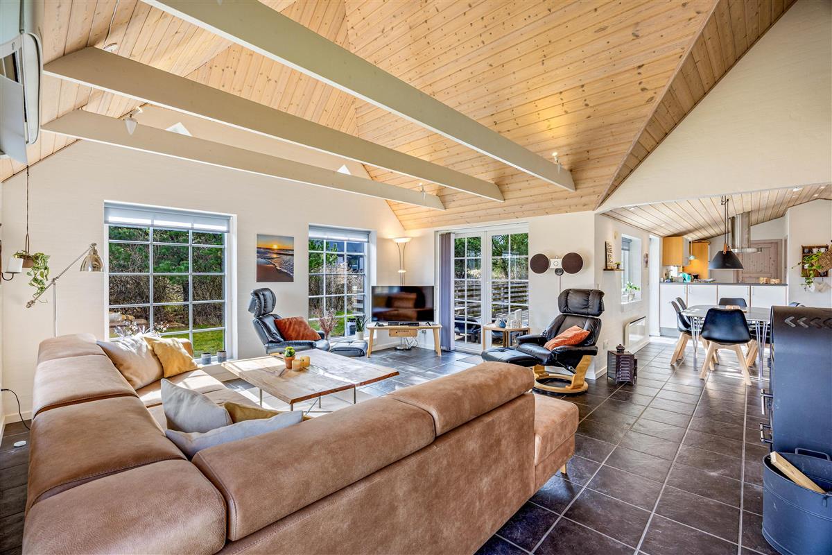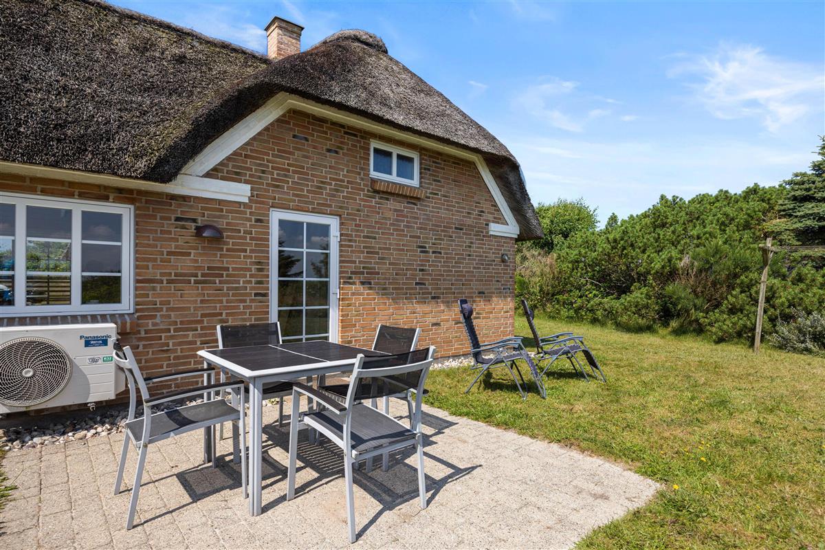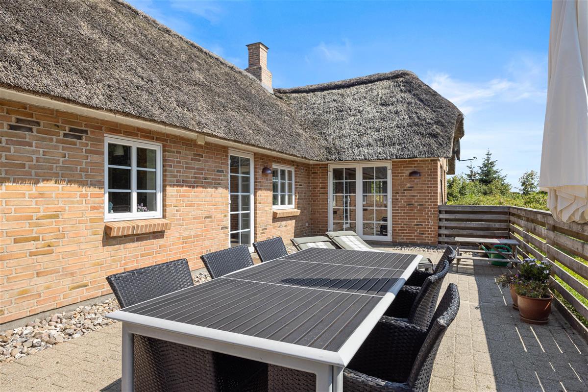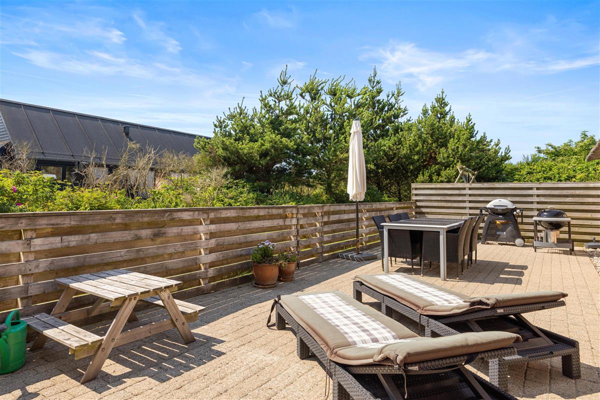 The holiday home sits on a partially sheltered natural plot in Klegod. The large, enclosed south-facing terrace is well-suited for young children. To the east, there's a smaller terrace offering spectacular views over Ringkøbing Fjord. The beach is just a 15-minute walk away - here you'll find high dunes, rolling waves and, if you're lucky, you might even discover some amber.