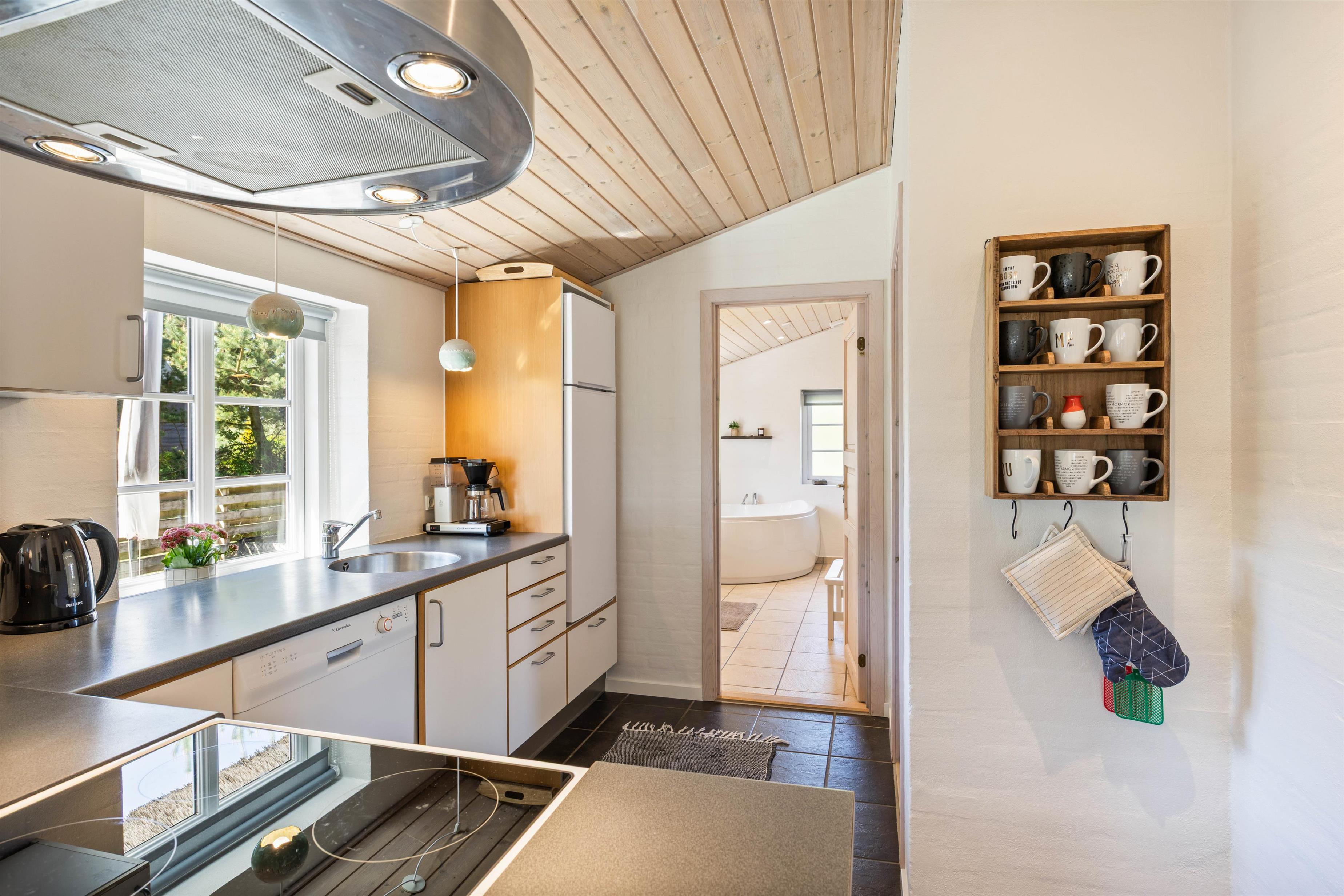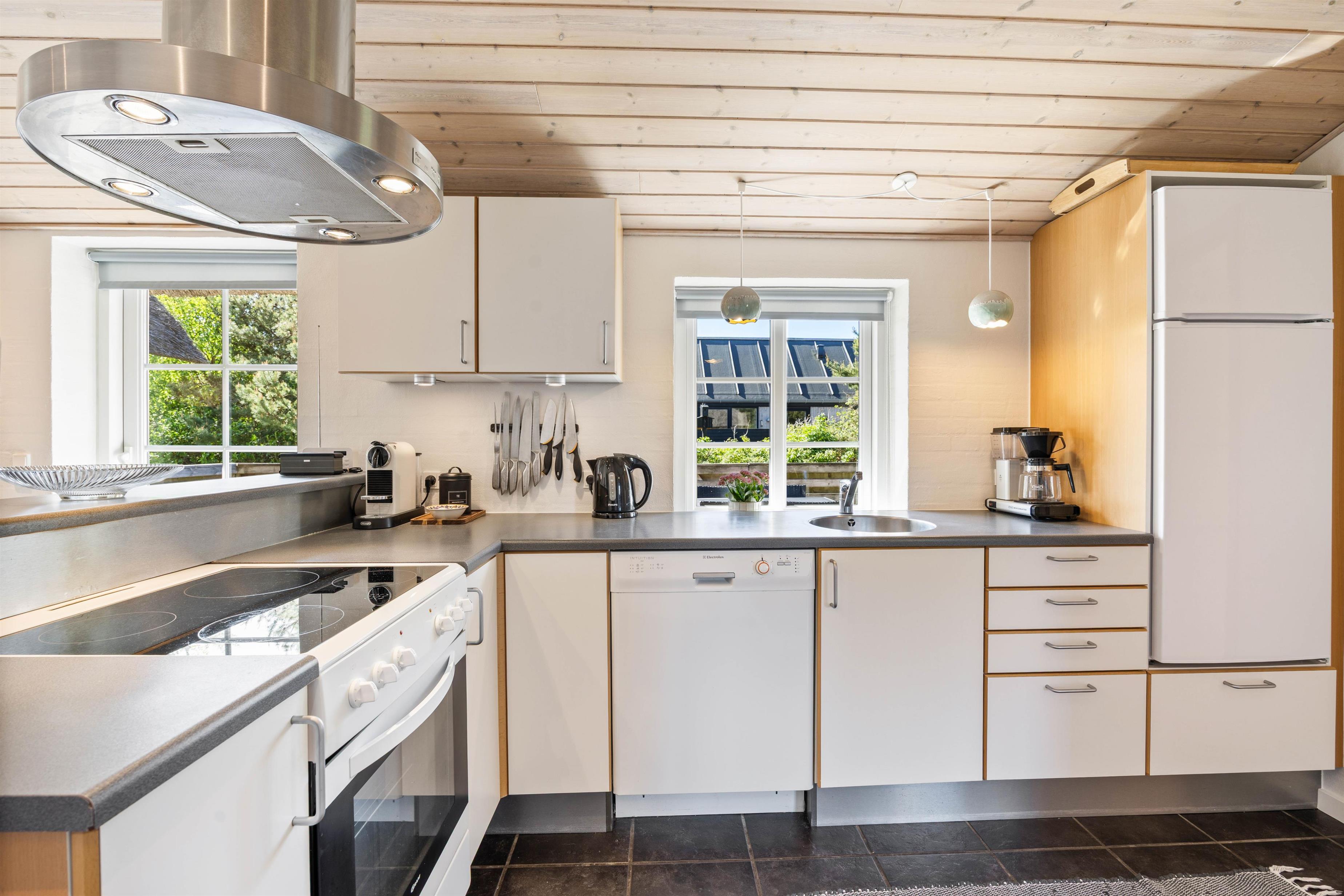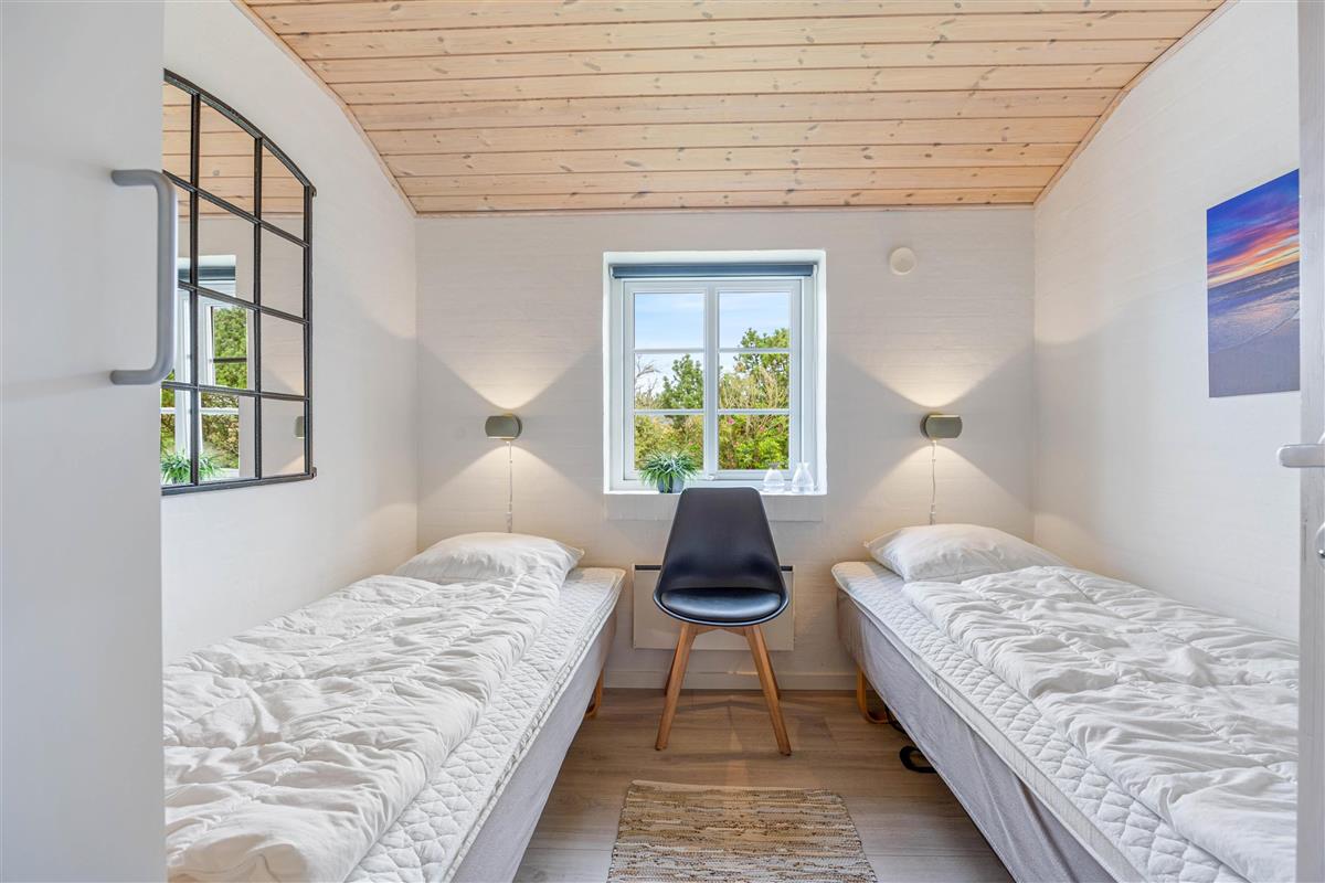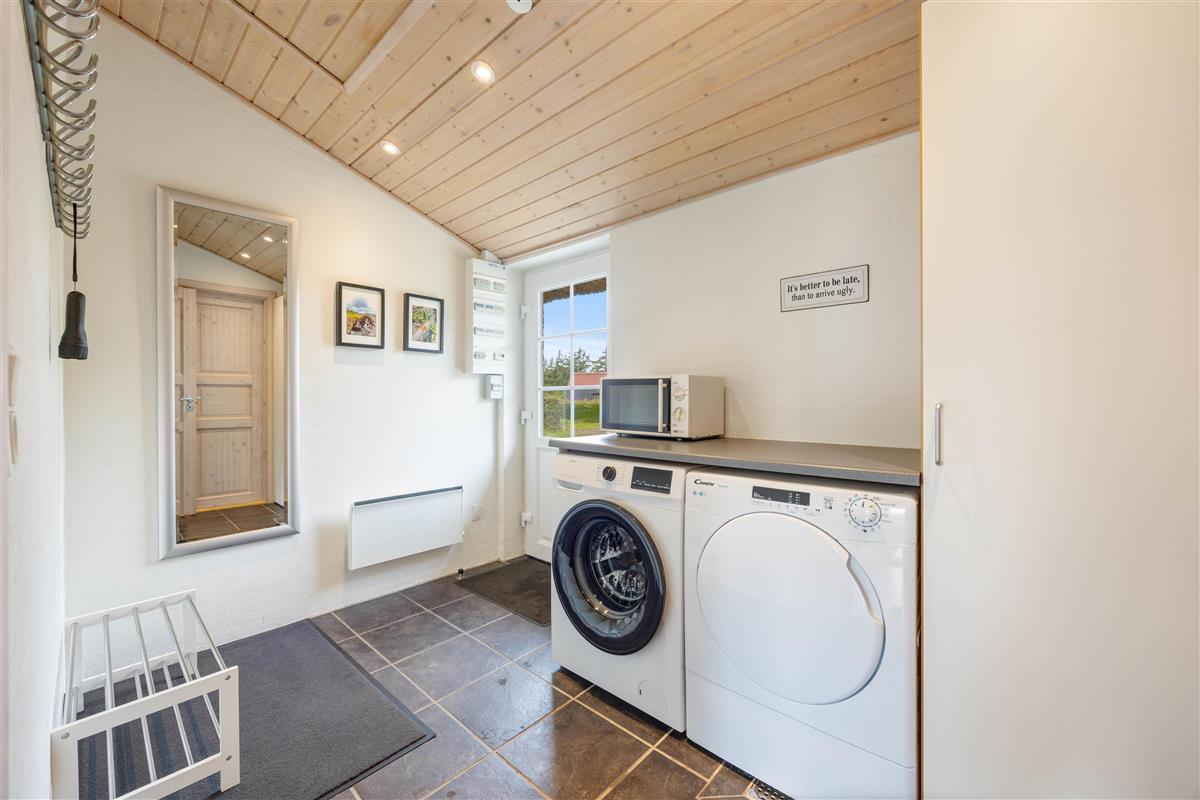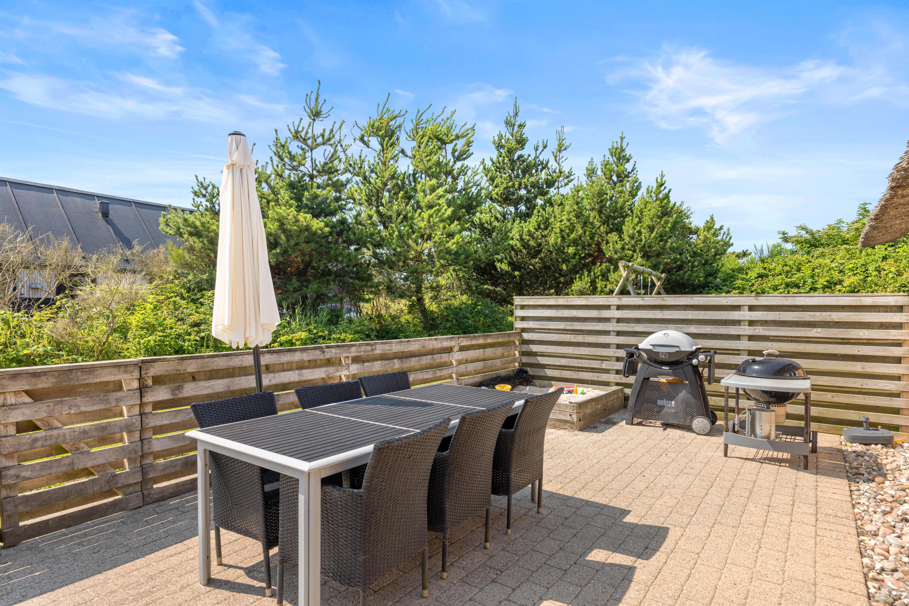 The holiday home sits on a partially sheltered natural plot in Klegod. The large, enclosed south-facing terrace is well-suited for young children. To the east, there's a smaller terrace offering spectacular views over Ringkøbing Fjord. The beach is just a 15-minute walk away - here you'll find high dunes, rolling waves and, if you're lucky, you might even discover some amber.