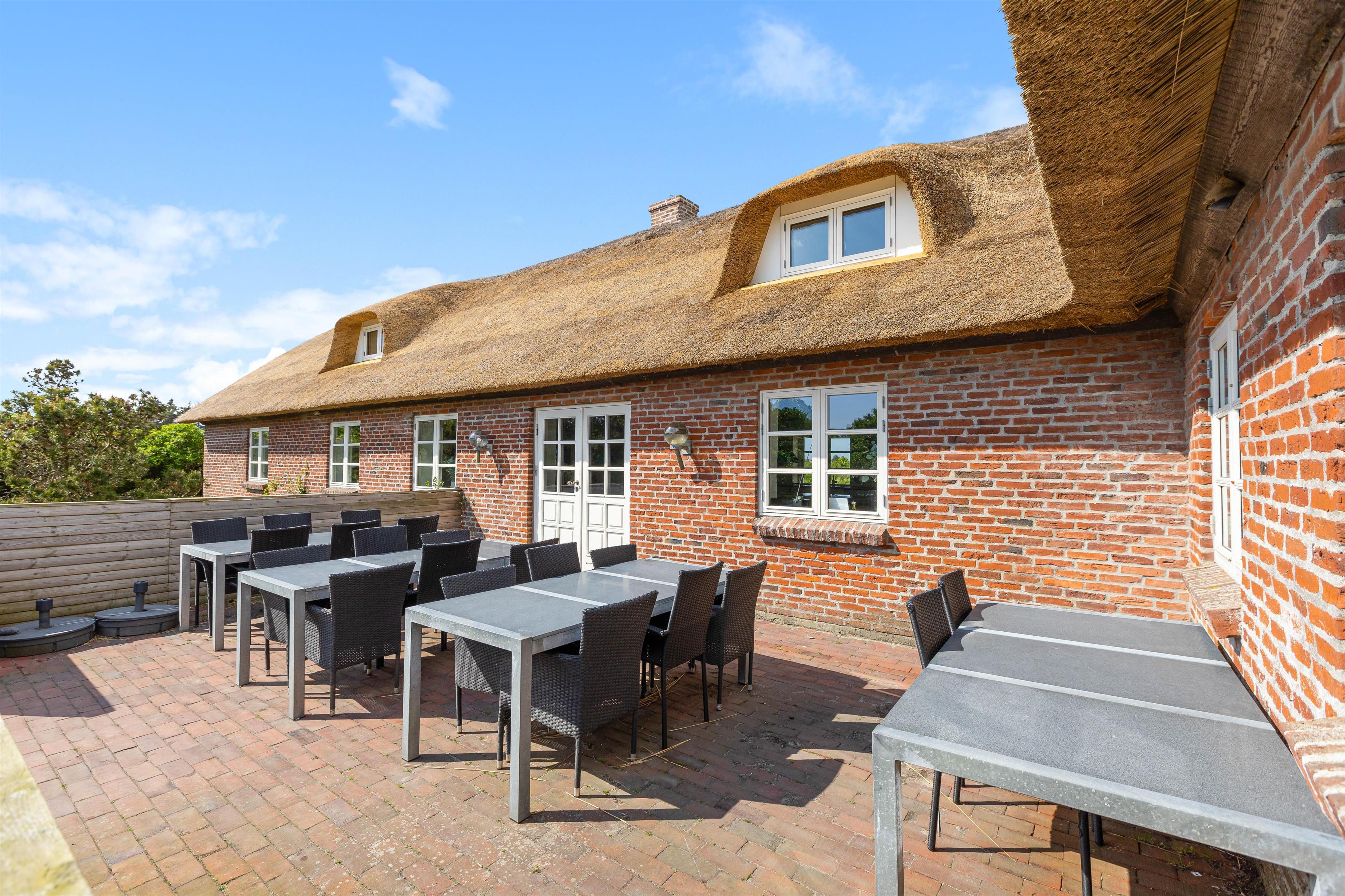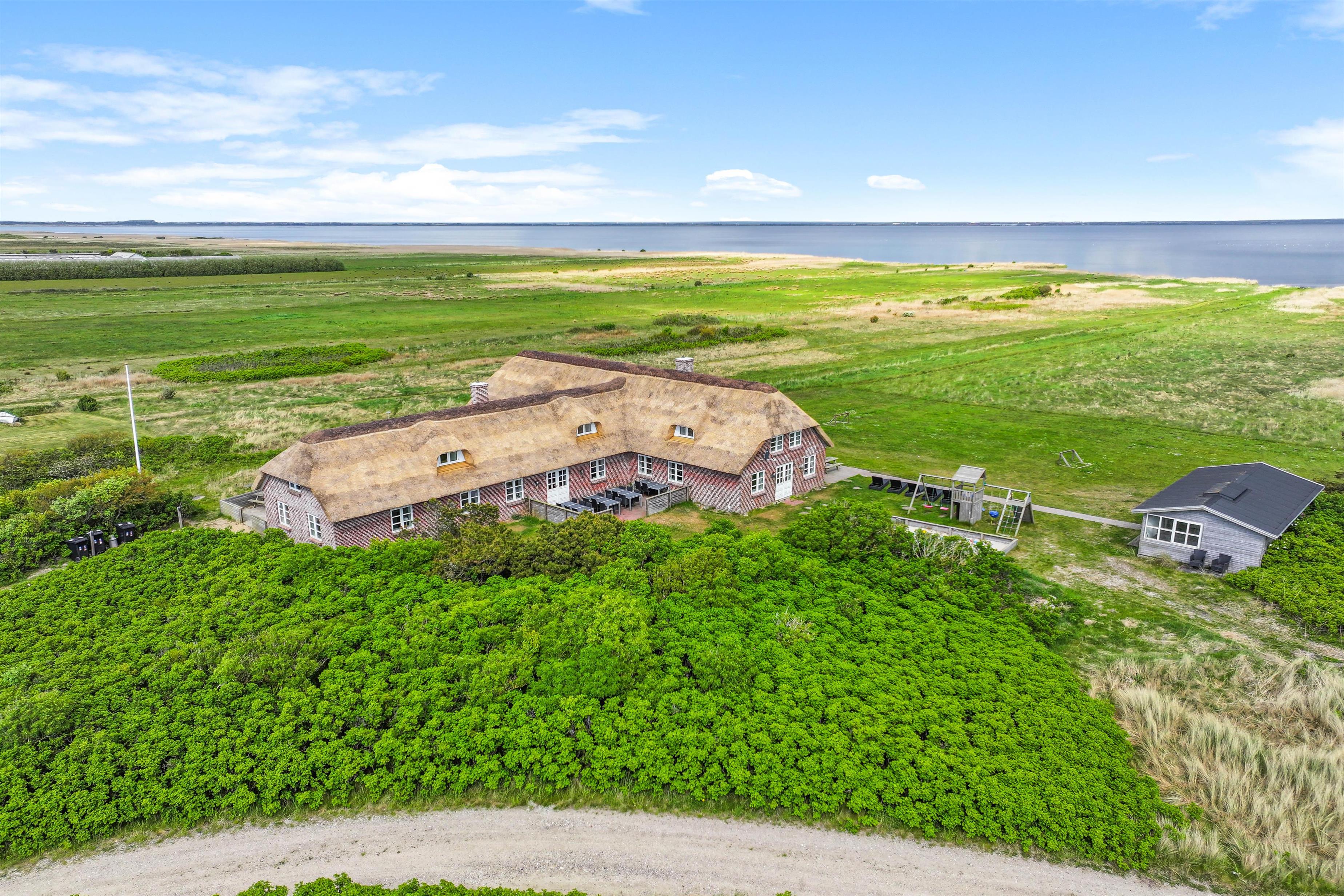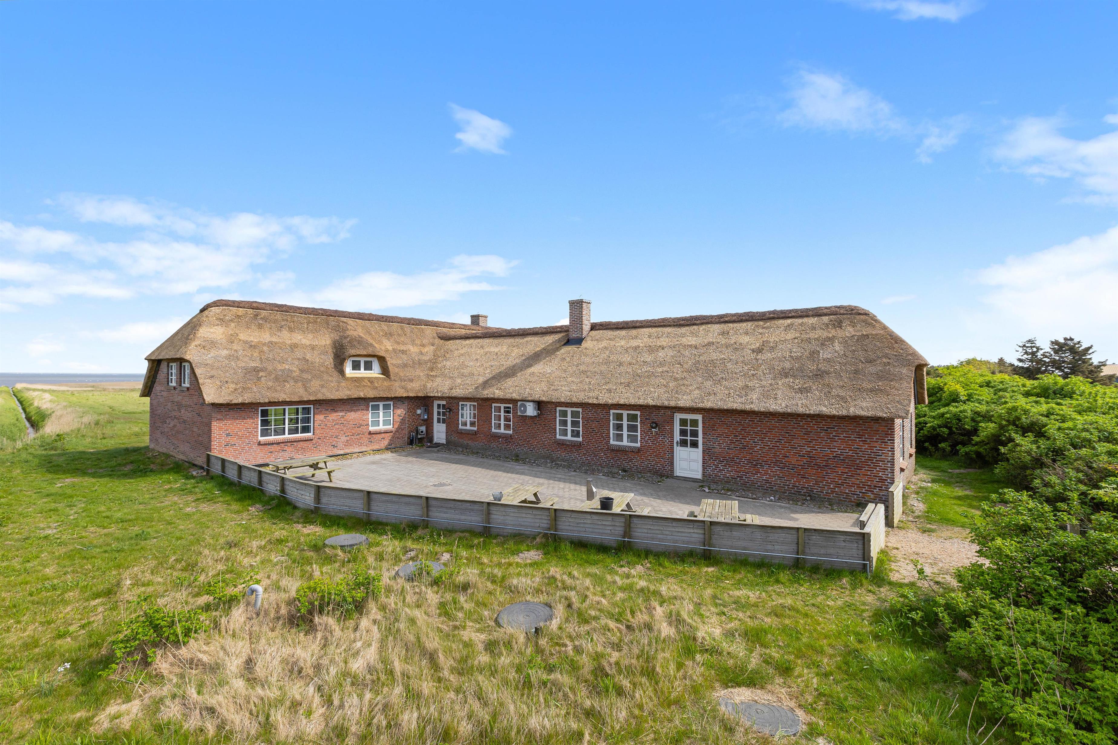 Welcome to this impressive holiday home in Klegod, located at Holmsland Klitvej 74A. This historic dune courtyard holiday home offers an unforgettable holiday experience. Combining rustic charm with modern amenities, it's perfectly positioned overlooking the Ringkøbing Fjord, allowing you to enjoy breathtaking sunrise views. Additional features include an outdoor sauna, wood-fired hot tub, swimming pool, whirlpool, and extensive play facilities for children. There's also an electric car charging point. The holiday home accommodates up to 28 people and three dogs.