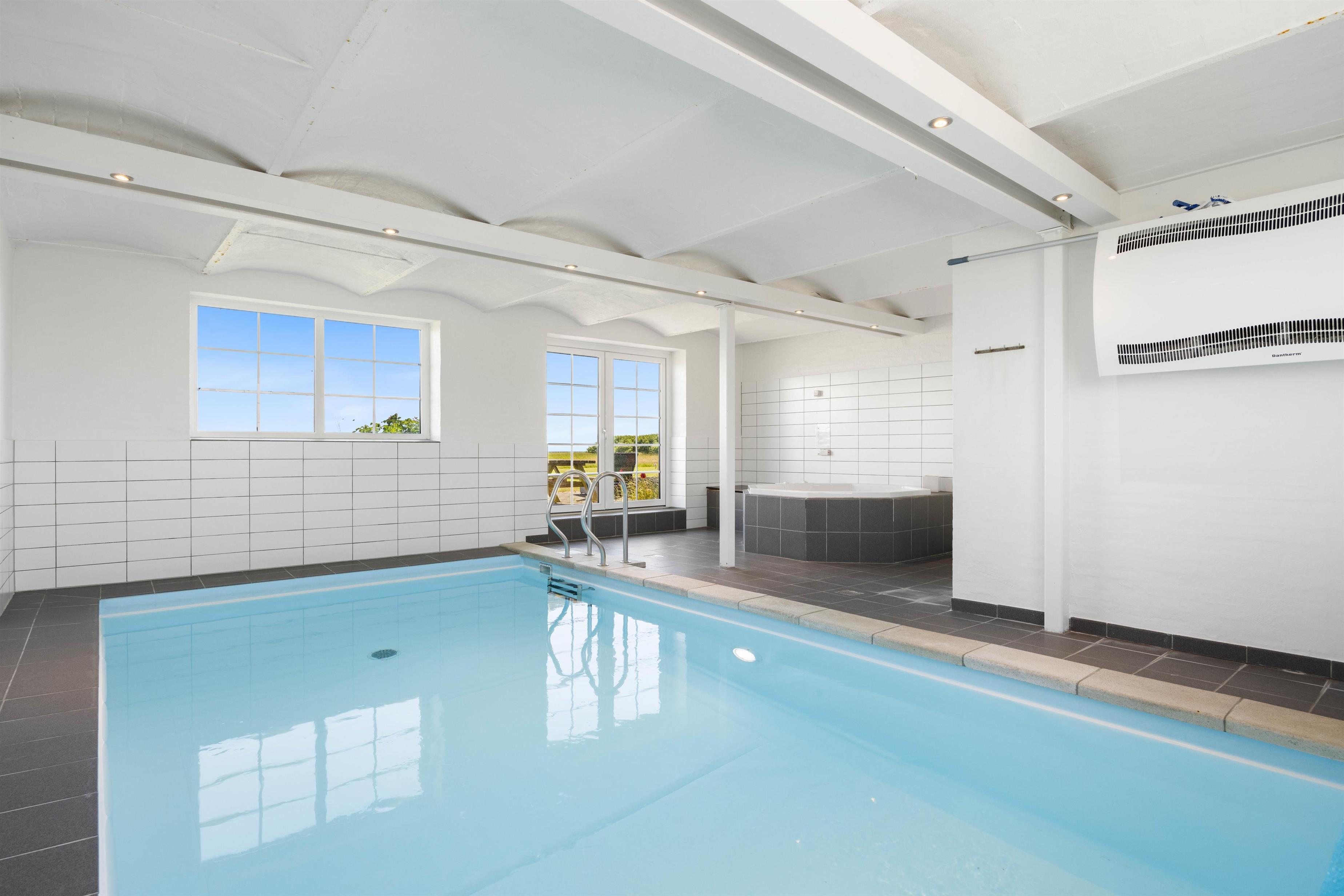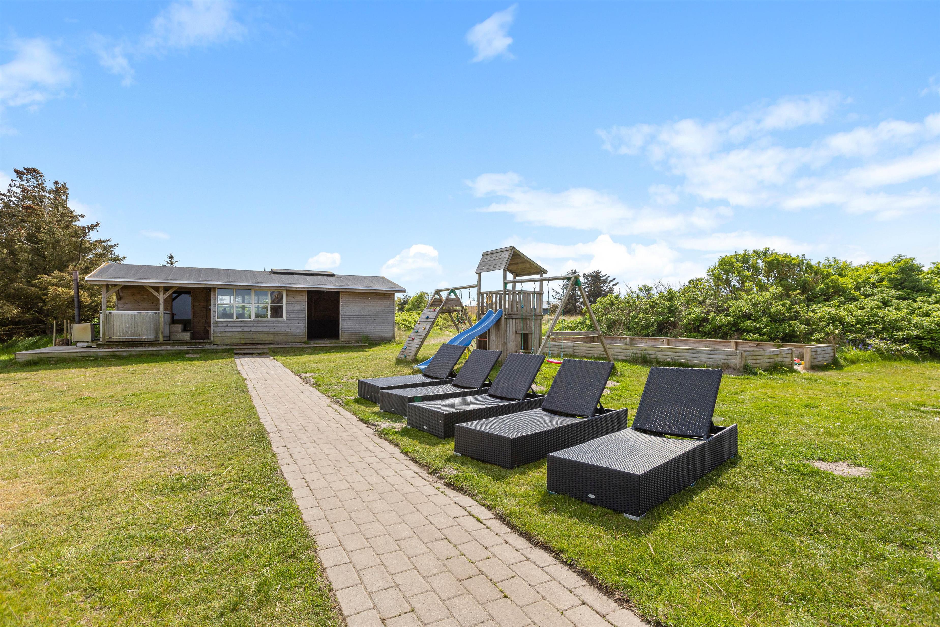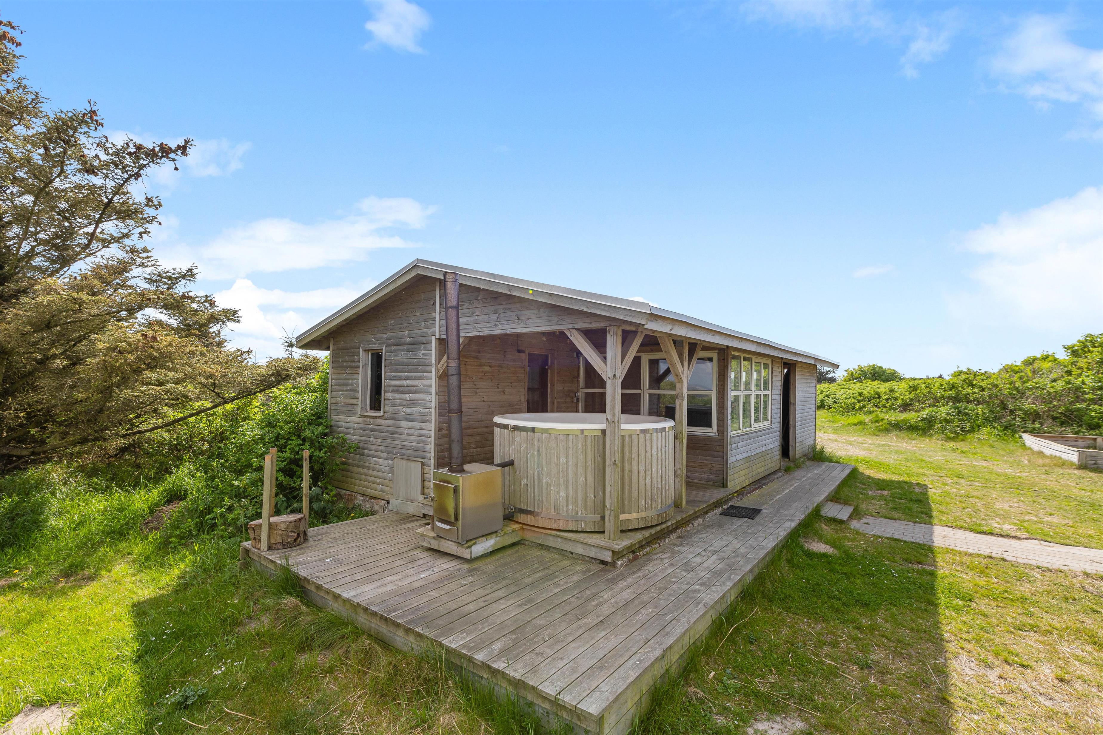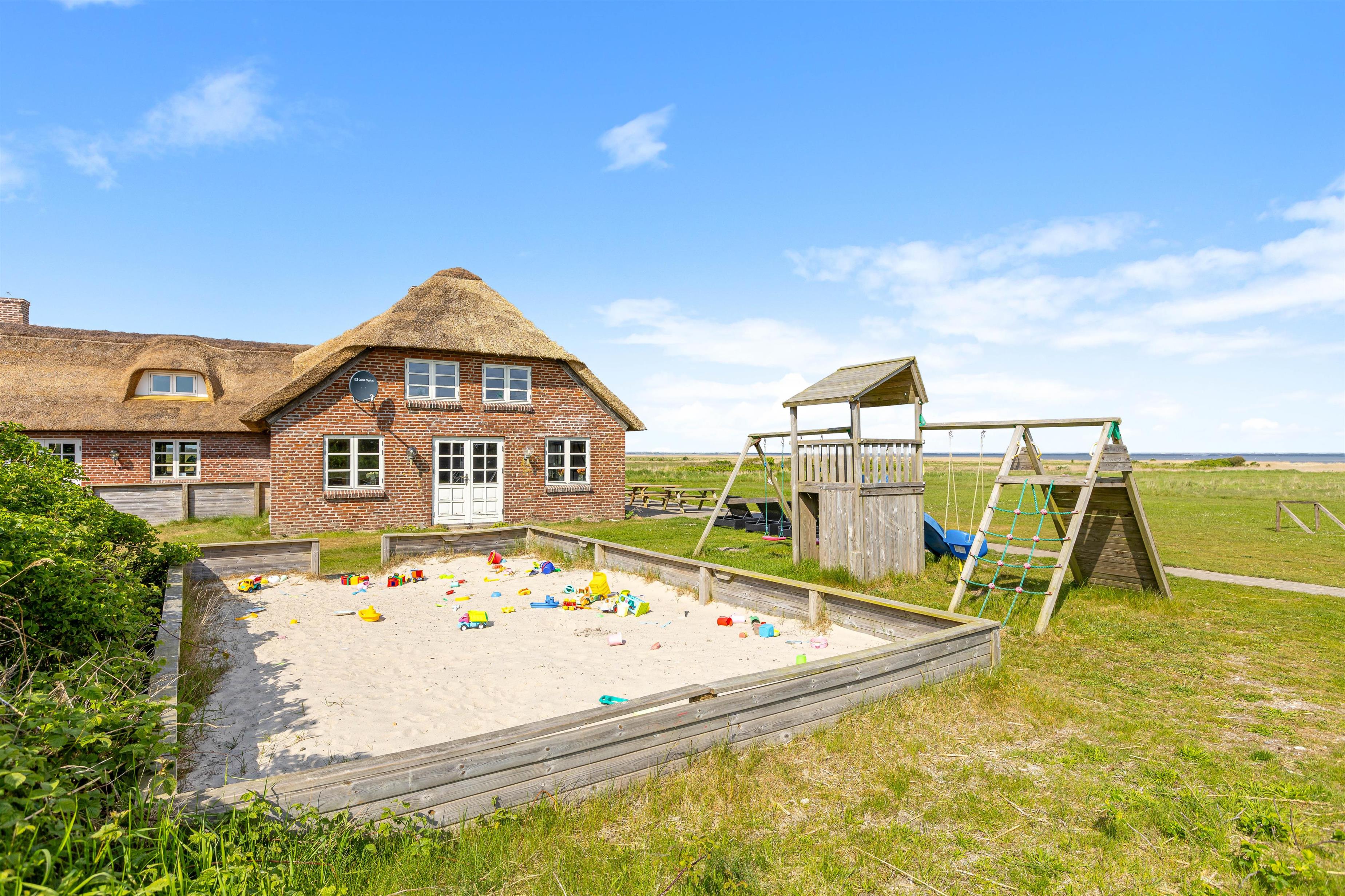 Welcome to this impressive holiday home in Klegod, located at Holmsland Klitvej 74A. This historic dune courtyard holiday home offers an unforgettable holiday experience. Combining rustic charm with modern amenities, it's perfectly positioned overlooking the Ringkøbing Fjord, allowing you to enjoy breathtaking sunrise views. Additional features include an outdoor sauna, wood-fired hot tub, swimming pool, whirlpool, and extensive play facilities for children. There's also an electric car charging point. The holiday home accommodates up to 28 people and three dogs.