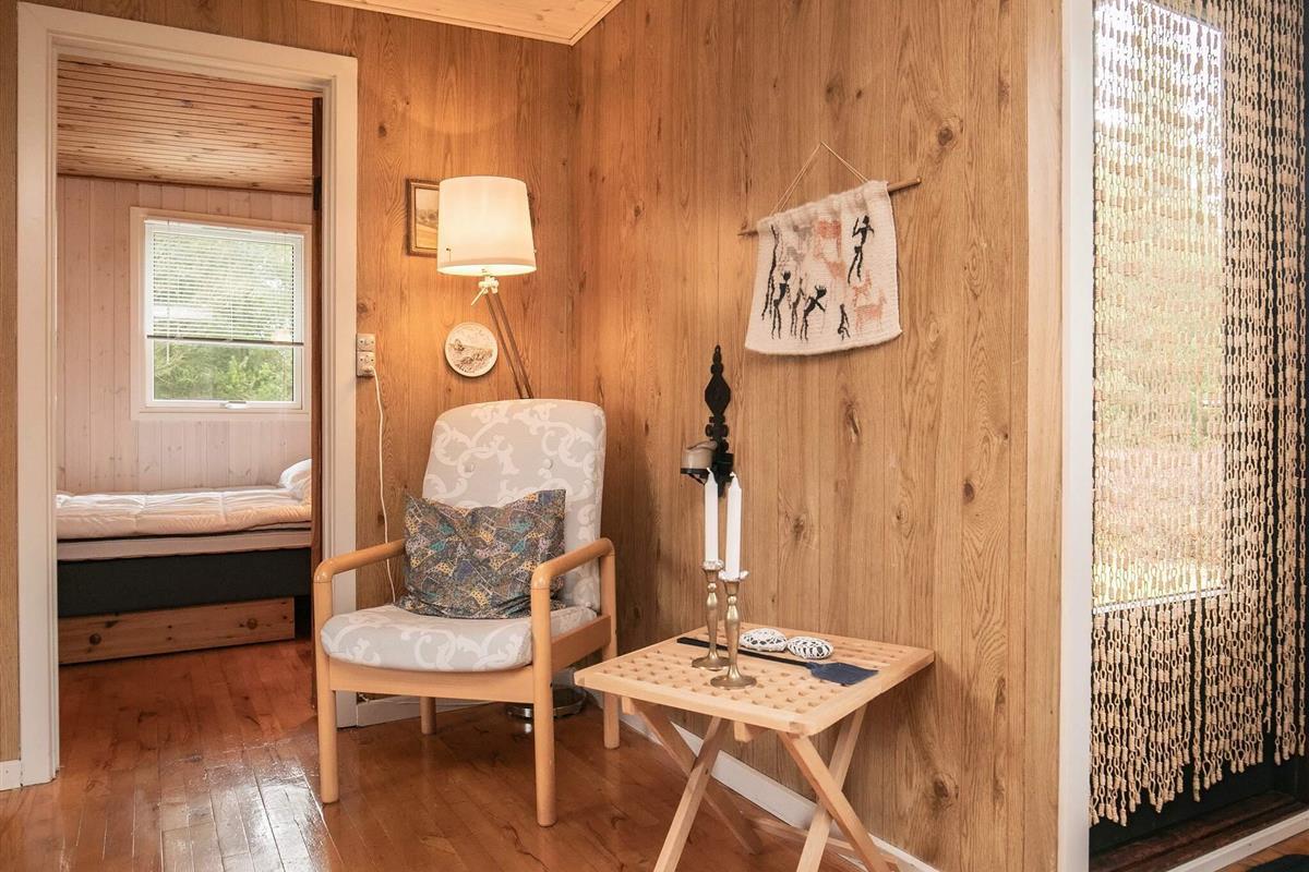 Das Ferienhaus verfügt über ein Schlafzimmer mit Doppelbett und ein Schlafzimmer mit zwei Einzelbetten. Vom Wintergarten/Wohnzimmer gelangen Sie ins Badezimmer mit Dusche. Die offene Küche führt in das Wohnzimmer mit Essbereich, das gemütlich im persönlichen Stil des Eigentümers eingerichtet ist.