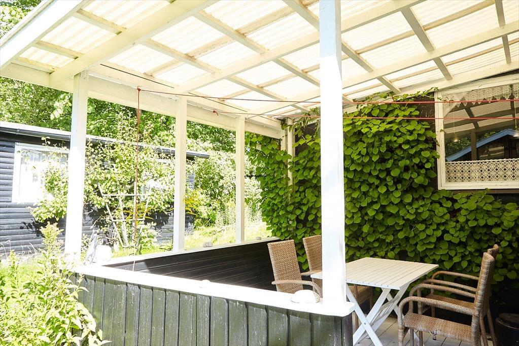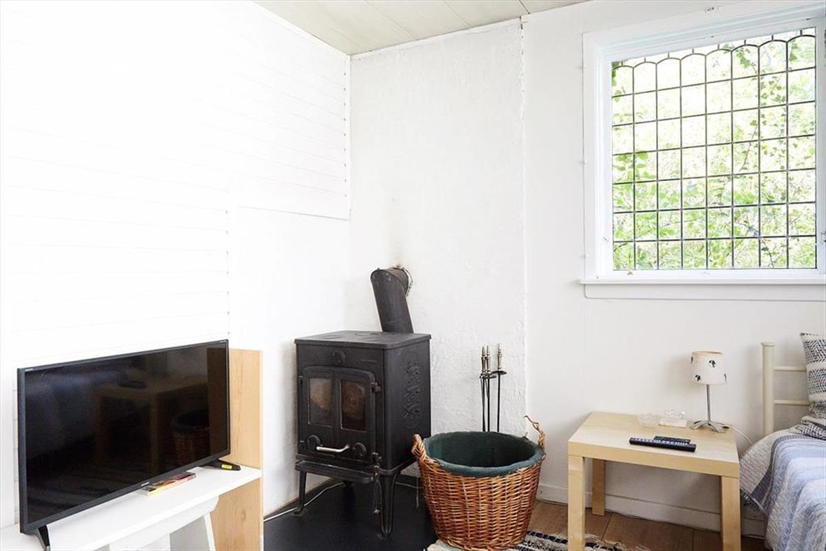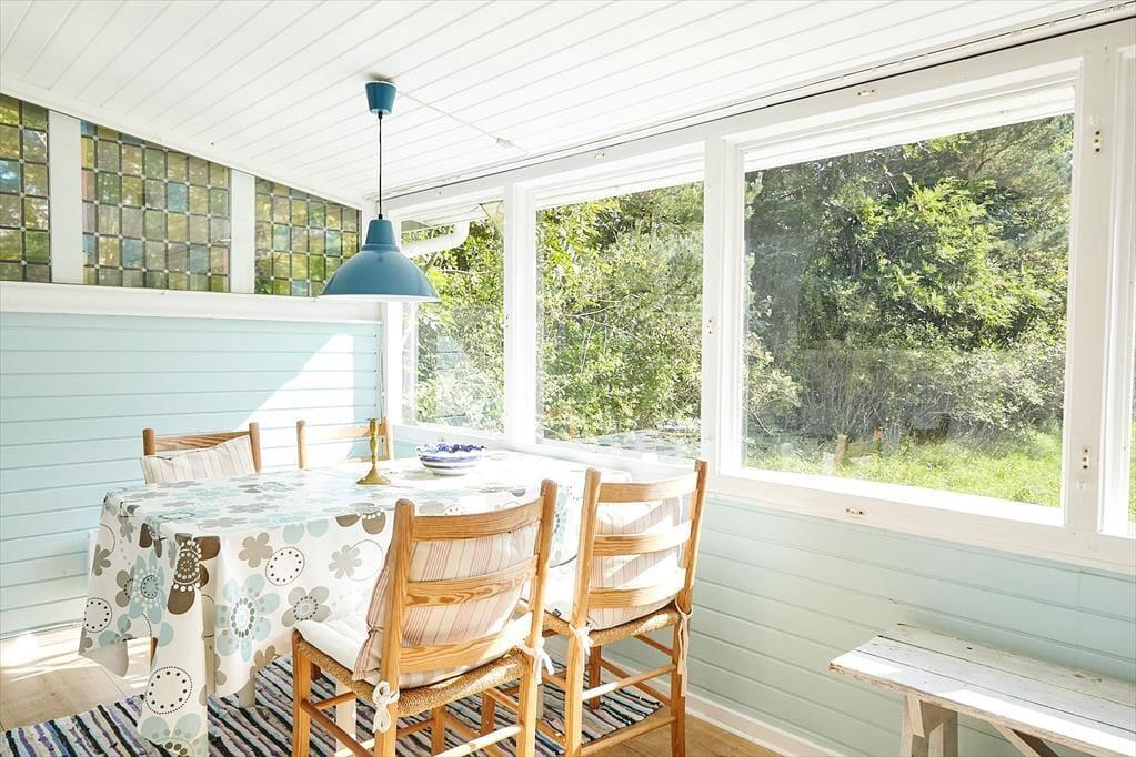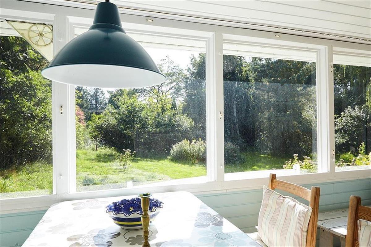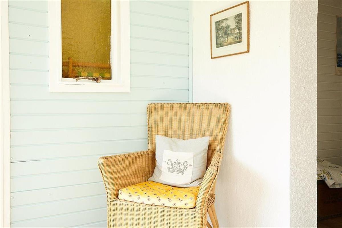 Dein gemütliches Ferienhaus verzaubert mit viel klassischem Charme. Es besticht nicht mit Größe, sondern vielmehr mit einer Vielzahl gemütlicher, authentischer Details, zu denen beispielsweise die in Blei eingefassten farbigen Glasfenster zählen. Der Wohnraum verwöhnt mit einem behaglich wärmenden Kaminofen und einem gemütlichen Bett, das tagsüber sehr schön zum Lesen dienen kann. Im Wintergarten genießt du mit deinen Lieben die Mahlzeiten am Esstisch und blickst derweil hinaus in den Garten.