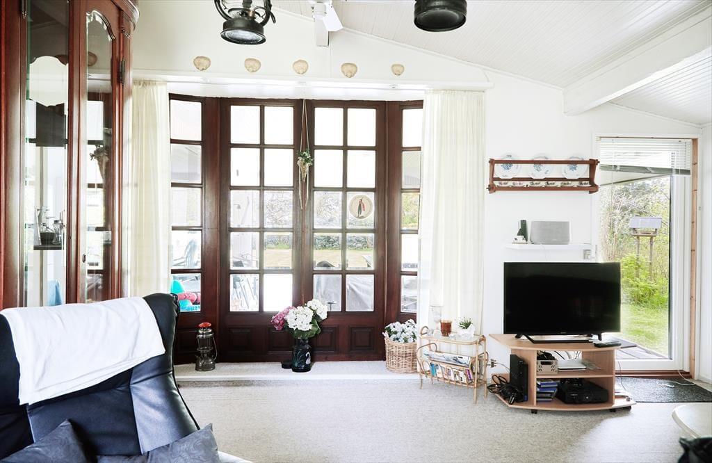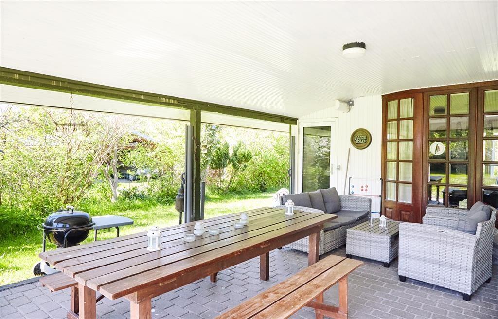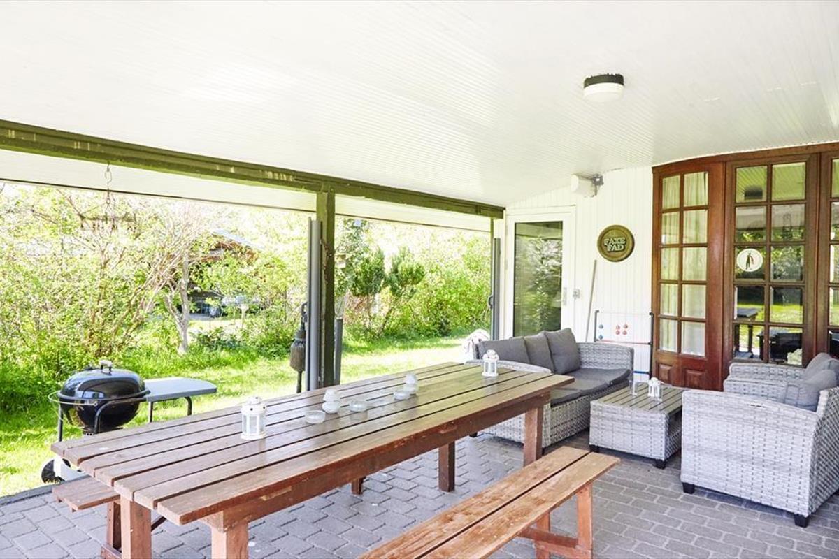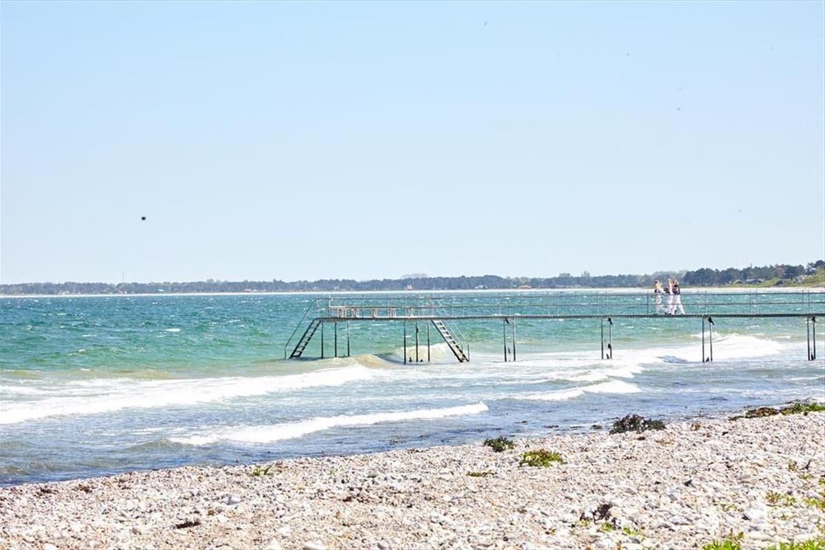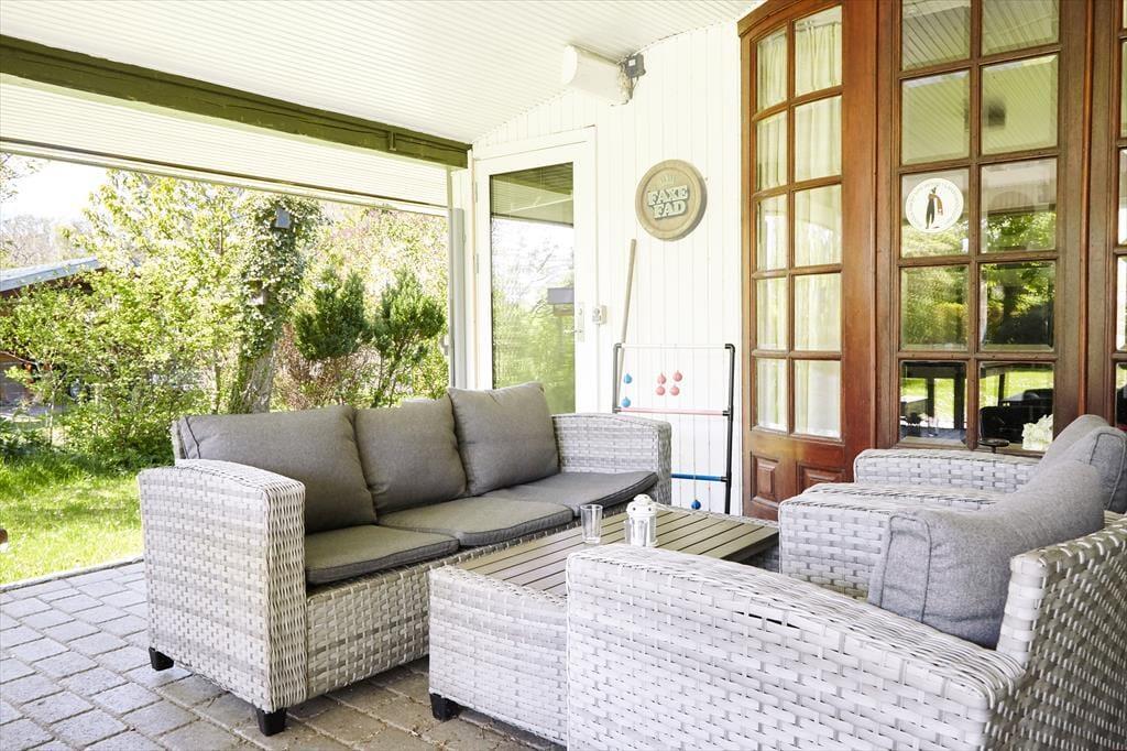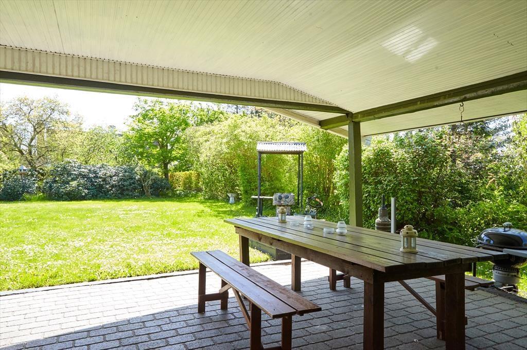 Nach einem langen Tag könnt ihr die schönen Sommerabende auf der großen überdachten Terrasse genießen. Hier gibt es genügend Platz für ein gemütliches Grillfest. Wenn der Tag ganz im Zeichen der Entspannung steht, könnt ihr auf den Sonnenliegen die Sonne genießen. Während ihr euch auf der einen Seite des Hauses im Garten sonnen könnt, findet ihr auf der anderen Seite genügend Platz für Aktivitäten mit den mitgebrachten Gartenspielen. Eine Schaukel und ein Sandkasten für die Kleinsten ist auch vorhanden. Wenn es Zeit für ein Bad ist, geht ihr einfach zum Steg am Klint Havnevej, etwa 500 m vom Ferienhaus entfernt.
