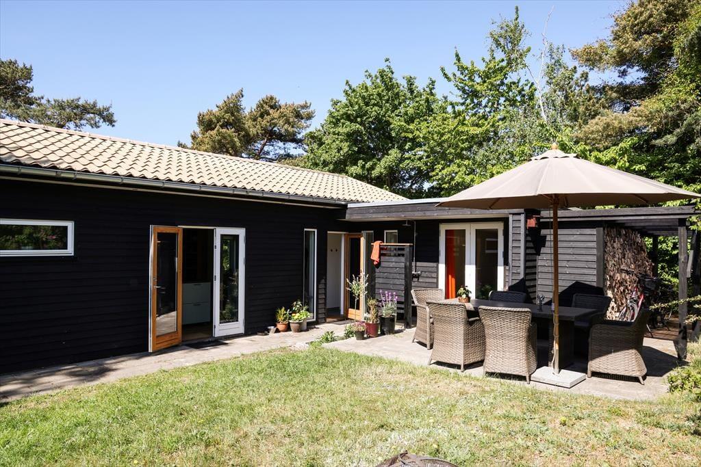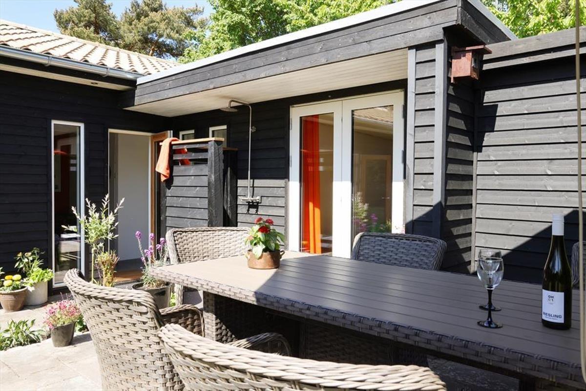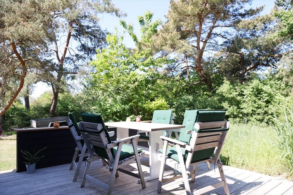 Dein Urlaubsdomizil befindet sich in einem ausgesprochen beliebten Ferienhausgebiet. Auf deinem Grundstück wirst du von morgens bis abends mit Sonne verwöhnt. Falls dir und deinen lieben der Sinn nach einer kleinen Abkühlung steht, könnt ihr jederzeit zu Fuß an den nur fünf Minuten entfernt liegenden Badestrand aufbrechen. Zurück am Haus spült euch die Außendusche den Sand und das Salz des Meeres von der Haut. Oder stelle dir vor, wie du den neuen Tag mit einem Duschbad unter freiem Himmel begrüßt - wunderschön untermalt vom fröhlichen Vogelgezwitscher. Abends, nachdem die Kinder längst ins Bett gegangen sind, kannst du den Abend sehr schön mit deinem Lieblingsgetränk auf der Terrasse ausklingen lassen und dabei den funkelnden Sternenhimmel bewundern.