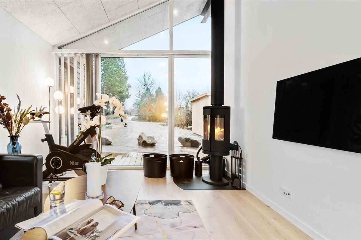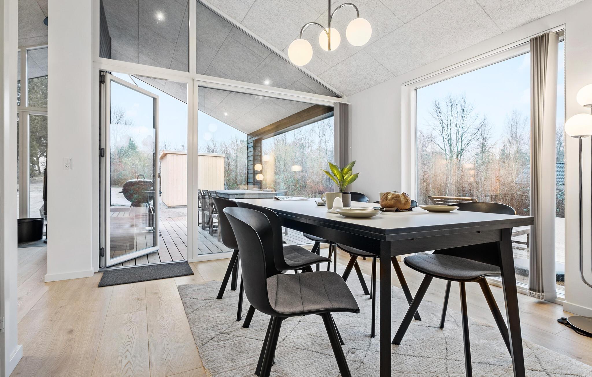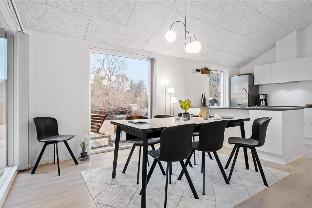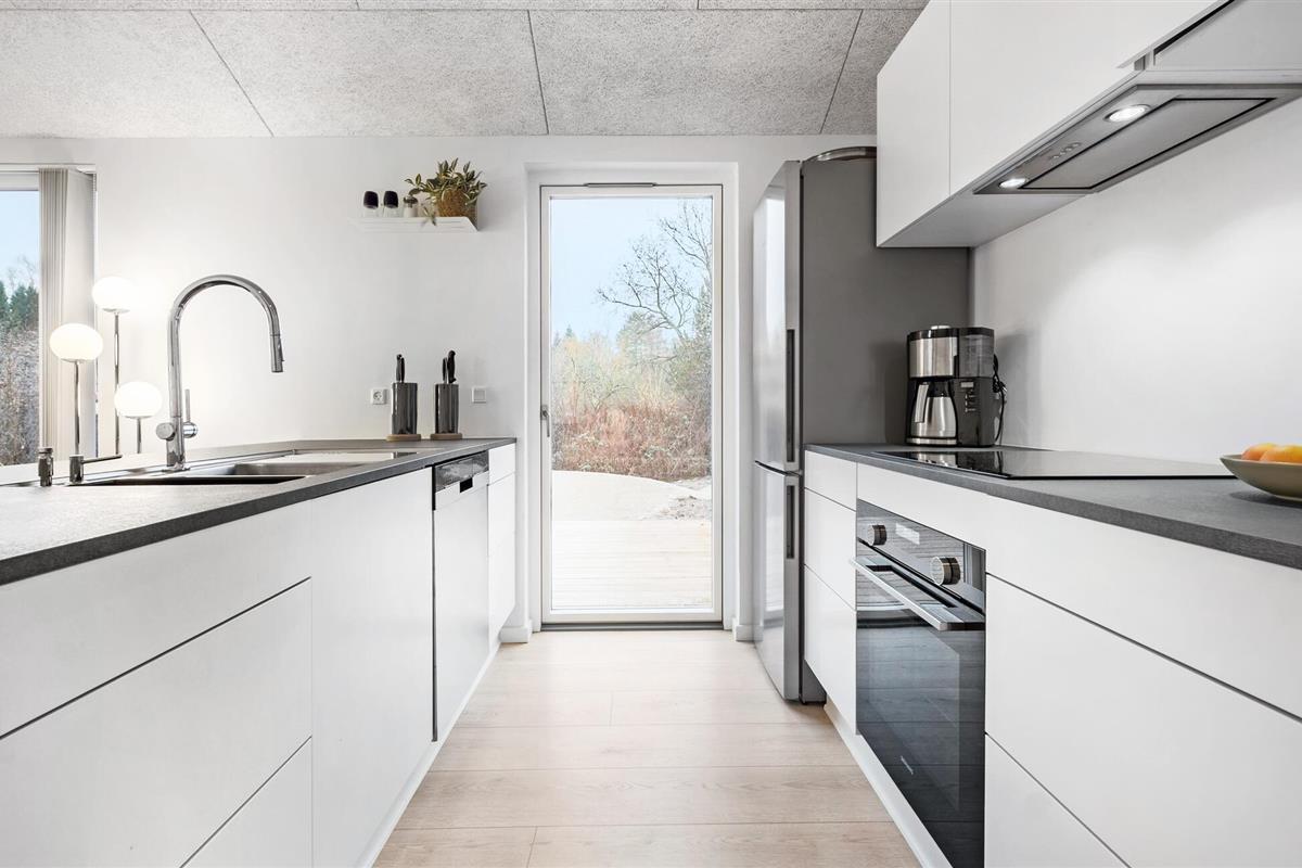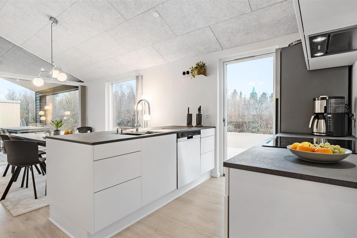 Dit stijlvolle vakantiehuis verwelkomt je niet ver van het strand van Klint. Het spel van lichte en donkere kleuren biedt je niet alleen een aantrekkelijke woonsfeer, maar ook de ideale ruimte om het leven binnenshuis te combineren met het leven in de tuin door de vele grote ramen. Geniet van de prachtige inrichting, knus 's avonds op de bank bij het warme vuur en kook voor je geliefden in de volledig uitgeruste keuken.