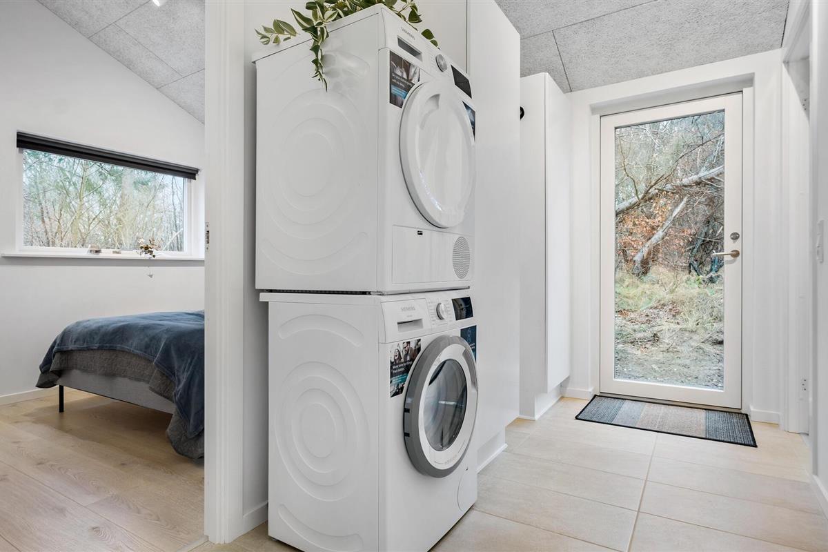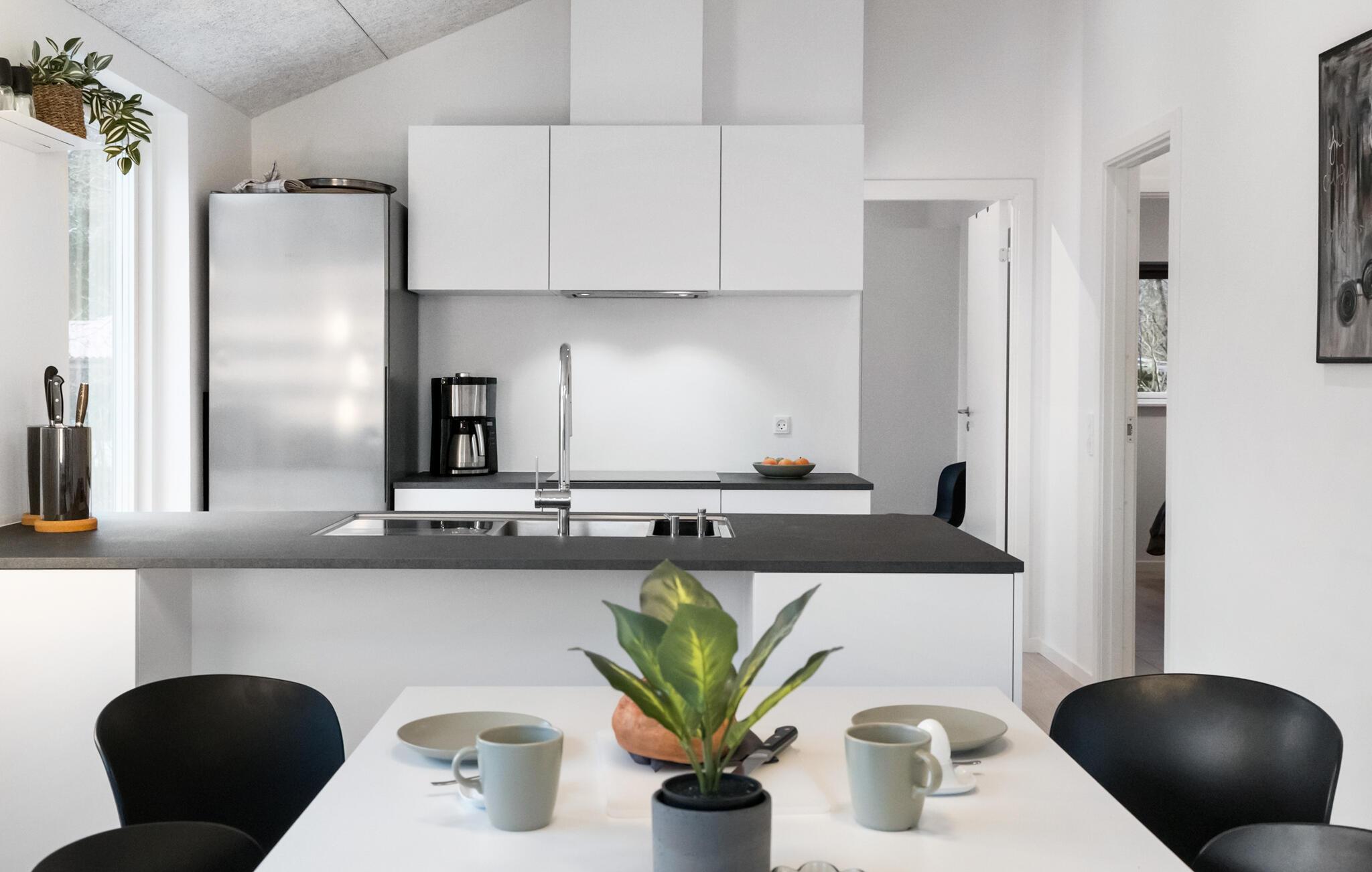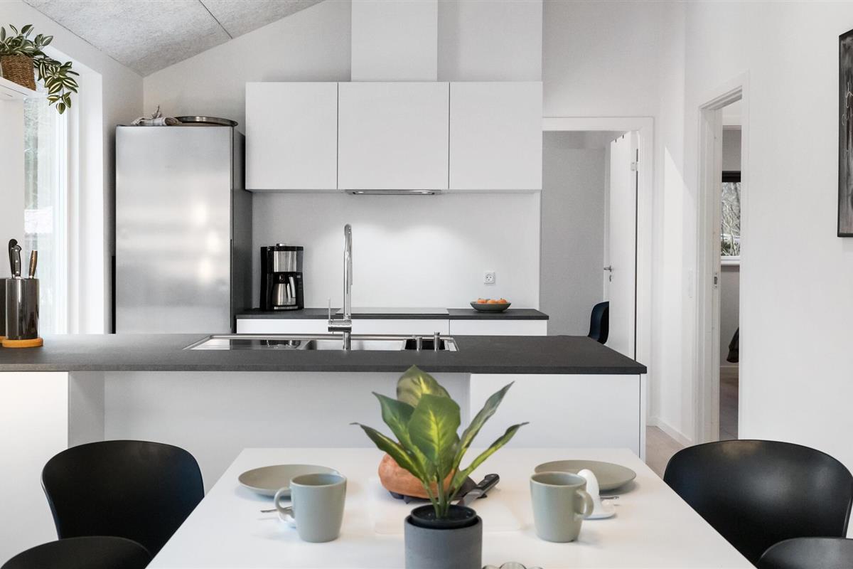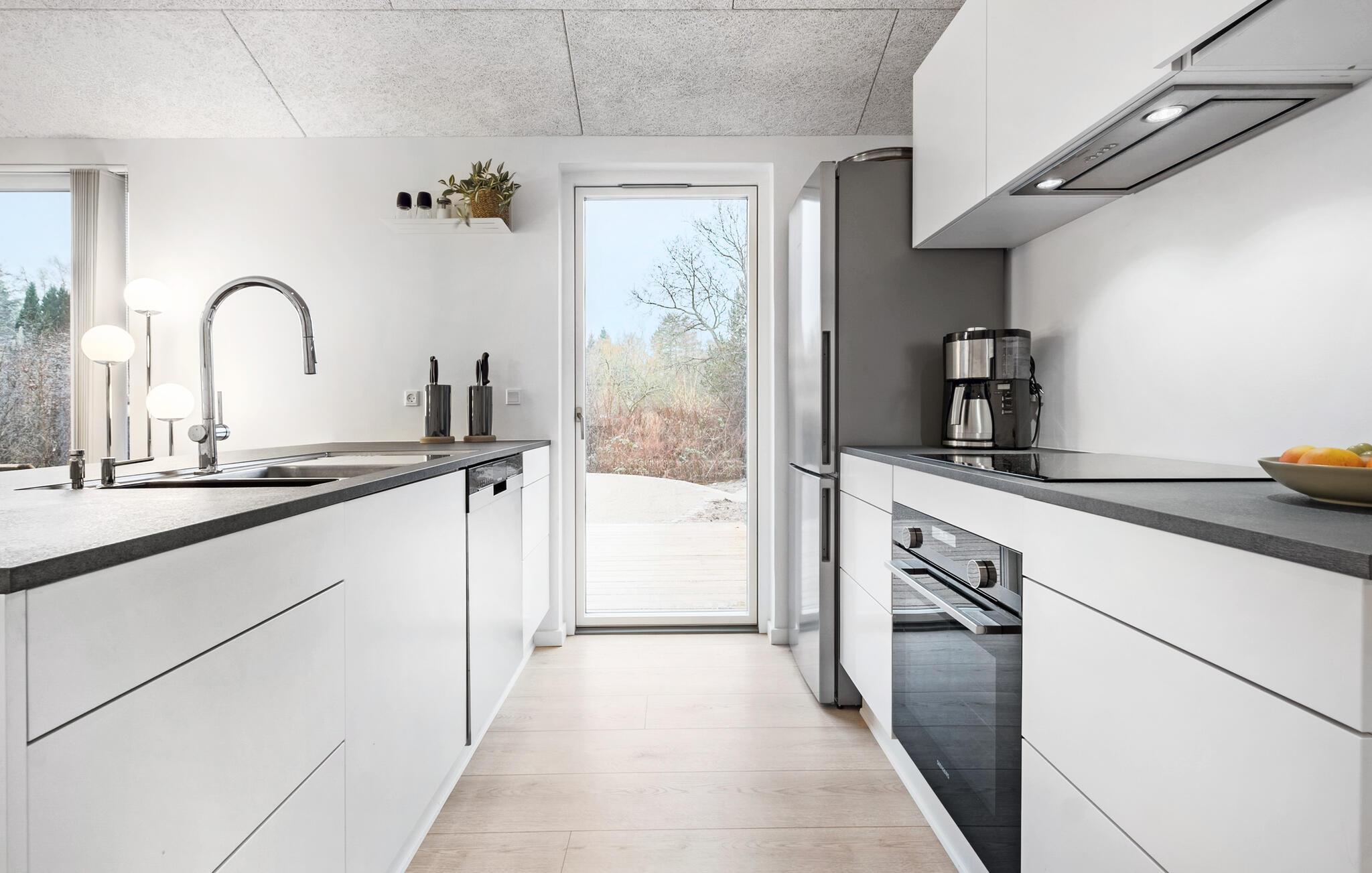 Dit stijlvolle vakantiehuis verwelkomt je niet ver van het strand van Klint. Het spel van lichte en donkere kleuren biedt je niet alleen een aantrekkelijke woonsfeer, maar ook de ideale ruimte om het leven binnenshuis te combineren met het leven in de tuin door de vele grote ramen. Geniet van de prachtige inrichting, knus 's avonds op de bank bij het warme vuur en kook voor je geliefden in de volledig uitgeruste keuken.