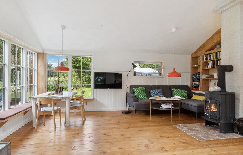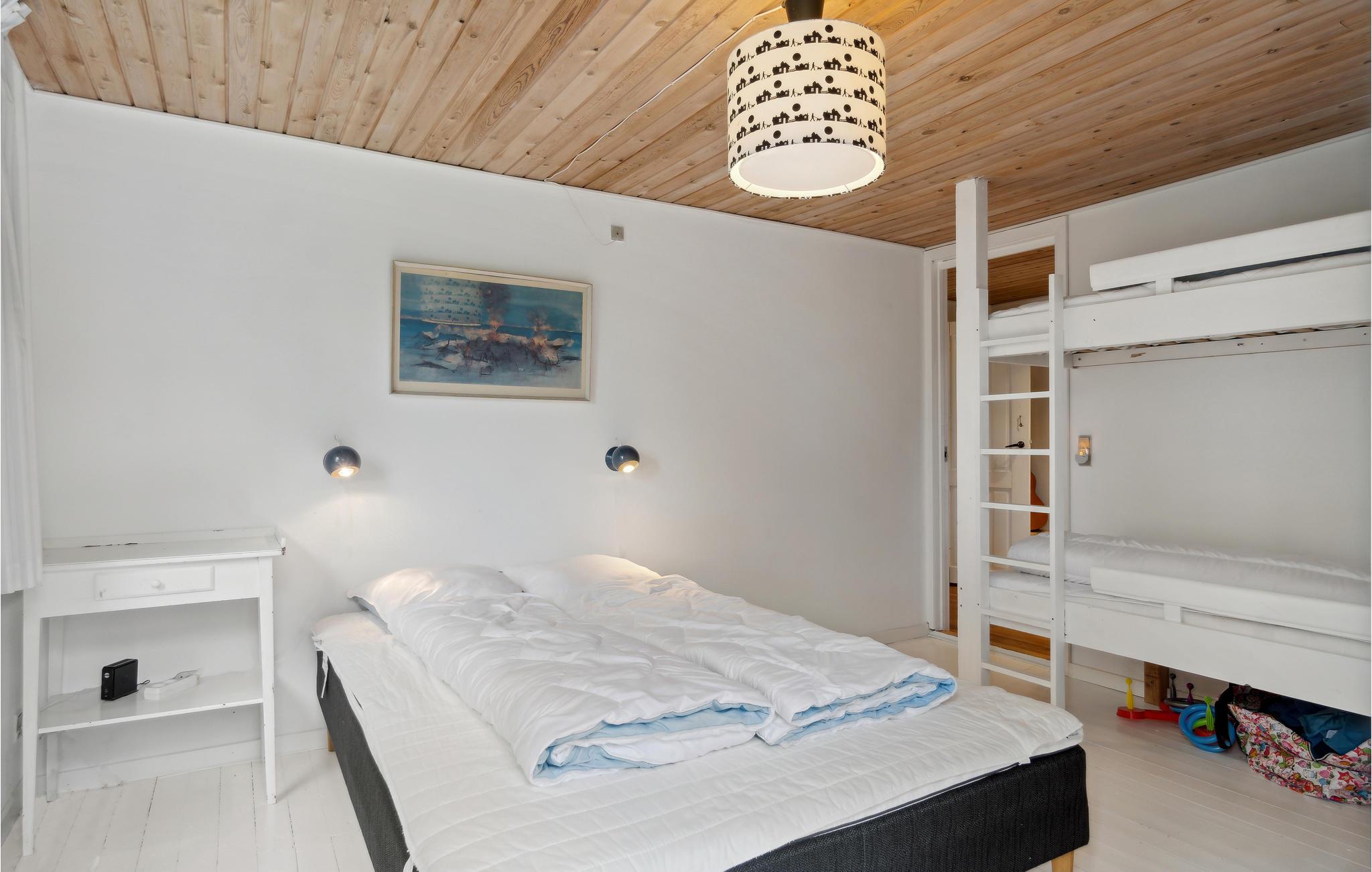 Het huis ligt op een beschut perceel met grote grasvelden waar de kinderen alle ruimte hebben om te spelen en actief te zijn. Het huis biedt alles wat je nodig hebt voor een ontspannen vakantie - een mooie keuken, gezellige woonkamers, een badkamer met douche en mooie slaapkamers. Een van de slaapkamers bevindt zich in het bijgebouw, dat niet verwarmd kan worden.