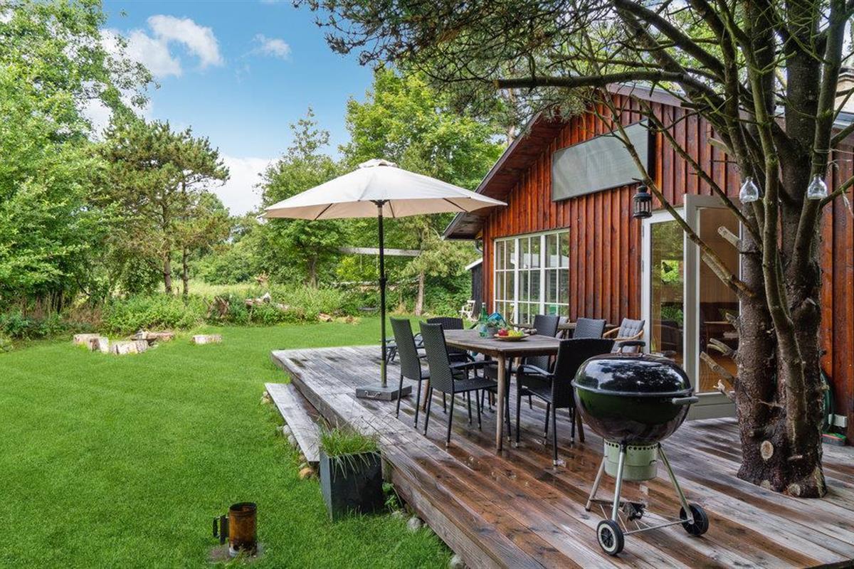 Geniet van zwoele zomeravonden en de Deense zomer in de tuin van het huis, die is uitgerust met verschillende sport- en speeltoestellen. Het houten terras nodigt uit tot barbecueën of lezen.